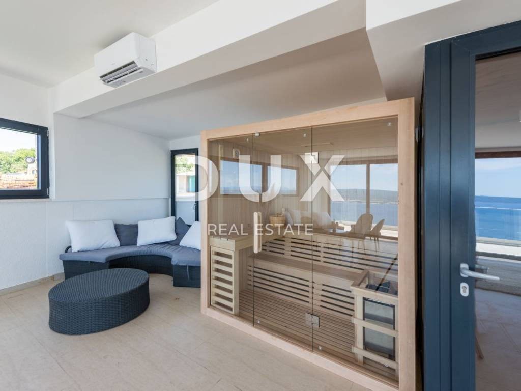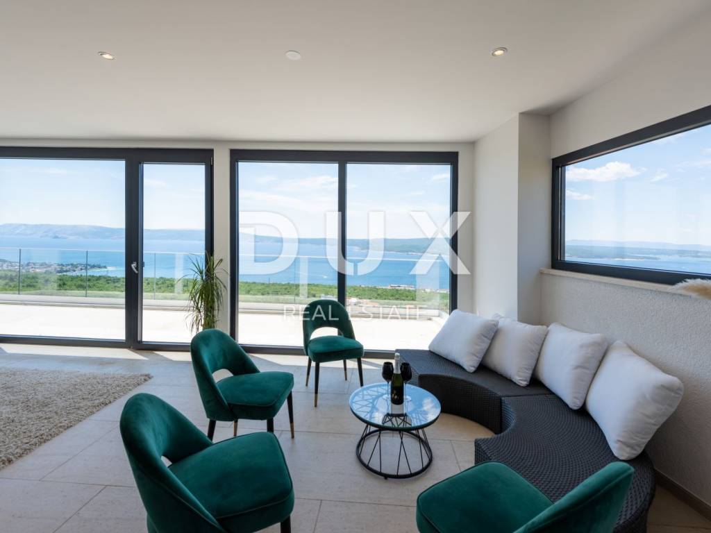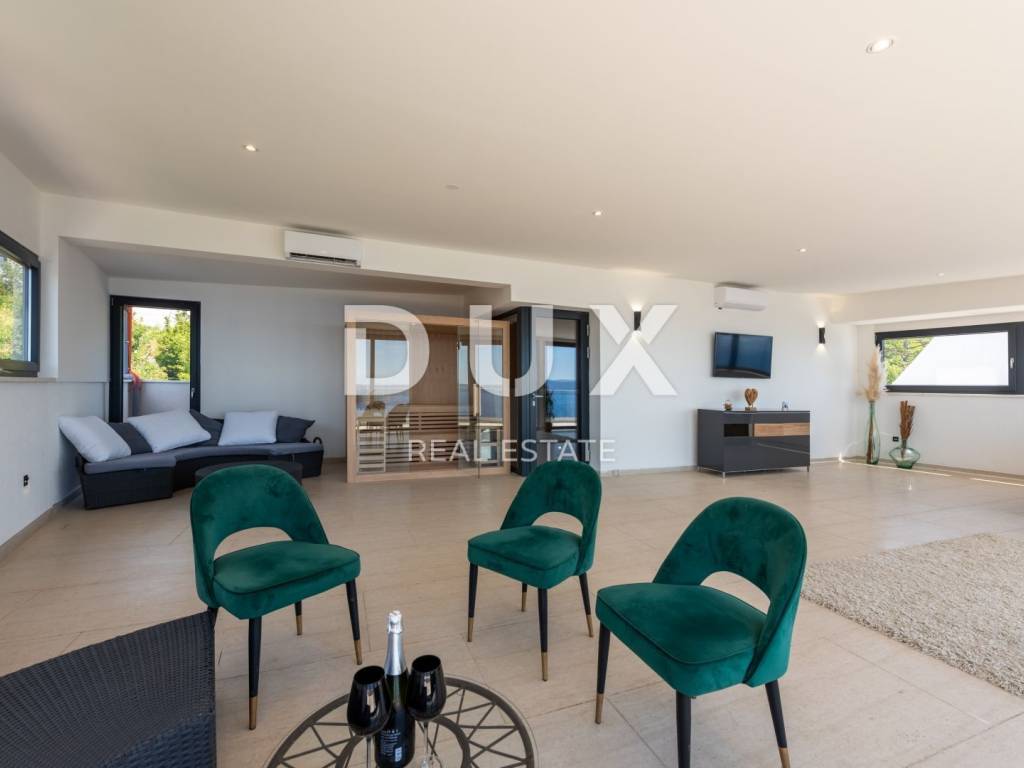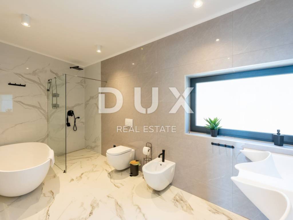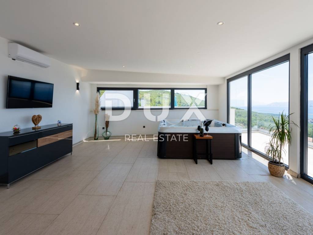 We offer a beautiful modern villa in a great location above the town of Crikvenica. The villa has a spectacular view of the sea and the island of Krk. It consists of an entrance area on the ground floor, which also houses the living room with dining room and kitchen, as well as a bedroom and bathroom. Upstairs there are three bedrooms, each with its own bathroom, and a roof terrace with a Balboa jacuzzi, a Finnish sauna and a sun deck. It is fully equipped and furnished with designer furniture and is being sold as such. Additional equipment includes air conditioning in every room, underfloor heating, heat pumps and a central vacuum cleaner. The villa is categorized with the highest energy class, and the garden includes 3 parking spaces and an infinity pool 9x5x1.5. The villa is equipped with a smart house system - control via mobile applications, underfloor heating on the ground floor and ceiling cooling. The preparation for solar panels has been carried out. Ajax alarm system, DVC visual surveillance system, smart Nuki lock with encrypted front door + keypad, you can use your smartphone instead of a classic key, pool mode control, Bluetooth irrigation control. MATERIALS are of top quality and from renowned manufacturers. The house is also equipped with a central vacuum system, Aertentica robot - self-cleaning. The carpentry is Schüco, the glass is of the highest energy class. Glazing: 2 x 6+4+6mm 6 SUNGARD 52 LIGHT+16+4+16+331 VSG Ug=0.6 W/(m2K) Heating by Klima Gree in all rooms. The infinity pool overflows on all 4 sides. The cladding of the building is stone wool 12 cm at the level of energy class A+. The interior is decorated so that the floors are tiled with top-quality Italian ceramics, except in the rooms where top-quality three-layer parquet is installed. The price shown is for a natural person. For legal buyers, the price for VAT is reduced.