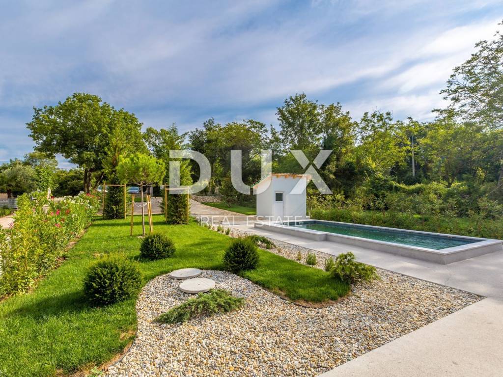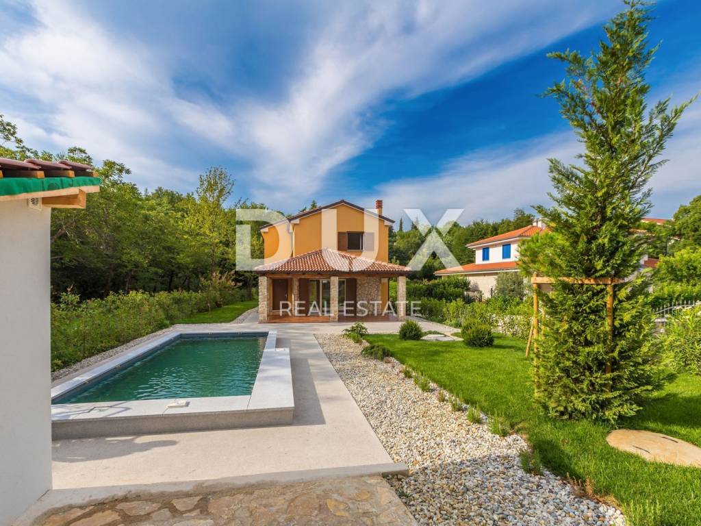 ISLAND OF KRK, surroundings of Dobrinje - House with a swimming pool and a beautifully landscaped garden. It is located in a quiet location surrounded by greenery and is located on a plot of 1100 m2. On the ground floor there is a living room, kitchen, one bedroom, bathroom and storage room. There are 4 rooms on the first floor. One bedroom with an exit to the balcony, a master bedroom with its own bathroom, a third bedroom, and a smaller room that can be used as a study or as a children's room. There is another additional bathroom on the first floor. The yard is full of greenery that gives a pleasant feeling when you are next to the pool. There is a garden house next to the pool. The property is included in the VAT system, so the buyer does not pay the 3% real estate sales tax. On the eastern side of the island of Krk is the municipality of Dobrinj with the center of the same name. Dobrinj is located on a hill about 200 meters high and is one of the medieval castles that were centers of literacy in the past. For centuries, Dobrinjština was an extremely agricultural region. Animal husbandry and olive growing, as well as the exploitation of forest resources, were also represented. The place is also known for its colorful folk costumes, folklore events, sopela school (Krk's wind instrument) and traditional local cuisine. In this island center, autochthonous stone houses and narrow stone streets that are reminiscent of the past prevail. Not far from Dobrinje is the Biserujka cave, which delights with its beauty and interesting precipitated forms. It is the only cave on the island, of which there are more than 50, designed to receive visitors. According to legend, the cave was named Biserujka (pearl) after the treasure found in it, which belonged to local pirates. Dear clients, the agency commission is charged in accordance with the General Business Conditions www.dux-nekretnine.hr/opci-uvjeti-poslovanja