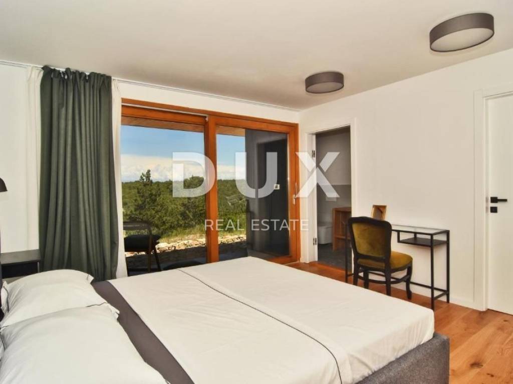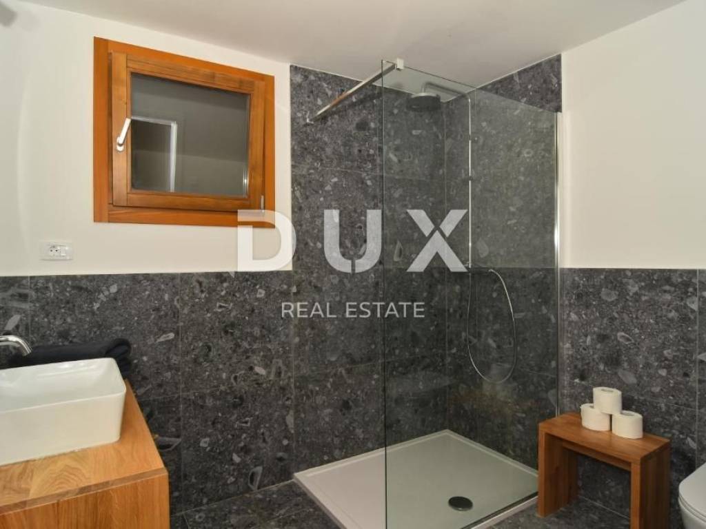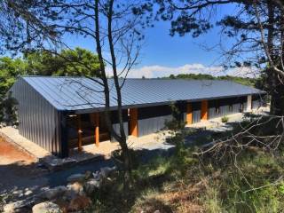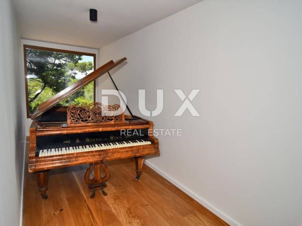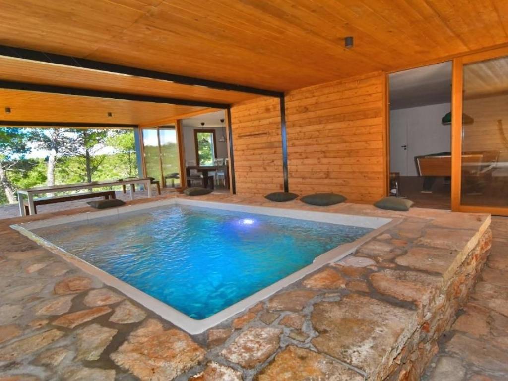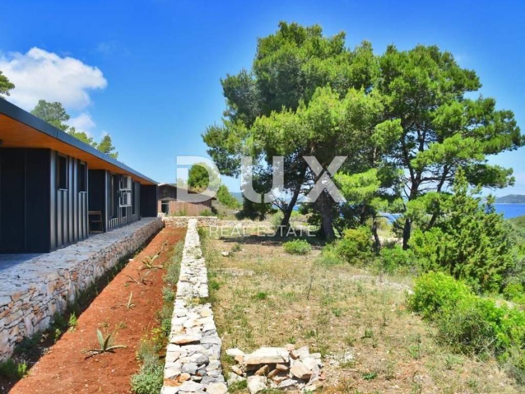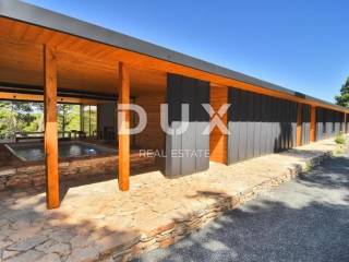 In a quiet location, surrounded by greenery, a modern one-story house of almost 400 m2 is for sale, just 100 meters from the sea. The spacious building plot from where the house is located extends to the port itself. In addition to the unique one-story house, there is also a smaller detached residential unit for sale, which functions completely separately from the house. The ground floor has a well-developed floor plan, the rooms are lit and have a view of the sea and greenery. It consists of an entrance area, kitchen with dining room and open-plan living room, bathroom, living room with billiards, cinema room, piano room, storage room and technical room. The second part of the house contains 4 bedrooms, 2 bathrooms and 2 wardrobes. The living room has access to a covered terrace where there is an outdoor dining area and an outdoor heated pool, with a fantastic view of the sea and a small island nearby. The terrace surrounding the house is paved (natural stone). The modern one-story house has a cistern of 200 m3, air conditioners and high-quality bio-purifiers. A unique house with a well-designed concept in a quiet location worthy of attention.