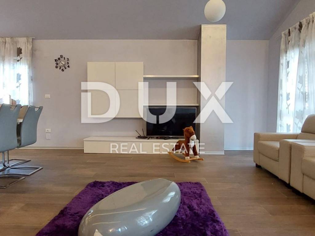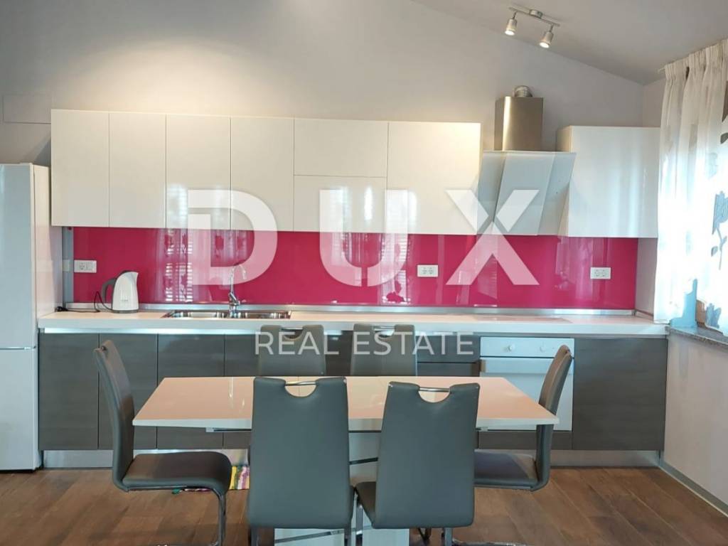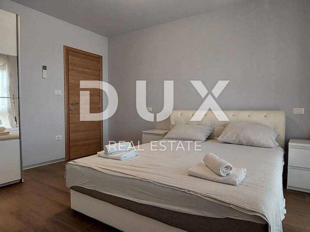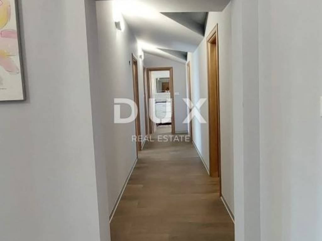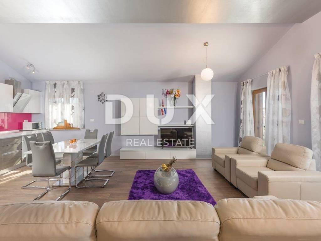 Luxury apartment in the vicinity of Medulin - the perfect choice for a comfortable life by the sea! We offer a beautiful apartment that has just arrived on the market. Located in the picturesque surroundings of Medulin, this newly built apartment offers you everything you've always dreamed of. This spacious apartment covers 112.96 m2 and is located on the second floor of a building that consists of a total of four residential units. Your new home has everything you need for a comfortable and modern life. The apartment consists of a spacious living room with kitchen and dining room, study or bedroom, two bedrooms with access to the terrace, two bathrooms, laundry room. The apartment is full of light thanks to the natural light that penetrates through the large windows. It is especially worth mentioning that the living room has access to a large covered terrace with a wonderful view of the sea, where you can enjoy the sunset in the summer evenings. The apartment also comes with one parking space (2.50) and a storage room in the basement (4.56), which will ensure practicality and make your everyday life easier. Additional information: - automatic environmental irrigation - fan coils for heating and cooling The location of this apartment is simply perfect. Only 200 meters from the sea, you will be able to enjoy the benefits of the beach and refresh yourself whenever you want. The surroundings of Medulin offer a variety of facilities, such as restaurants, cafes, shops and beautiful nature to explore. Don't miss this unique opportunity!