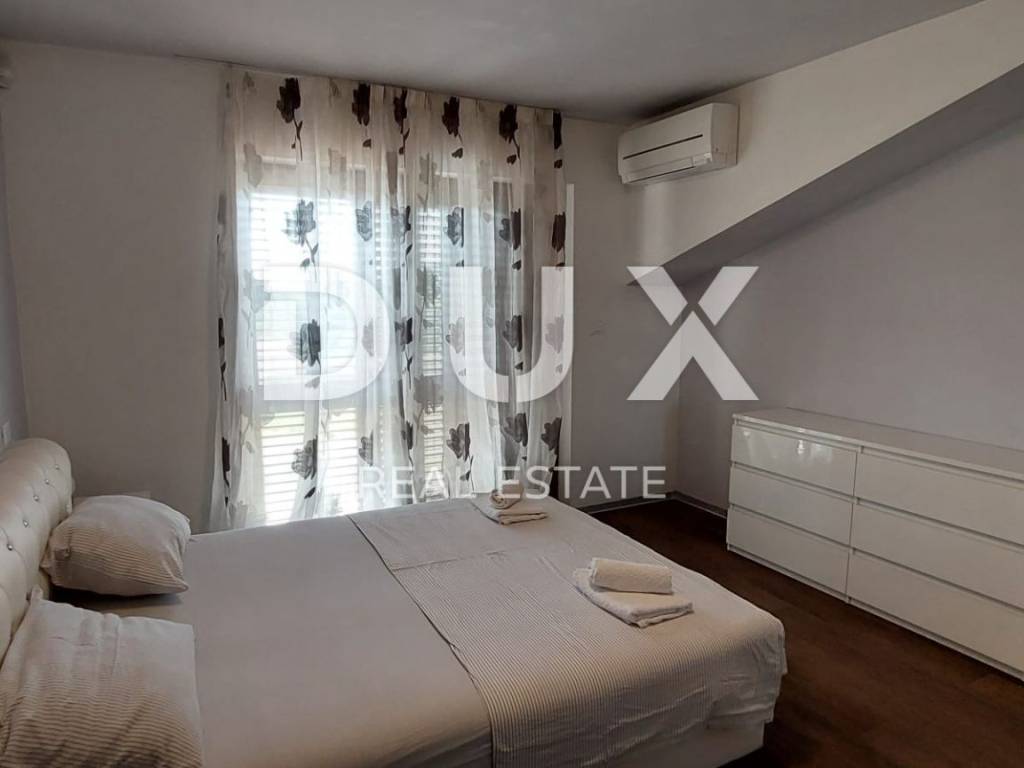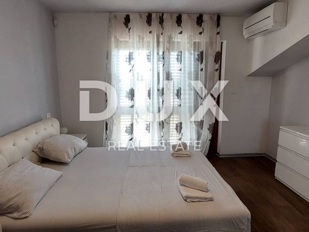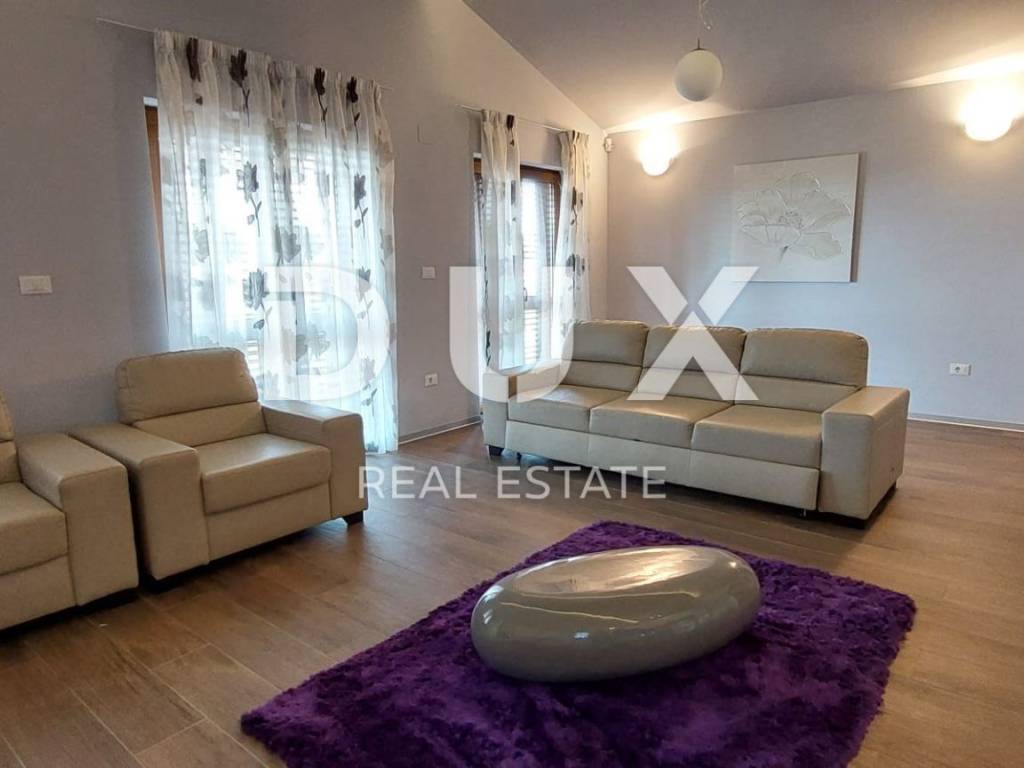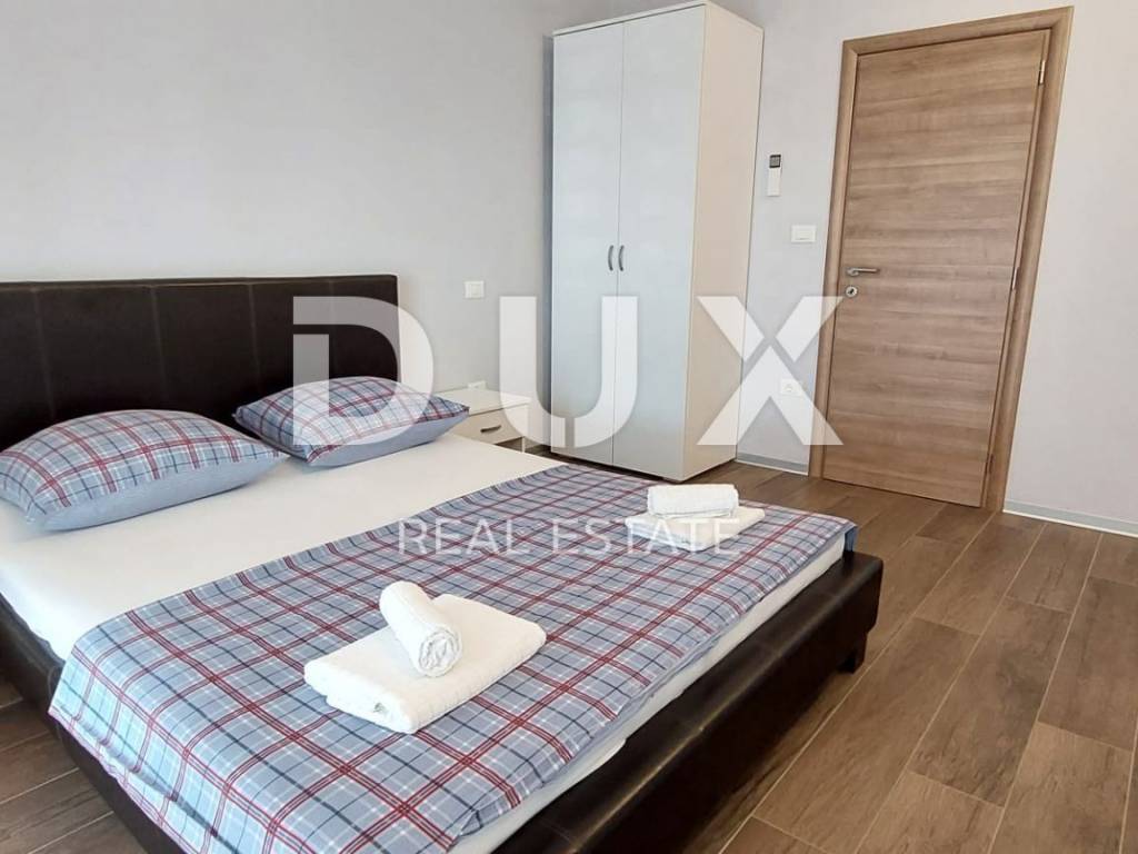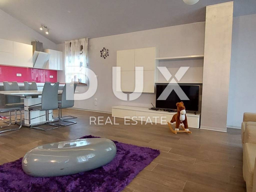Luxury apartment in the vicinity of Medulin - the perfect choice for a comfortable life by the sea! We offer a beautiful apartment that has just arrived on the market. Located in the picturesque surroundings of Medulin, this newly built apartment offers you everything you've always dreamed of. This spacious apartment covers 112.96 m2 and is located on the second floor of a building that consists of a total of four residential units. Your new home has everything you need for a comfortable and modern life. The apartment consists of a spacious living room with kitchen and dining room, study or bedroom, two bedrooms with access to the terrace, two bathrooms, laundry room. The apartment is full of light thanks to the natural light that penetrates through the large windows. It is especially worth mentioning that the living room has access to a large covered terrace with a wonderful view of the sea, where you can enjoy the sunset in the summer evenings. The apartment also comes with one parking space (2.50) and a storage room in the basement (4.56), which will ensure practicality and make your everyday life easier. Additional information: - automatic environmental irrigation - fan coils for heating and cooling The location of this apartment is simply perfect. Only 200 meters from the sea, you will be able to enjoy the benefits of the beach and refresh yourself whenever you want. The surroundings of Medulin offer a variety of facilities, such as restaurants, cafes, shops and beautiful nature to explore. Don't miss this unique opportunity!