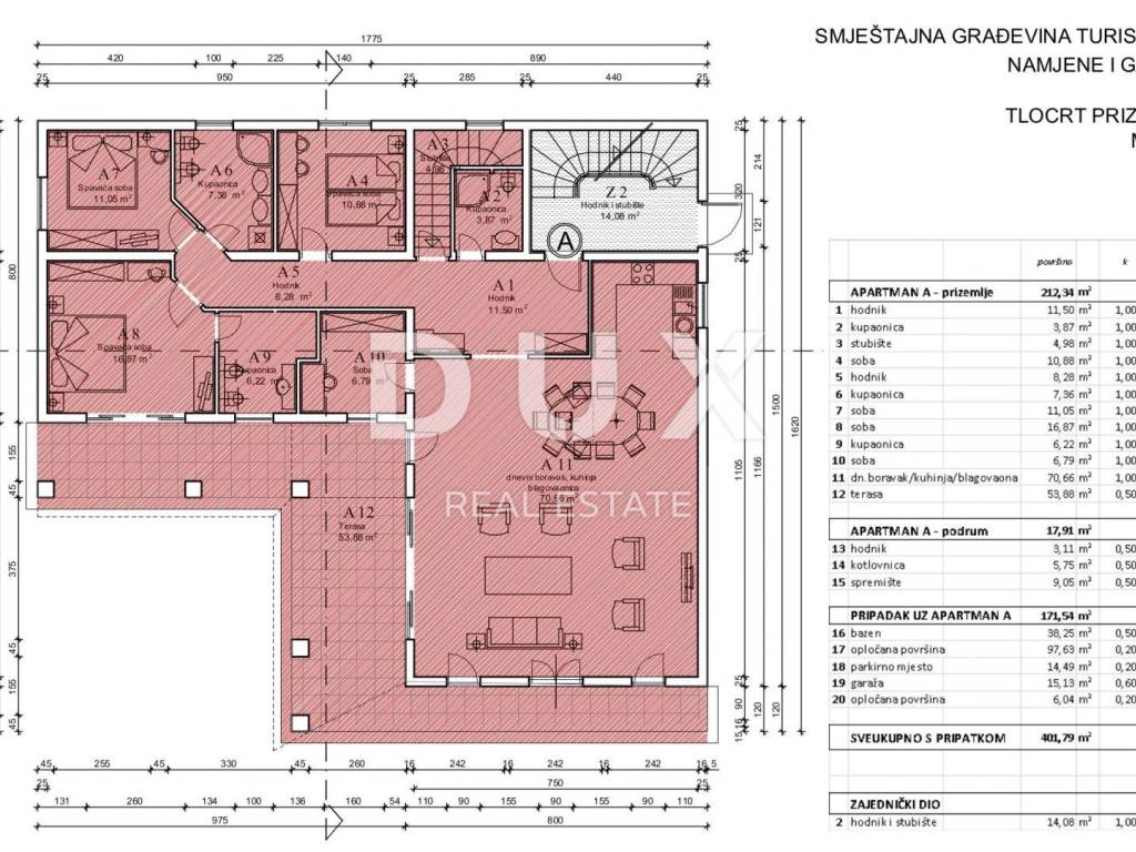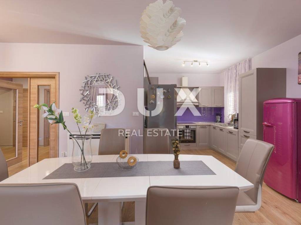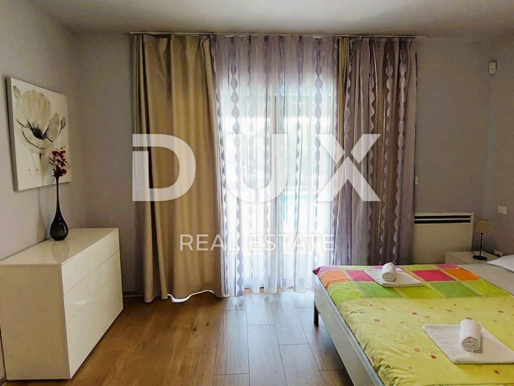 Luxury apartment in the vicinity of Medulin - the perfect choice for a comfortable life by the sea! We offer a beautiful apartment that has just arrived on the market. Located in the picturesque surroundings of Medulin, this newly built apartment offers you everything you've always dreamed of. This spacious apartment covers 246.19 m2 and is located on the ground floor of a building consisting of a total of four residential units. Your new home has everything you need for a comfortable and modern life. In addition, this apartment has its own pool and garden. The apartment of 185.40 m2 consists of a spacious living room with kitchen and dining room, a study, three bedrooms, one of which has its own bathroom, and 2 additional bathrooms and a storage room. The apartment is full of light thanks to the natural light that penetrates through the large windows. It is especially worth mentioning that the living room has an exit to the terrace that leads to the sun deck and pool, providing you with additional space for relaxation and outdoor recreation. The apartment comes with one parking space (2.90 m2), a garage (9.08 m2) and a storage room in the basement (4.53 m2), which will provide you with practicality and make your everyday life easier. Additional information: - own pool (5x8) - own boiler room in the basement - automatic environmental irrigation - heat pump floor heating - fan coils for heating and cooling The location of this apartment is simply perfect. Only 200 meters from the sea, you will be able to enjoy the benefits of the beach and refresh yourself whenever you want. The surroundings of Medulin offer a variety of facilities, such as restaurants, cafes, shops and beautiful nature to explore. Don't miss this unique opportunity!