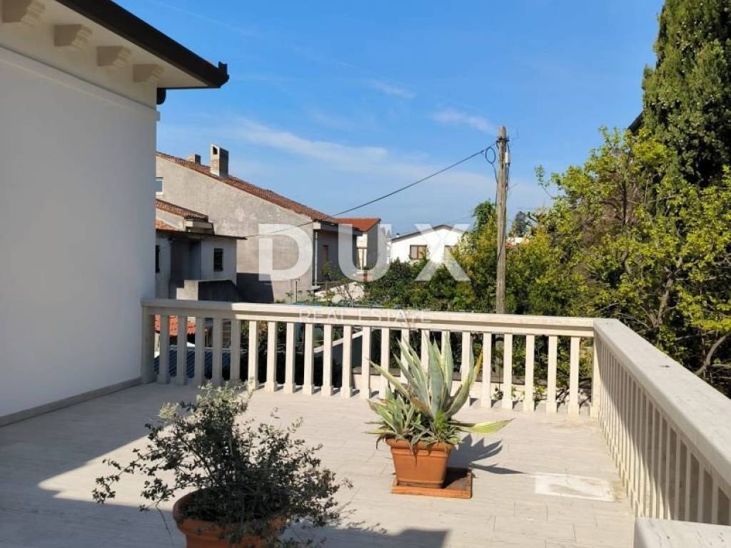A detached luxury villa by the sea with a view of the sea from all levels is for sale. The villa extends over two floors and in nature it is two spacious and high-quality apartments. The living area is about 380 m2, and it is located on a beautiful plot of 1191 m2. The yard is meticulously landscaped and well-kept and opens up the possibility of building a swimming pool, and in addition to the beautiful garden, it also offers a covered area with a brick fireplace next to the pond for maximum hedonism with family and friends. Already from the ground floor there is a panoramic view of the sea and the city, and on the ground floor there is a spacious and well-equipped apartment with an open space living room, kitchen, dining room, hallway, two bedrooms, one of which has its own bathroom. The living room leads to a covered terrace with a view of the beautiful garden and the sea. On the first floor there is a larger spacious apartment with spacious rooms consisting of a hallway, toilet, kitchen, a large open space living room from which you can see the sea in the palm of your hand, and from the living room you can access a beautiful terrace. In the second part of the apartment there are two bedrooms (one with a sea view), a study, and a bathroom. In addition to the above, the villa has a wine cellar as well as a large boiler room with a fully equipped system for gas underfloor heating, gas central heating, a water depurator, and there are also air conditioning units. A video and alarm system has been installed. The villa provides a covered area for two tin pets as well as additional parking space. Access to the villa is possible from two sides. It is a very high-quality and well-preserved property in a rare and highly sought-after location! The seller is a legal entity and the price includes VAT.