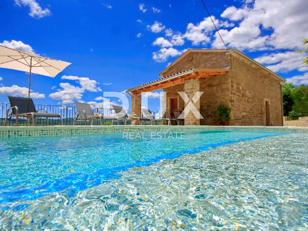 A stone house with a swimming pool and a beautiful view of Motovun is for sale near Oprtlje.
