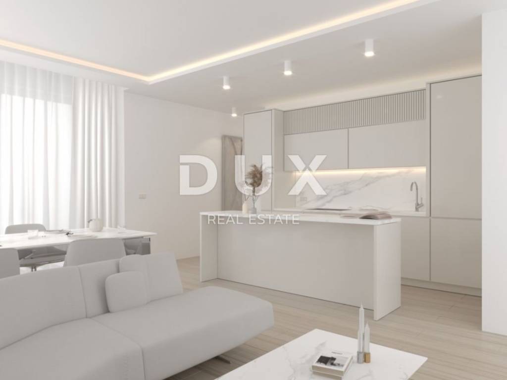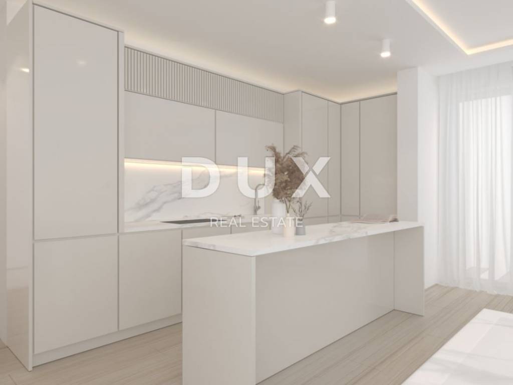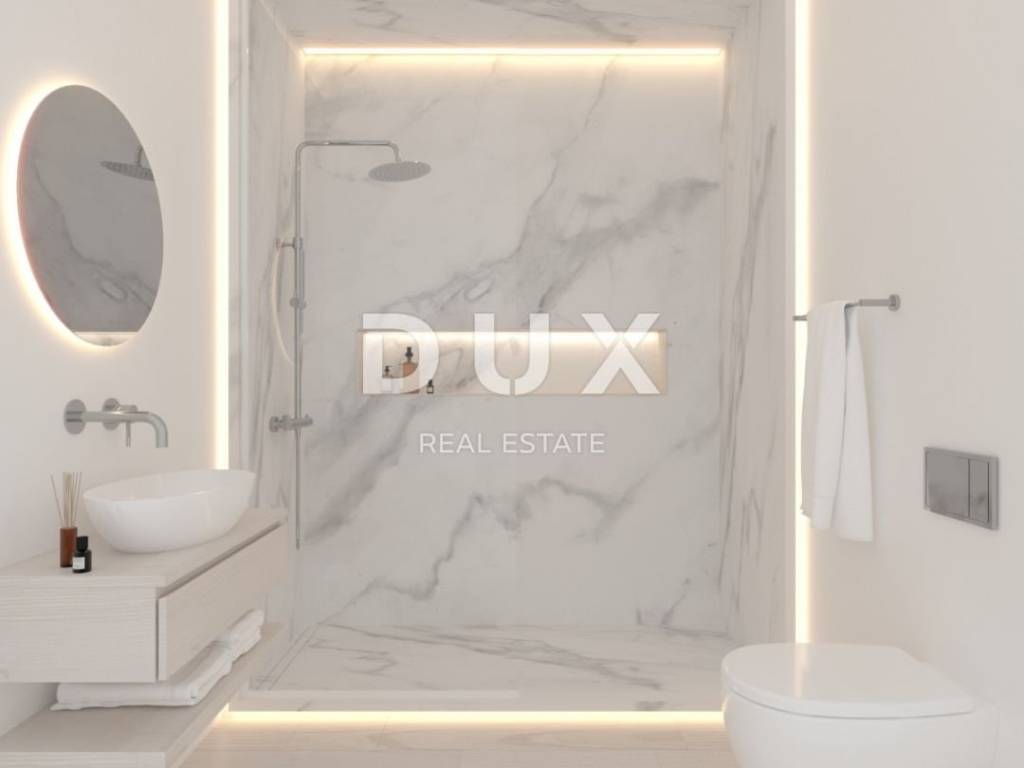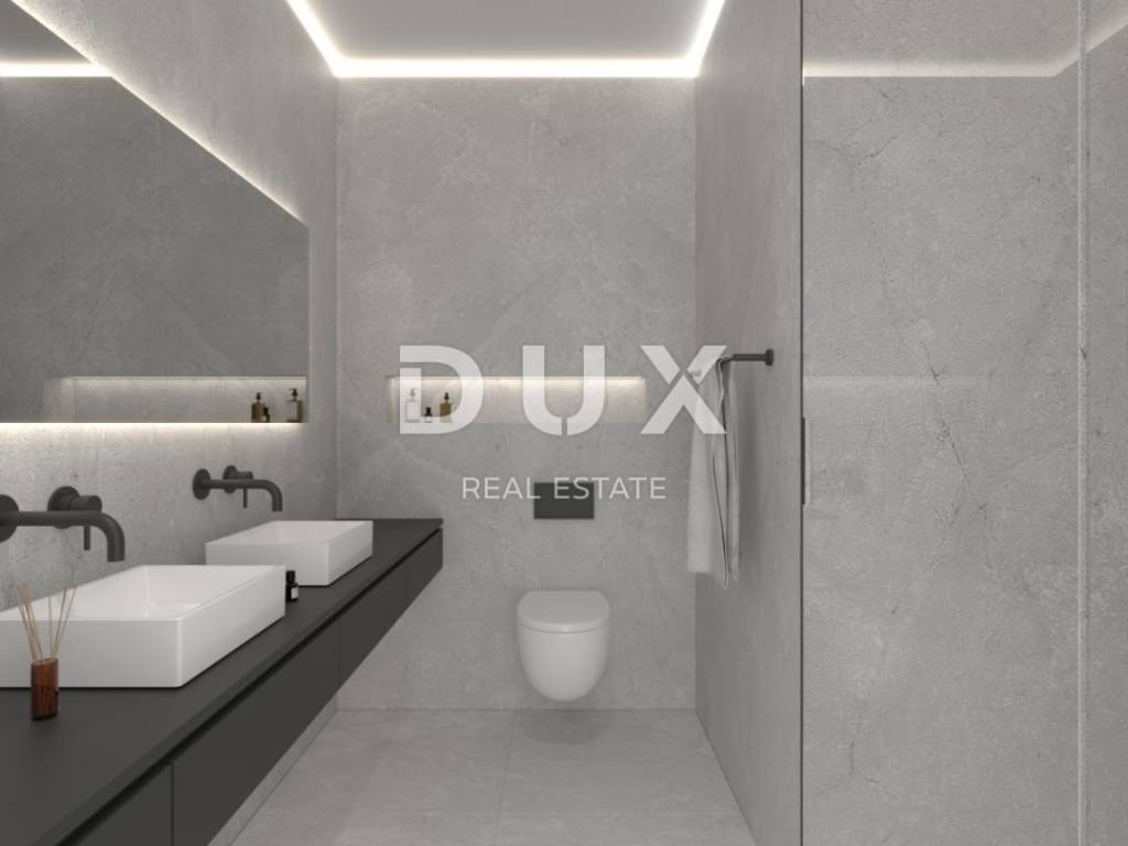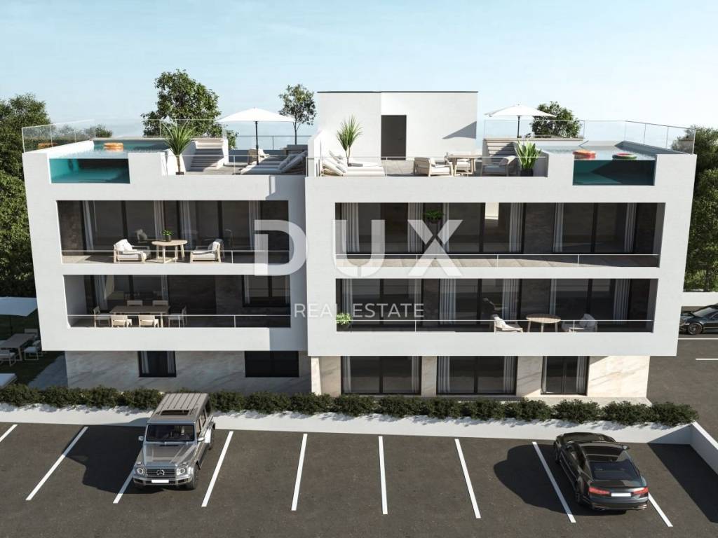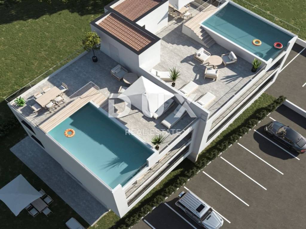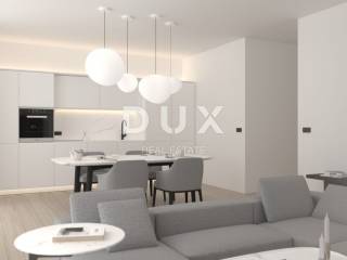 In Bibinje, close to the beach, we are selling a beautiful two-story apartment. It is located on the second floor of a newly built building. It consists of an entrance hall, two bathrooms, two bedrooms and a living room. The living space includes a kitchen, a dining area, a living room and a loggia with a wonderful view of the sea and the town. The internal stairs lead to the second floor, where there is a toilet, and a large terrace with a sunbathing area and a swimming pool. The apartment has a woodshed and a parking space. The property is equipped with high-quality materials and equipment, and is for sale as such.