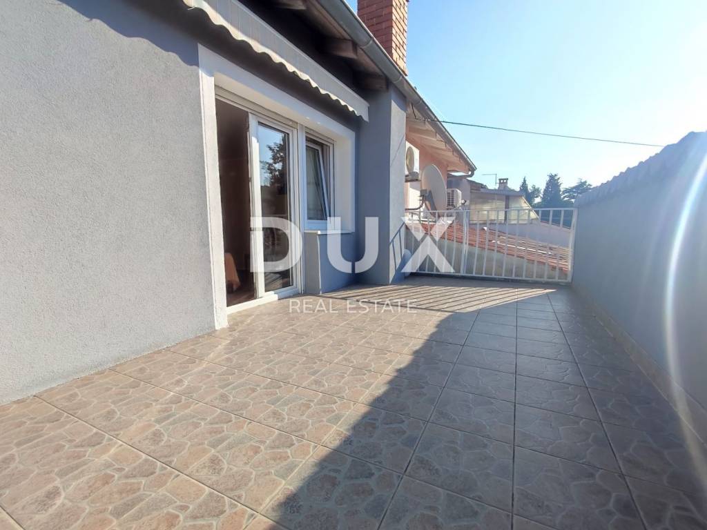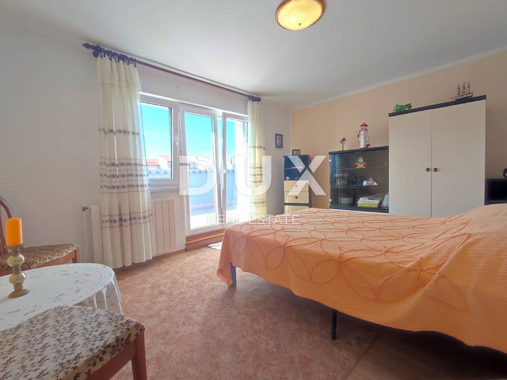 The internal stairs lead to the upper floor, where there is a bathroom with a toilet, a smaller bedroom with a view of the city, and a larger bedroom with access to a large terrace, also facing the west side.