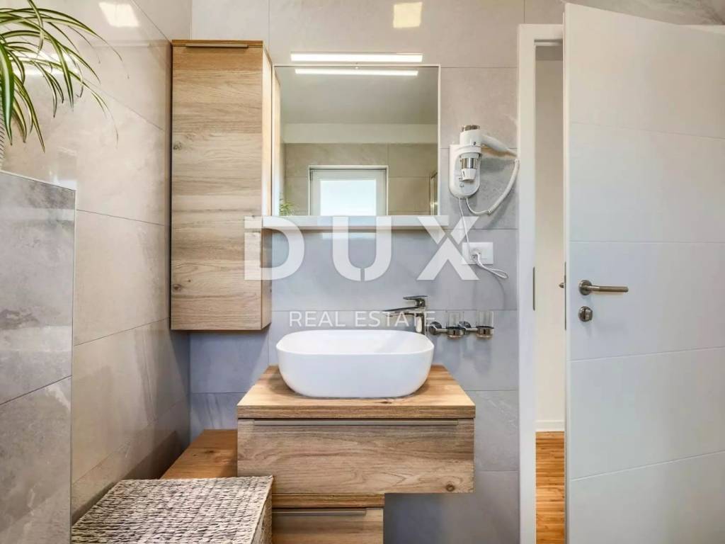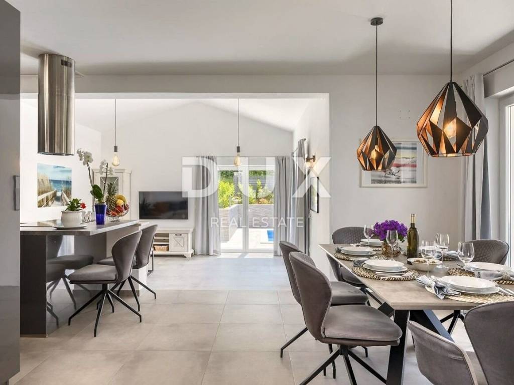 Poreč is a city located in the heart of the western coast of Istria. A city of culture, tourism, sports and entertainment, awarded multiple times for its orderliness and cleanliness. A city that uniquely combines a rich cultural and historical heritage and the most modern amenities of a top tourist destination. Not far from the town of Poreč, there is a villa for sale in a desirable location. The villa of timeless architecture, partly made of stone with rustic blue shutters, is located far enough from the crowds and noise, but still close to all the facilities needed for a year-round stay. Harmoniously planned rooms, a modern interior and an equally attractive and coordinated exterior show how every detail was thought of when decorating this villa. The villa is designed as one residential unit that extends over two floors. On the ground floor, there is an open-concept living area that opens onto a covered terrace with a summer kitchen and dining room. In the rest of the ground floor there is a bedroom with its own bathroom, a storage room and a toilet. An internal staircase leads to the first floor where there are two bedrooms, each with its own bathroom and access to the terrace. It is equipped with air conditioning, underfloor heating and a solar water heating system. The villa's grounds are completely fenced, horticulturally landscaped and equipped with automatic irrigation. The yard is dominated by a 32 m swimming pool with a sun deck. The property is fully equipped and furnished and is being sold as such. The location, structure and comfort make this property ideal for a peaceful family life, but also a successful tourist rental.