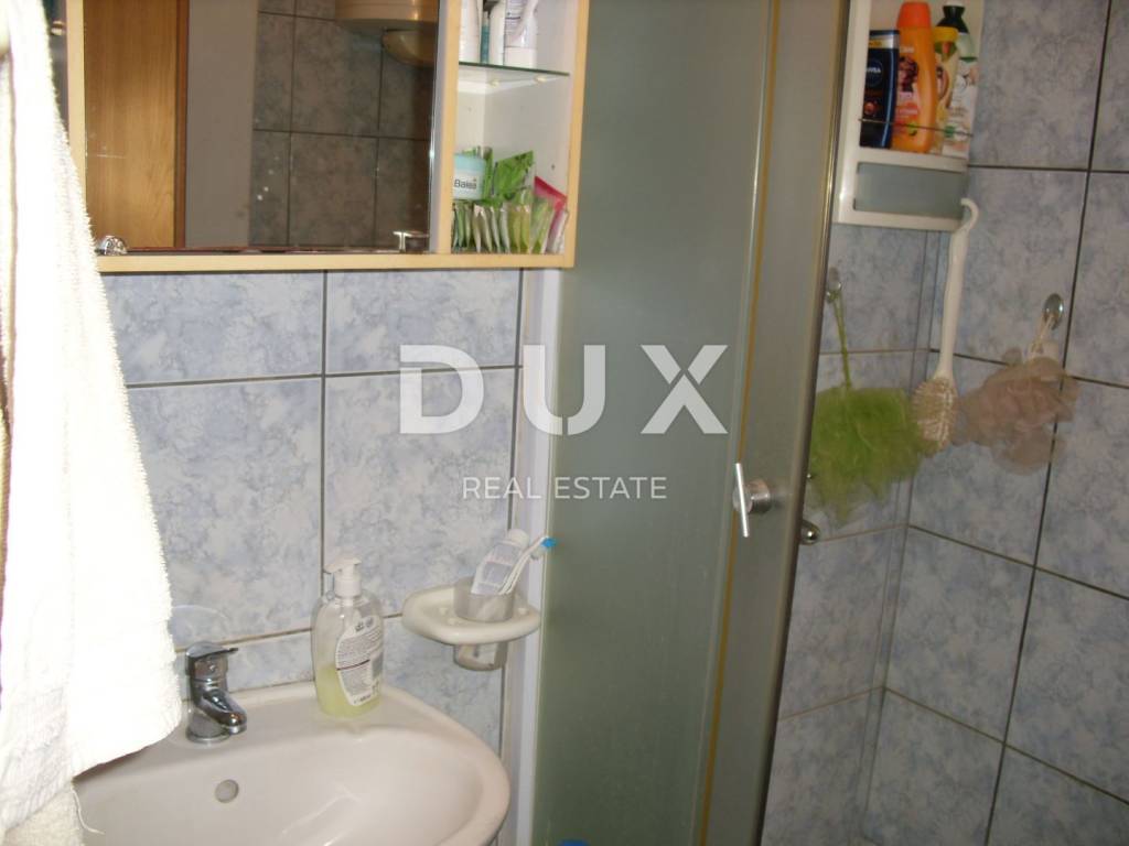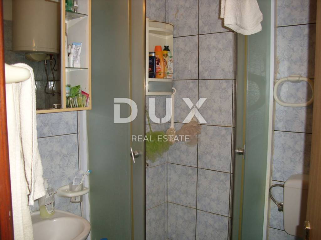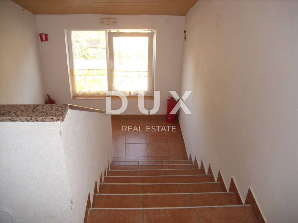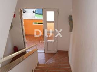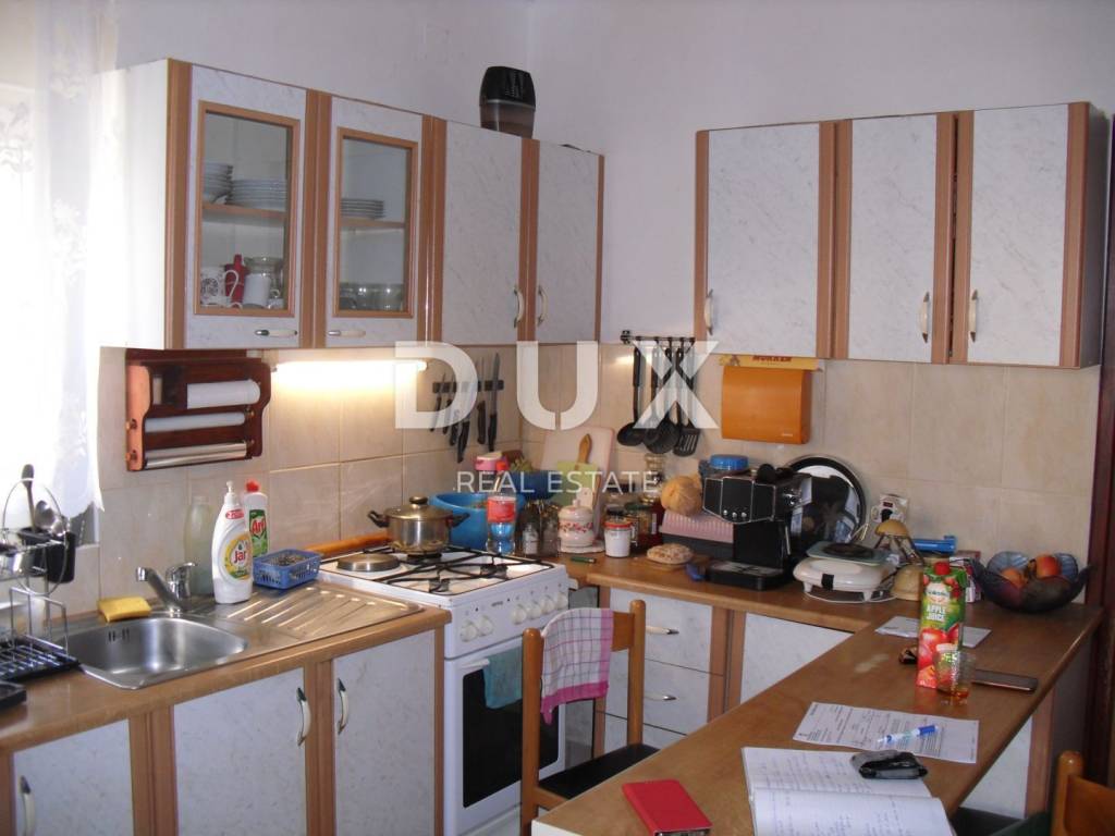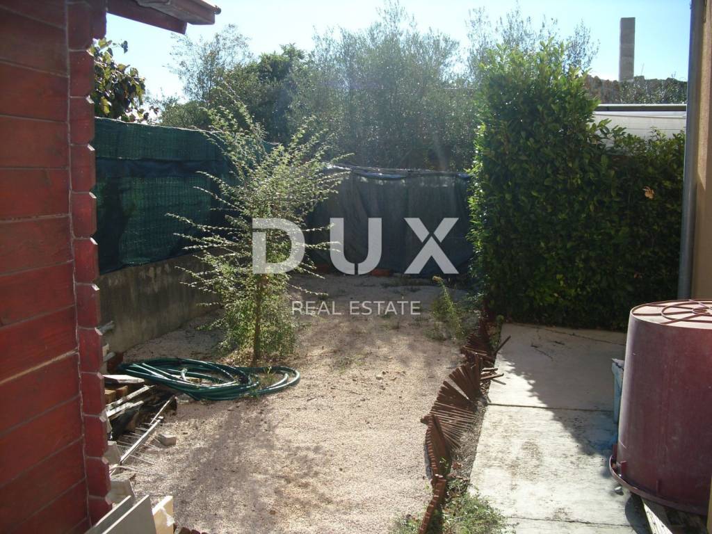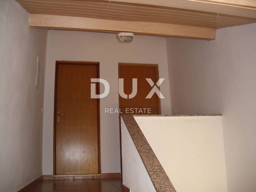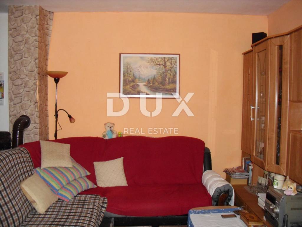 In a small village in the vicinity of Malinska, approx. 1600 m from the sea, two apartments are for sale on the first floor and in the attic with a garden of 30 m2 and a parking space of 19 m2. The apartment on the first floor consists of a bathroom, one bedroom and a kitchen with a dining room and a living room from which there is access to a terrace of 7.80 m2. This apartment is equipped with an intercom, telephone connection with Internet and satellite receiver, air conditioning, and there is also the possibility of wood/pellet heating. The apartment has PVC joinery with blinds and is furnished and ready to move in. The apartment in the attic is a roh-bau with electricity and water installations (supply/drainage) and one skylight. Project documentation allows installation of three additional skylights and one standard one. The usable area is 44.60 m2, although the area with the addition of small heights is approx. 70-80 m2.