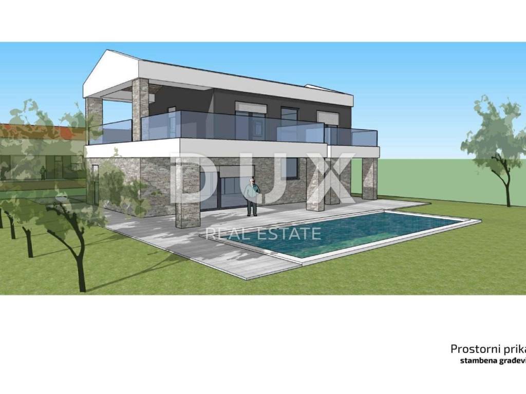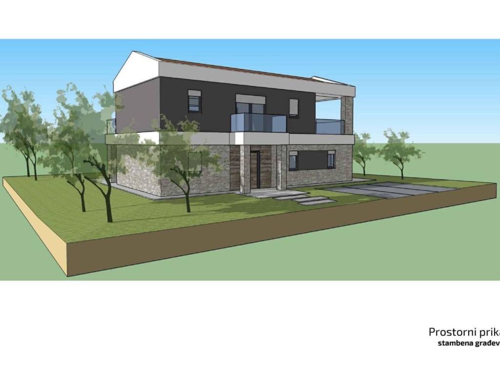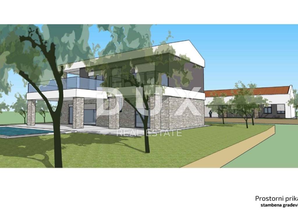 Na terenu se mogu graditi 4 vile po 200m2 s bazenima 50m2 i 4 gospodarska objekta ukupne površine 1700m2.