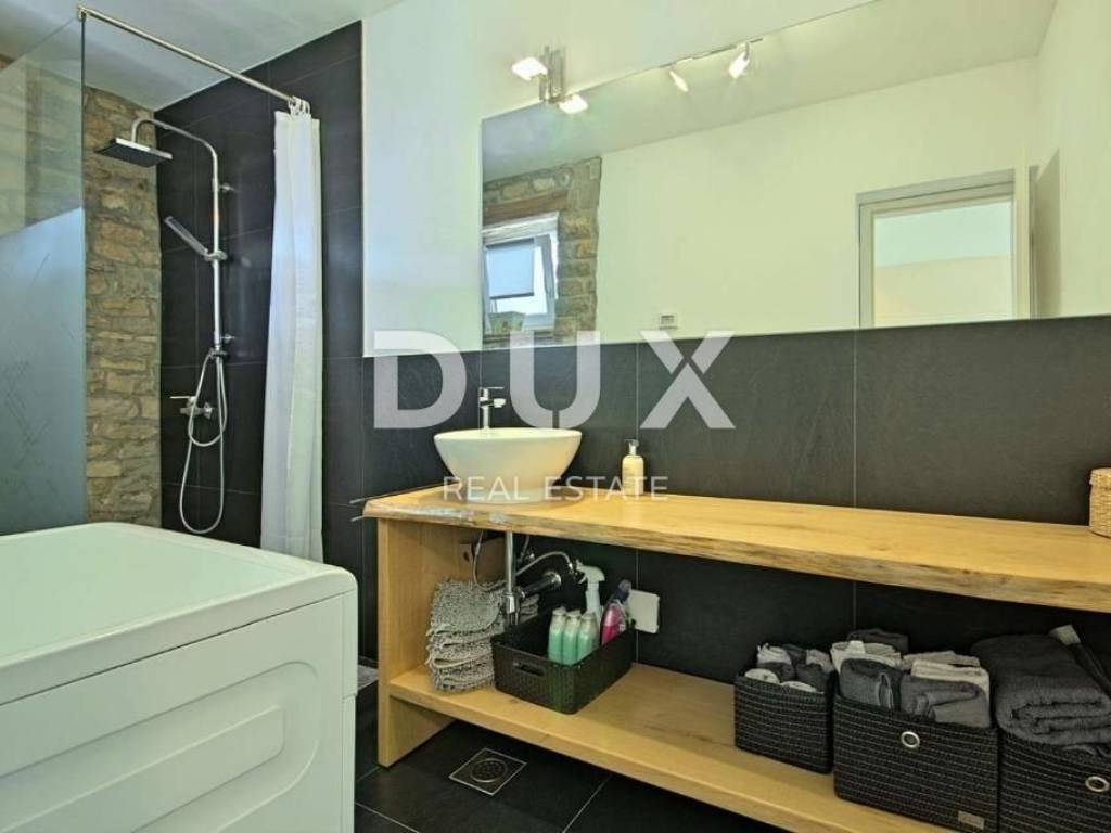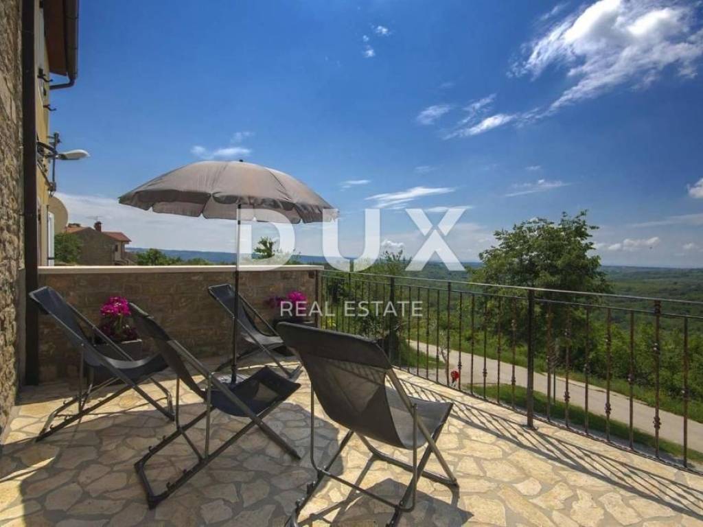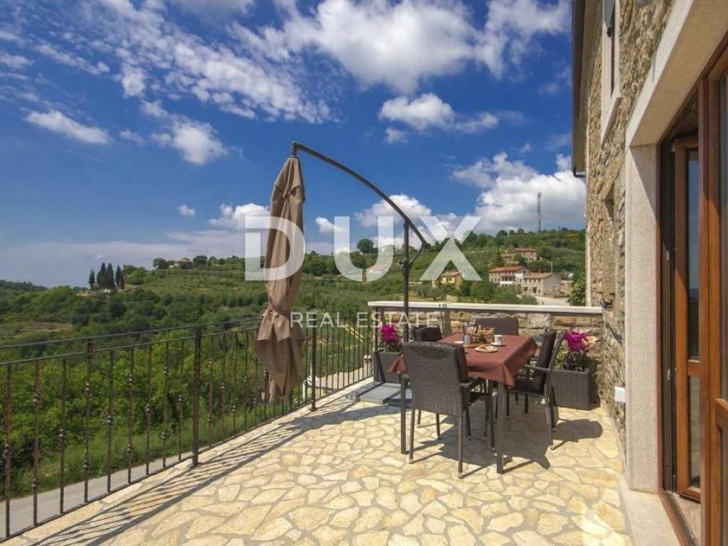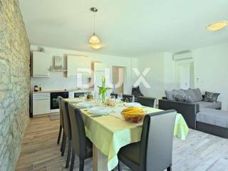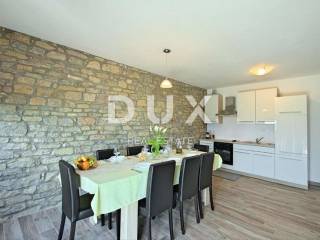 This stone house with a total area of x m2 is located in the immediate vicinity of Buje. The house is spread over 3 floors. The ground floor is in the rough stage. The first floor consists of a living room with a kitchen and dining room, two bedrooms, a bathroom and a storage room. The living room opens onto a spacious terrace with a view of the sea and Bujština. The attic is also in the roh bau stage. Heating and cooling is via air conditioning. This house represents an excellent opportunity for family life or as a financial investment for rental.