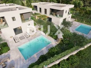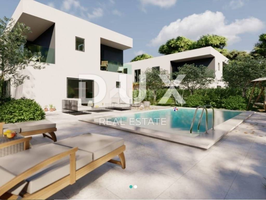 In Poreč, in the residential part, a semi-detached villa of modern design is for sale! Locally, this property offers proximity to beaches only 1 km within luxury resorts with 5-star hotels, shops, restaurants, and the center of Porec is only a few minutes easy drive. The villa offers 129 m2 of living space and spreads over two floors. The ground floor has a hallway, bathroom, open space living room with large glass walls overlooking the pool, kitchen and utility room. Stairs lead to the first floor where there are 3 bedrooms with terraces and two bathrooms. The 8x4 pool is planned in the back of the house which offers privacy and has communication with the living room via a glass wall. * Associated two parking spaces * Planned underfloor heating and air conditioning * Planned connection to the city sewer * Planned completion 5 months in 2023. * It is possible to see what the real estate will look like considering that a semi-detached house has already been built.