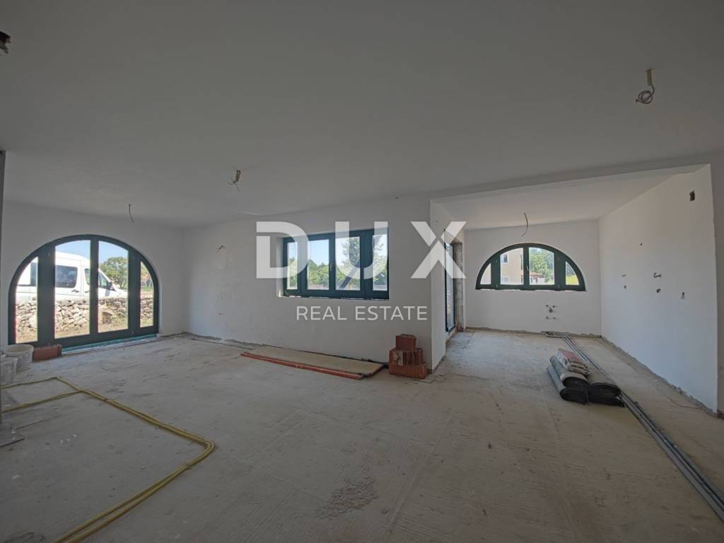 ISLAND OF KRK - Rustic house in the interior of the island with pool. This beautiful villa is located in a small and quiet place. The building has about 135 m2. The ground floor has a kitchen with dining area, bathroom, storage room, large living room with access to the terrace and a beautifully landscaped environment with pool. Upstairs are two bathrooms, one of which belongs to one bedroom, upstairs are two more bedrooms and two large terraces. The building is fitted with quality materials and has underfloor heating. The planned completion of construction is the middle of 2022. The finished building in the pictures is an adjacent building and pictures have been posted to see what this villa will look like upon completion of construction. Completion is scheduled for summer 2022.