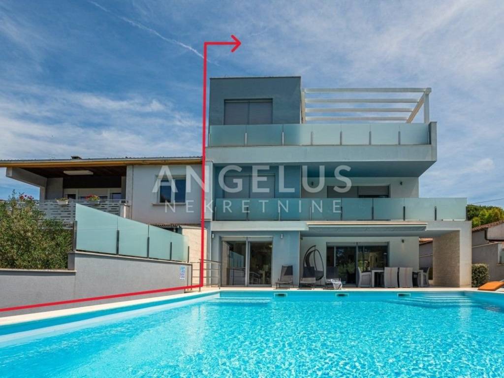 In one of the most desirable neighborhoods of Pula, just 200 meters from the nearest beach, a modern villa with a swimming pool and four bedrooms is offered for long-term rental. The location offers an exceptional combination of peaceful surroundings and access to all amenities: a shopping center, restaurants and bars by the sea are just a few minutes' walk away, while kilometers of promenades and untouched park-forests allow for relaxation with jogging or long walks in the open air.
