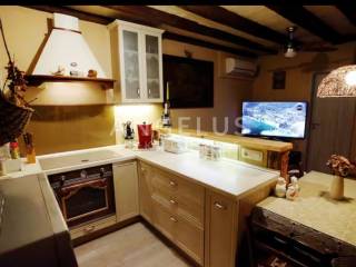 On the ground floor there is a dining room with a kitchen and a bathroom. On the first floor there is a spacious living room, while on the second floor there are three bedrooms and a bathroom with a jacuzzi. The floors are interconnected by internal wooden stairs.
