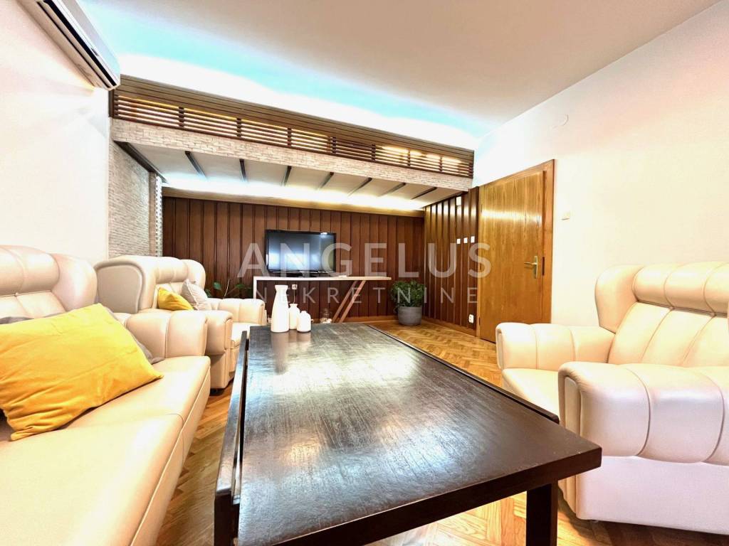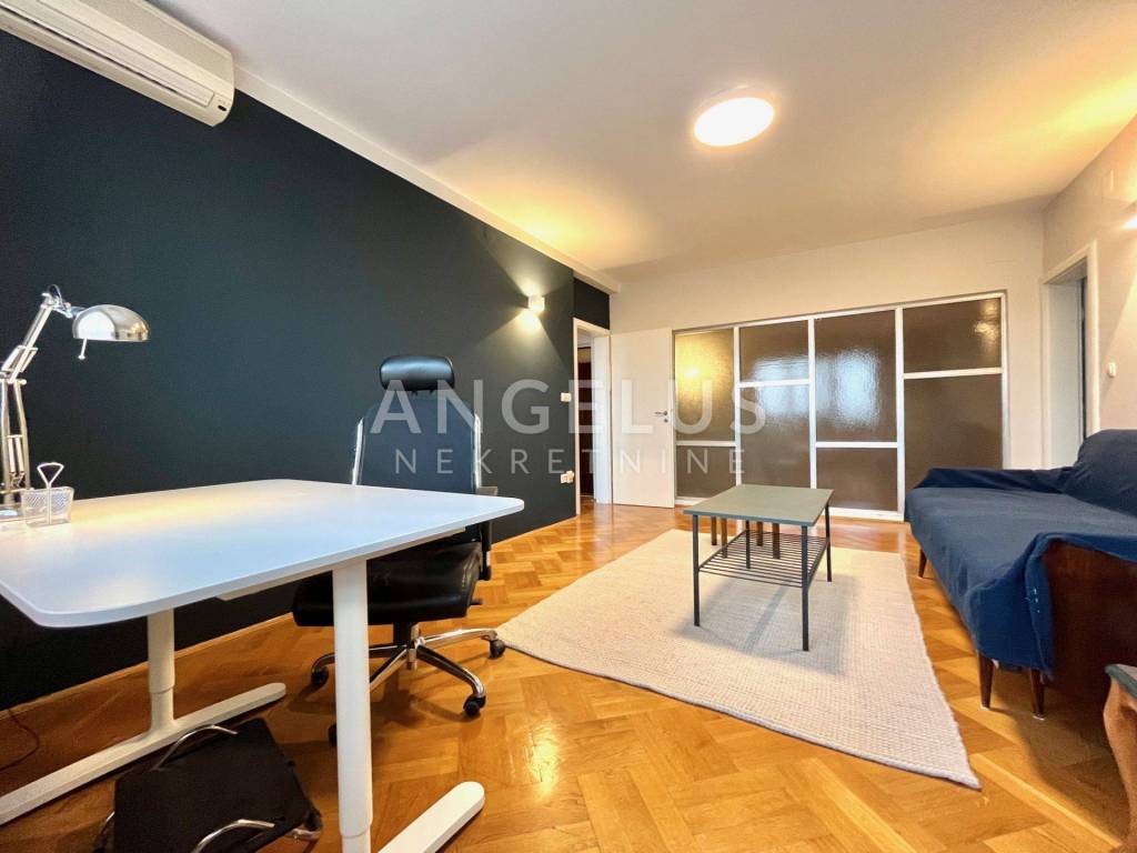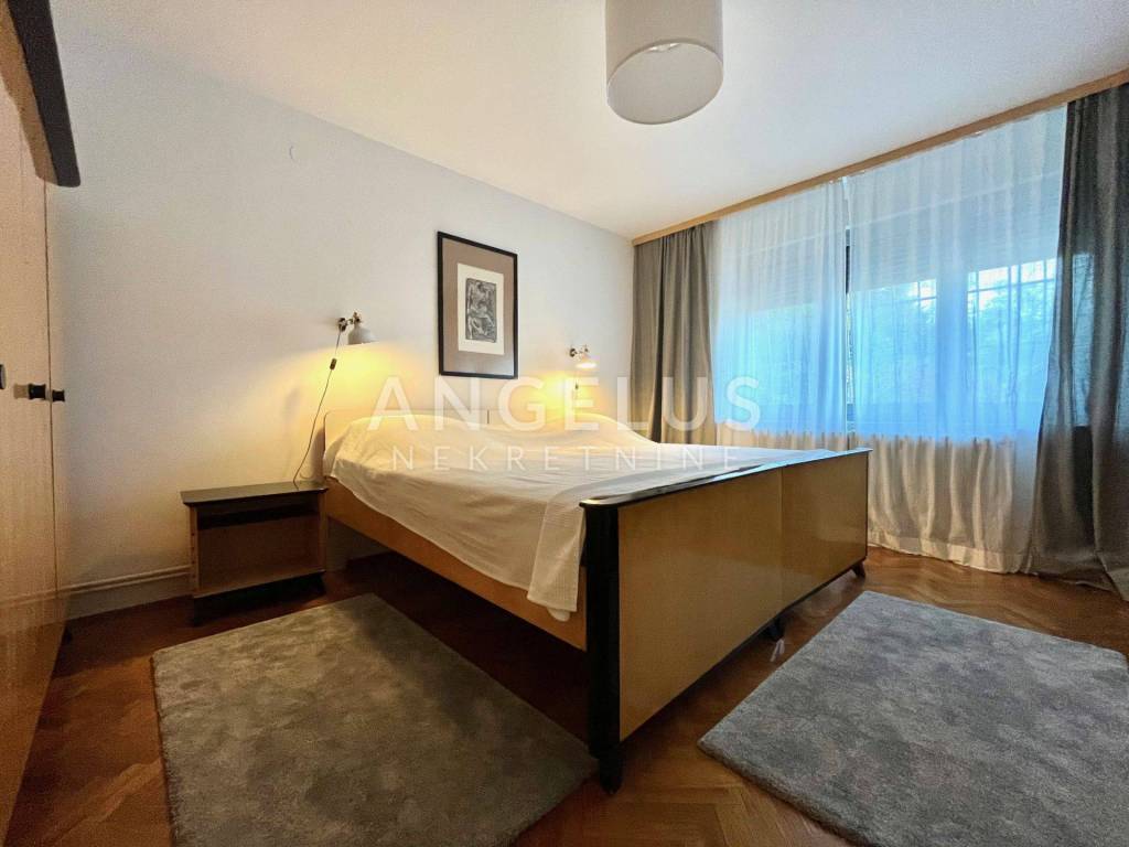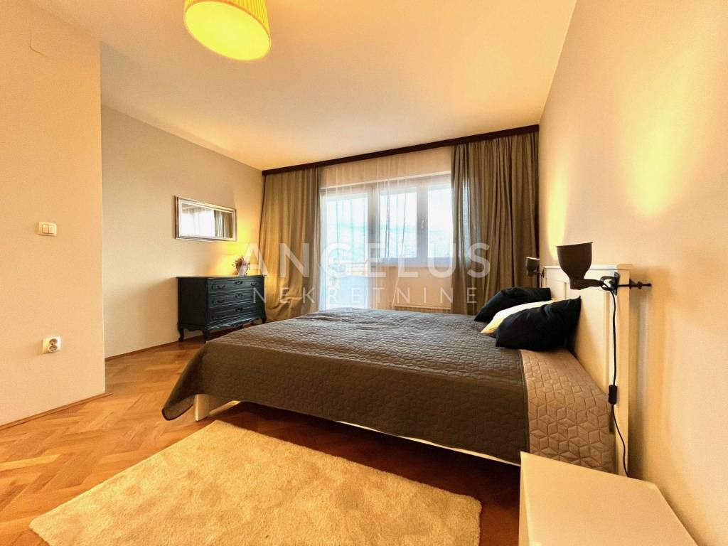 The two-level apartment is located on the first and second floors of an urban villa in a quiet street in Pantovčak. The apartment has an area of approx. 190m2 and consists of an entrance hall, a guest toilet, a new modern kitchen fully equipped and furnished, a dining room and a living room with access to a terrace that is oriented to the south and offers a wonderful view of the city. On the upper floor there are two bedrooms and a bathroom with a bathtub, and on the other side there is a spacious bedroom with access to the balcony and another very spacious room which is now organized as a work area, but is ideal for a master bedroom which then has own bathroom and a room intended for a wardrobe.
