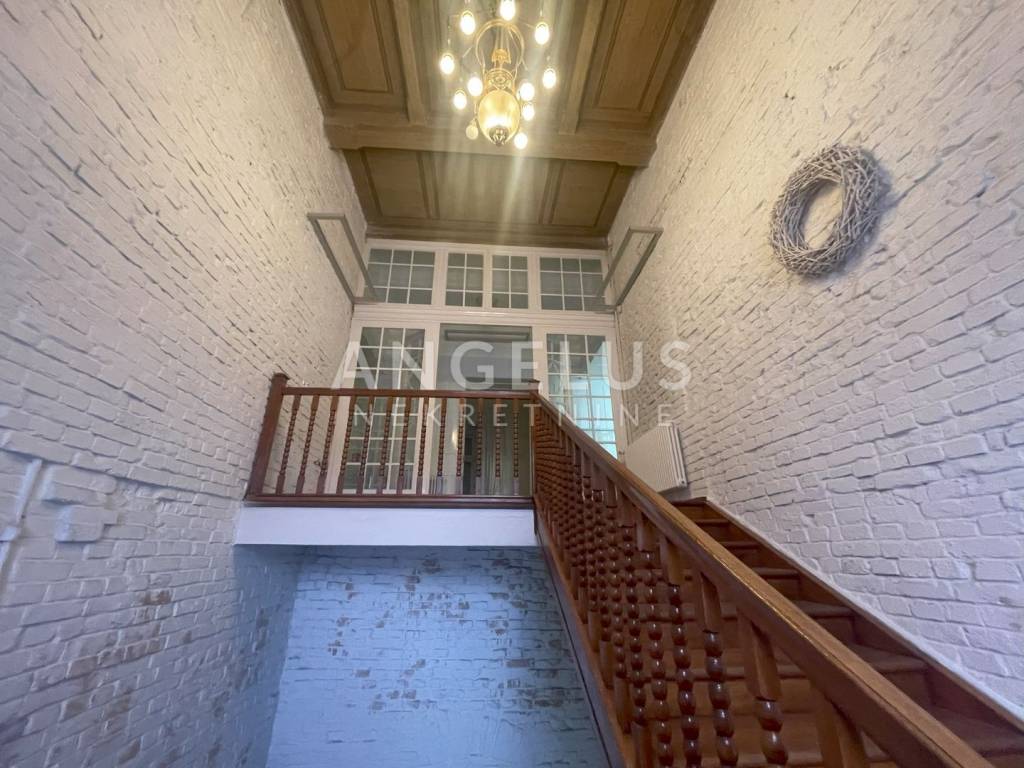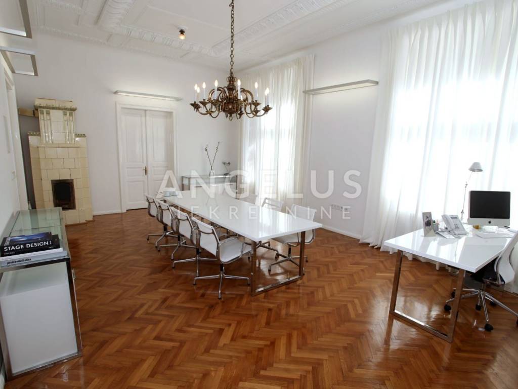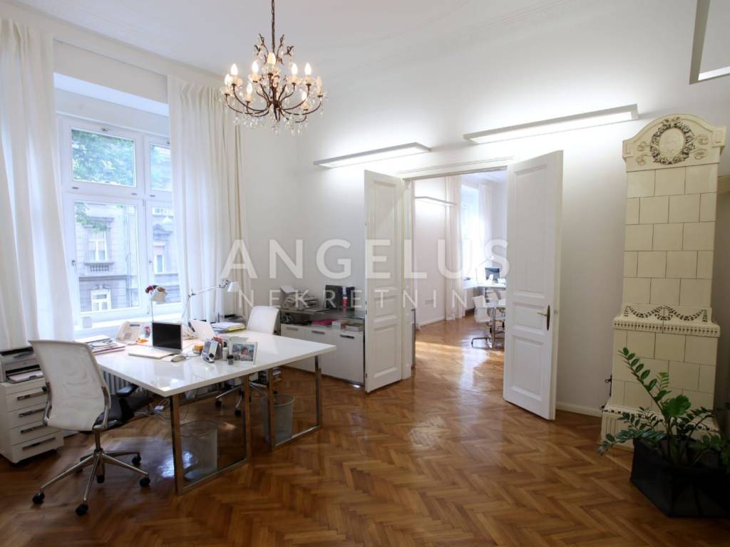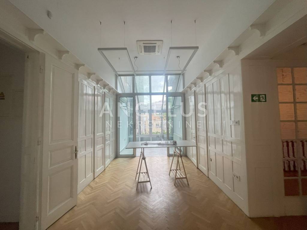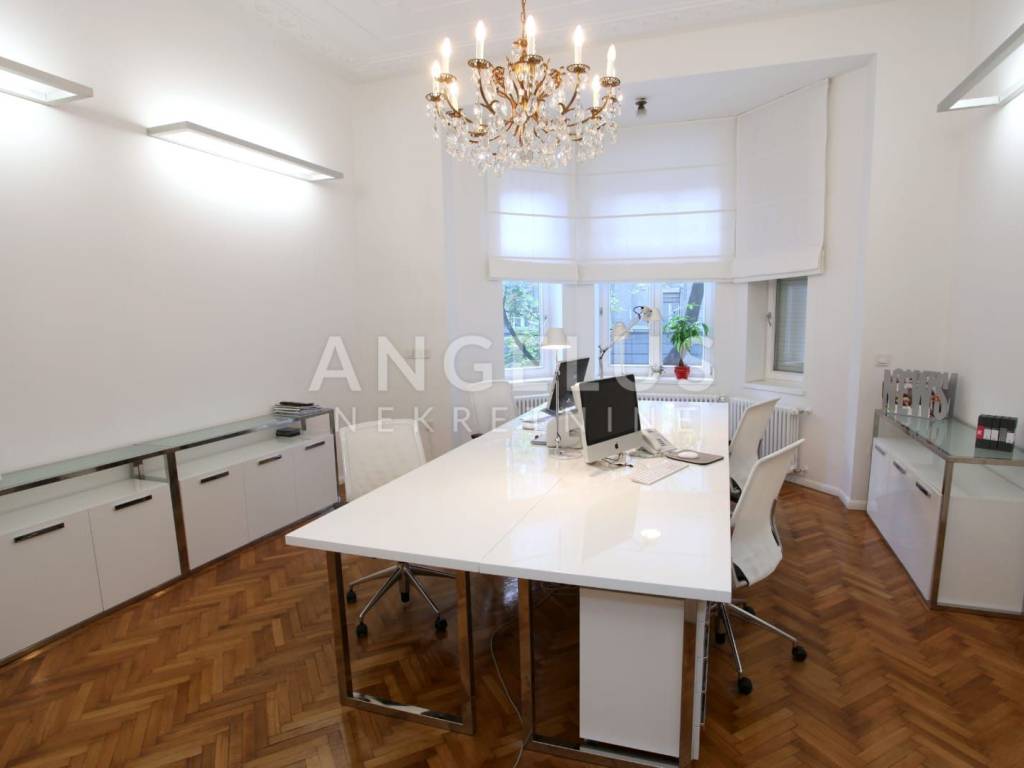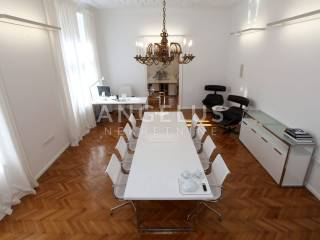Prostor se proteže na četiri etaže povezan s dvostrukim stubištem. U podrumu se nalazi kuhinja kojom se mogu poslužiti svi zaposlenici. U visokom prizemlju (80m2) nalaze se dvije velike salonske prostorije, kuhinja i toalet. Na prvom katu (320m2) nalazi se hodnik, 6 salonskih prostorija, server soba, čajna kuhinja, muski/ženski toalet, velika čekaonica s izlazom na ostakljenu terasu. Na drugom katu (150m2) su 4 salonske prostorije, kuhinja, toalet i balkon. Prostor je reprezentativan i poseban.