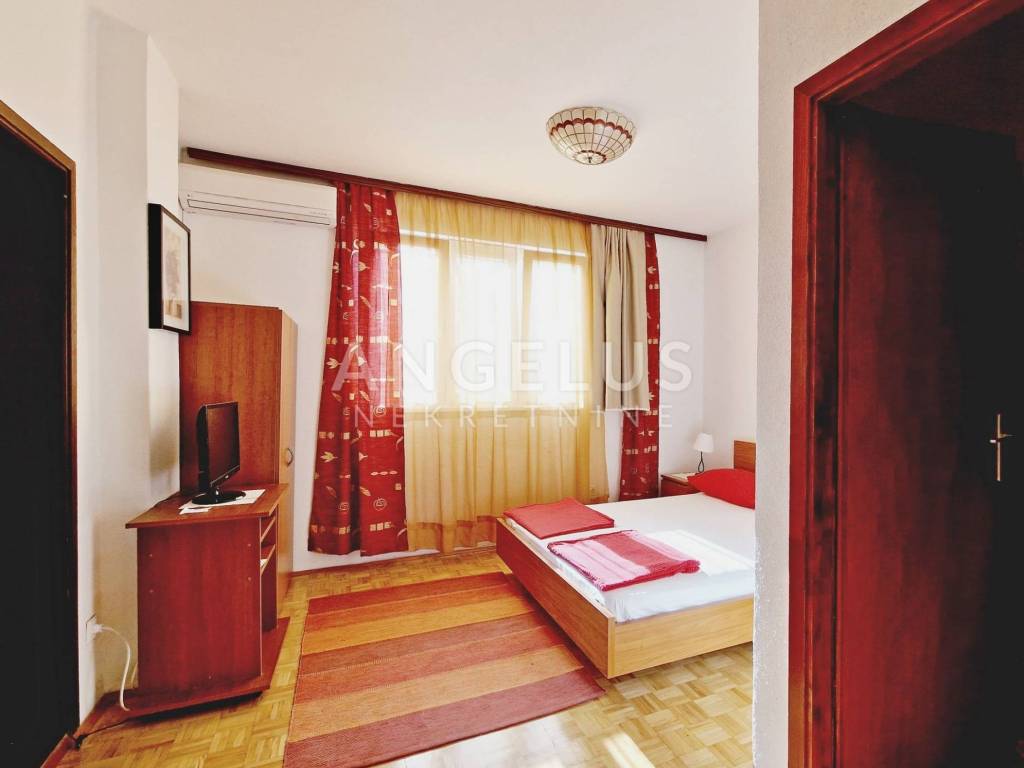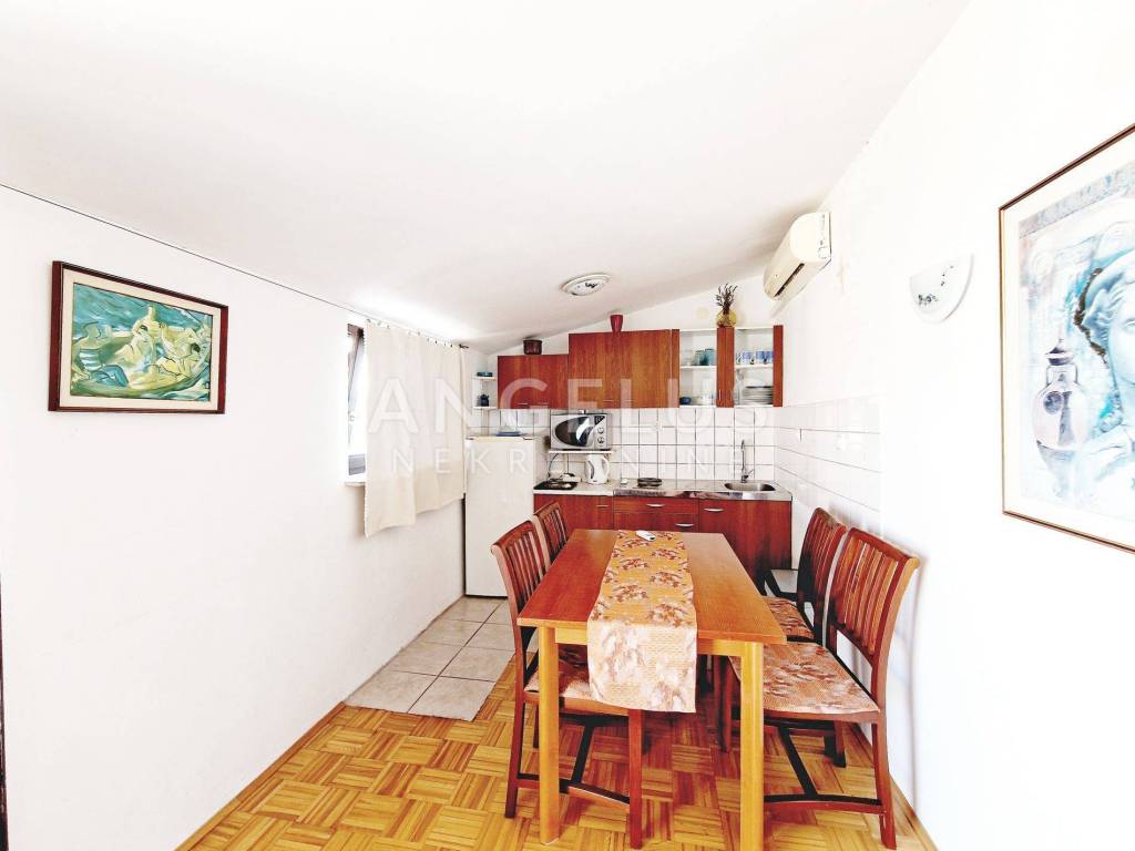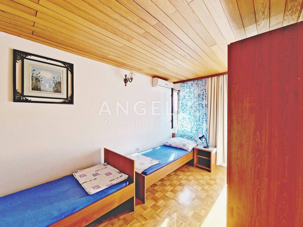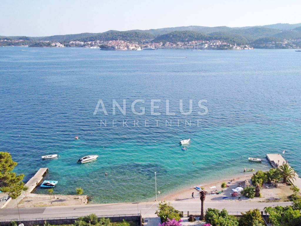 This detached house consists of a ground floor and two floors and an auxiliary building with a total usable area of 250 m2. There are two apartments on the ground floor, each of which has a spacious covered terrace with a view of Korčula. There are also two apartments on the first floor with an even better panoramic view of the sea, while from the attic, where the fifth apartment of approx. 80 m2 is located, there is a completely unobstructed view of the entire Korčula archipelago, which is difficult to remain indifferent to. The house was built in 1984, the interior was renovated in 2017 for the needs of tourist rental, during which part of the opening was replaced from wooden to PVC. The eastern facade was recently completely renovated. The house is for rent and, as such, represents a wise long-term investment due to its position and proximity to the beach, which is only a two-minute walk away.