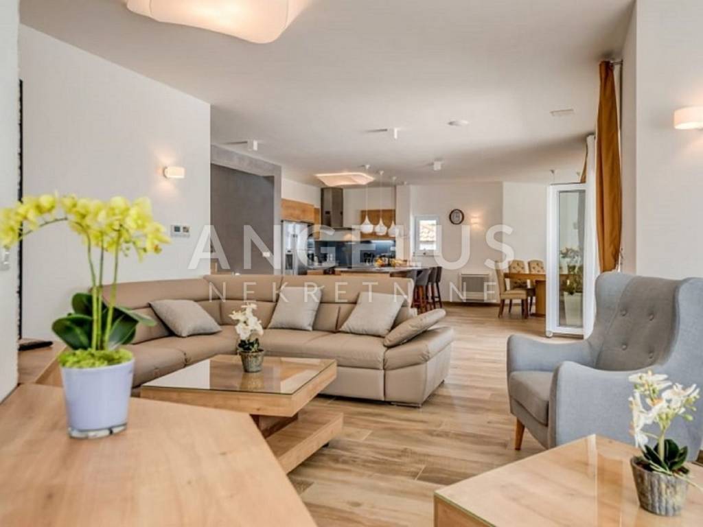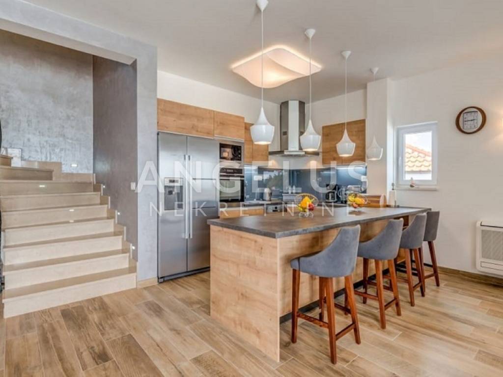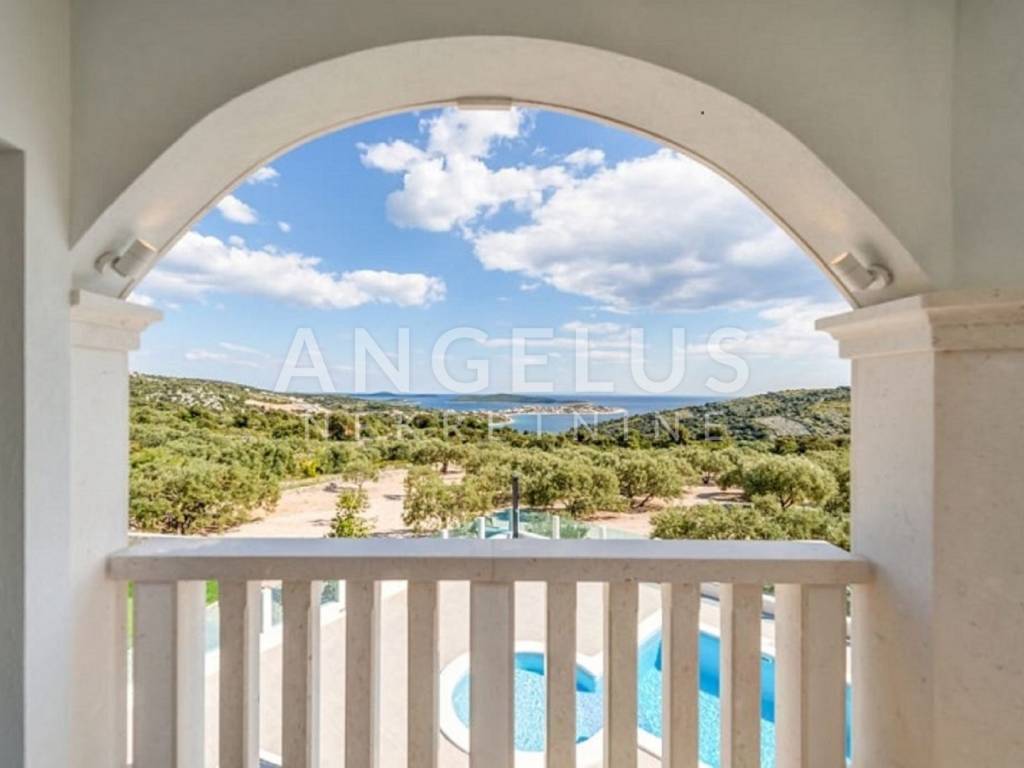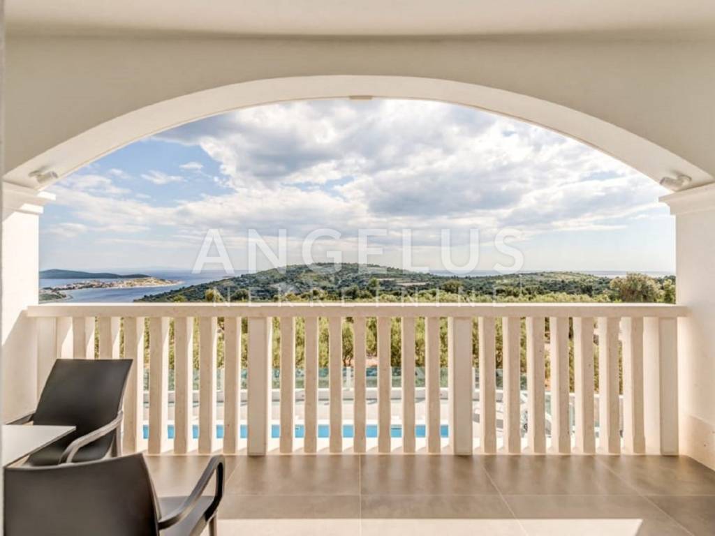 The house has a total area of 150 m2 and consists of ground floor and first floor. On the ground floor there are kitchen, dining room and large living room with glass walls throughout the entire length and on the large terrace. From the terrace there is an open, unforgettable view of the sea, the islands and the place Sevid. In this part are a bathroom and a toilet and a wine cellar. On the ground floor there are 4 bedrooms, 3 bathrooms, and each room has access to the balcony.