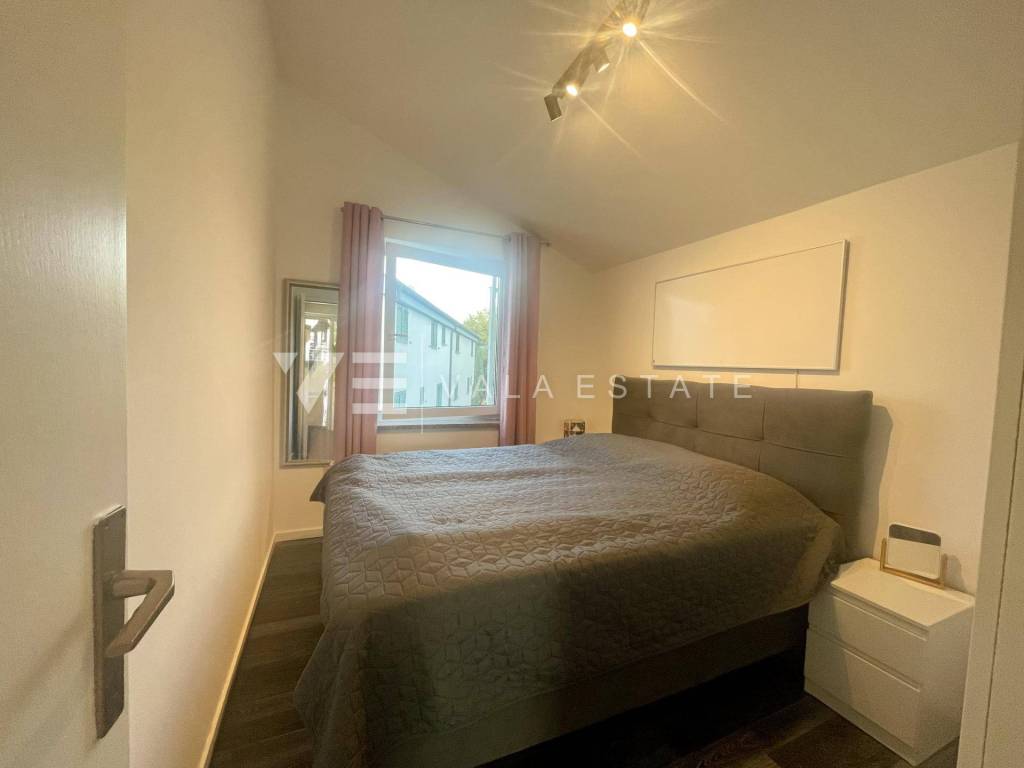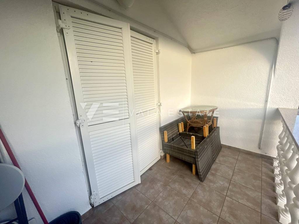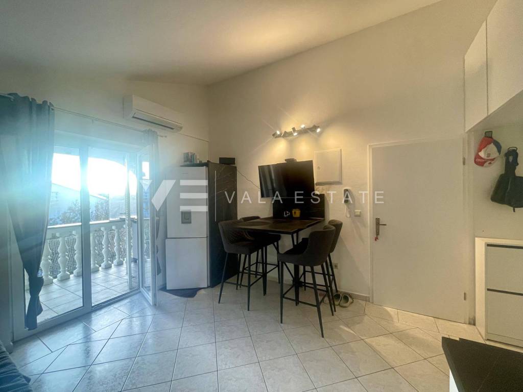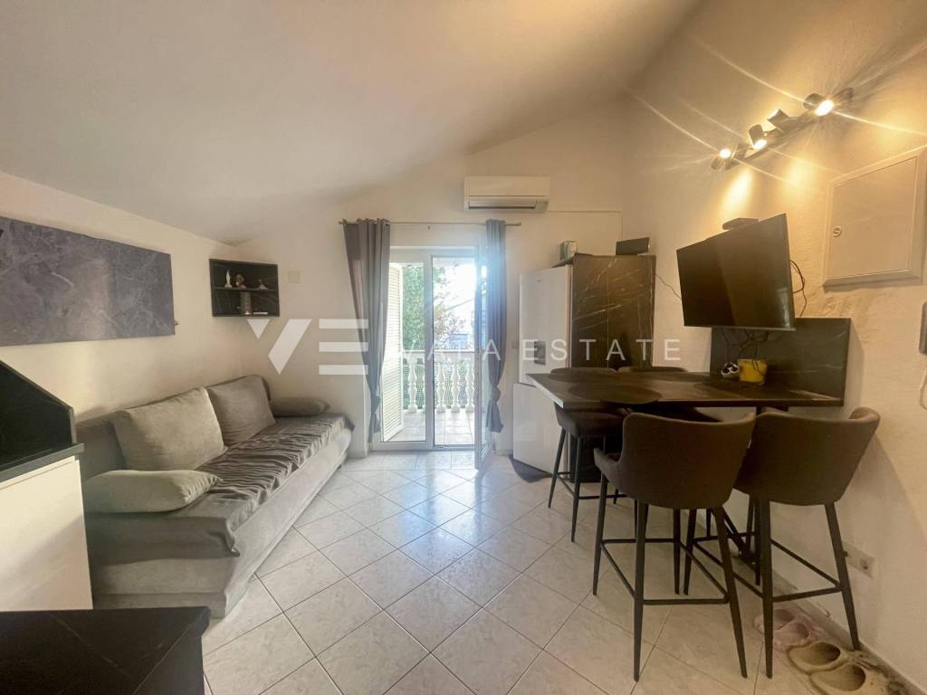 Real estate island Krk, Malinska - for sale is a one-bedroom apartment near the center and beautiful beaches. The apartment with a total living area of 35 m2 is located in the attic of a multi-family house and consists of an entrance hall, utility room, bathroom, bedroom, kitchen with dining area and living room with access to a covered terrace with a partial sea view. The apartment is furnished, air-conditioned, has PVC exterior carpentry and is immediately ready to move in. It comes with one parking space in the shared courtyard of the house. It is an excellent opportunity for your own use or for tourist rental.