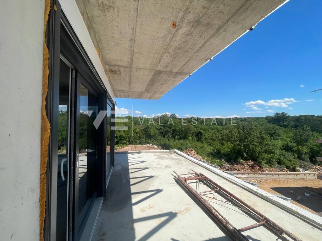 Real Estate Island of Krk, Njivice - for sale is an apartment on the first floor of a new building consisting of a total of four residential units. The apartment has a living area of 71.97 m2 and consists of an entrance hall, utility room, two bedrooms, bathroom, kitchen, dining room and living room with access to a covered terrace with a sea view. It has two parking spaces in the garage and a storage room. Quality materials and equipment were used for the construction, including ceramic floor coverings, quality sanitary ware, underfloor heating with a heat pump, Fan-coil multi split air conditioning, video surveillance, built-in high-quality ALU joinery and security doors. It is located in a prime location near the sea, beautiful beaches and the center with all necessary amenities. The property is currently under construction, and the planned completion is expected by the end of 2025.
