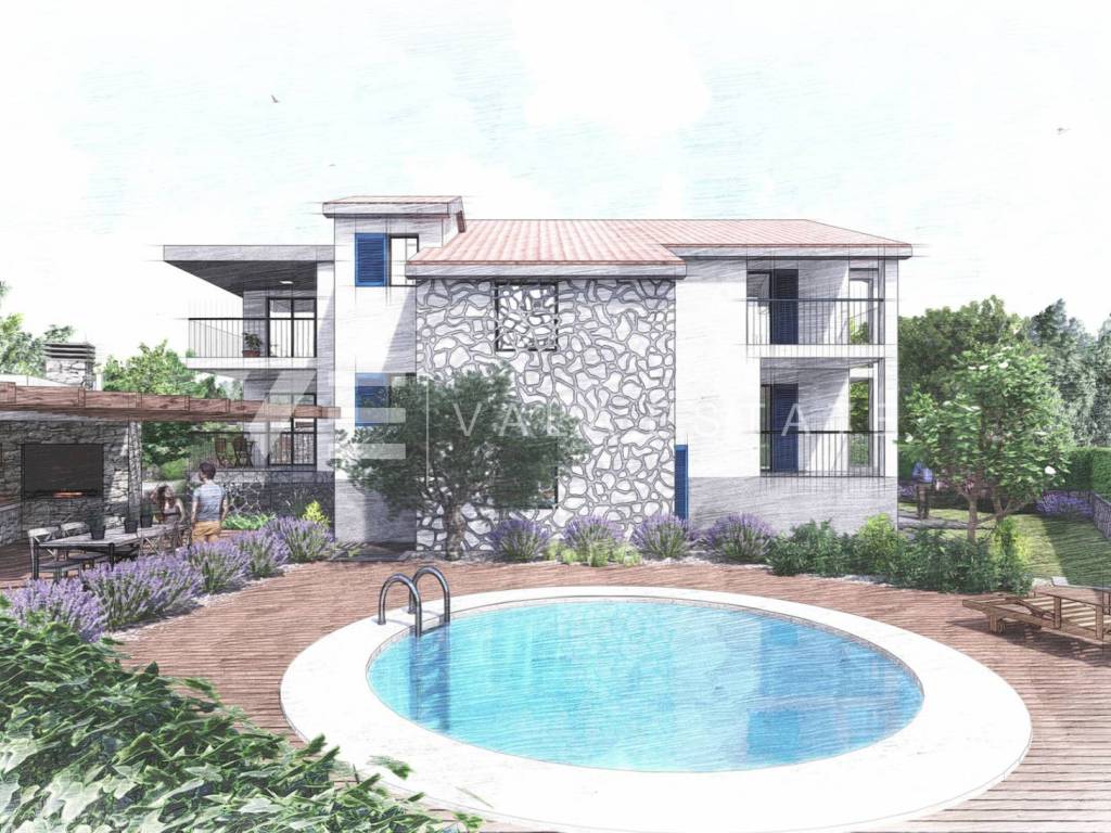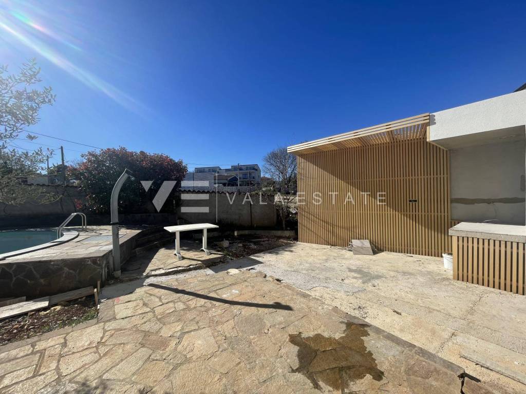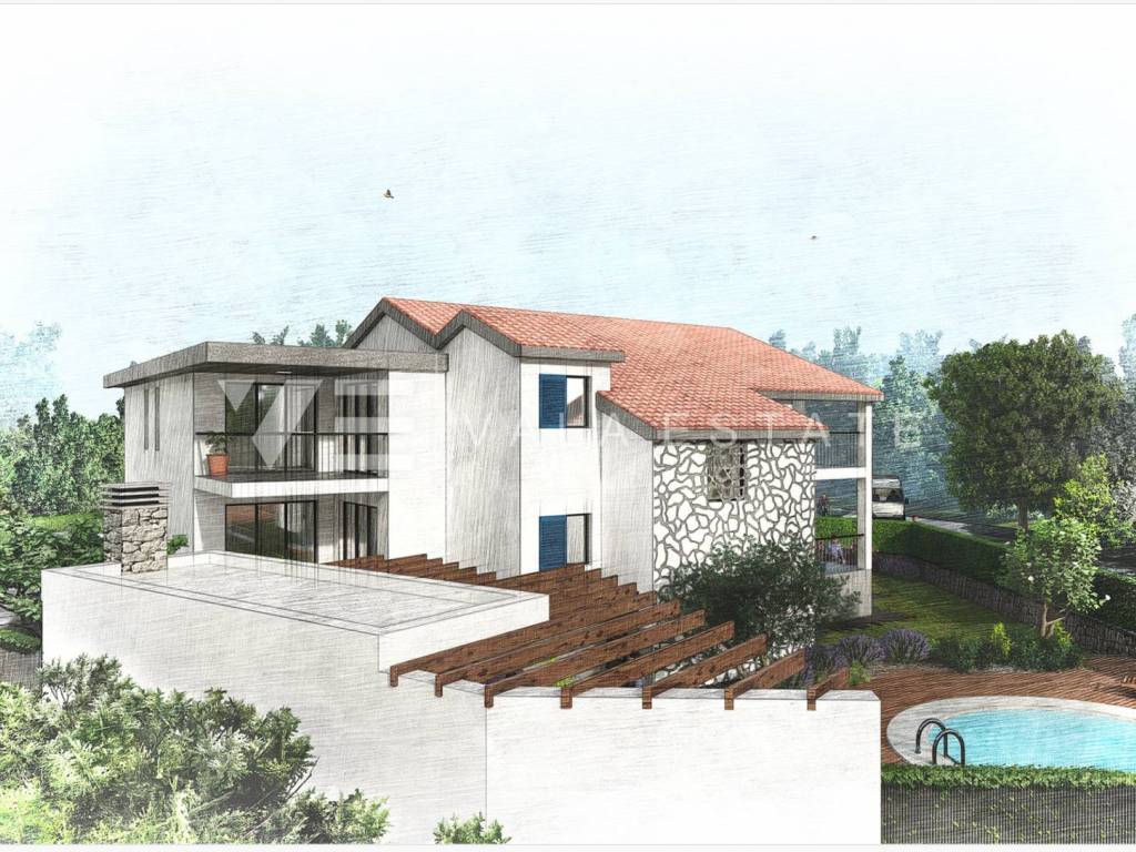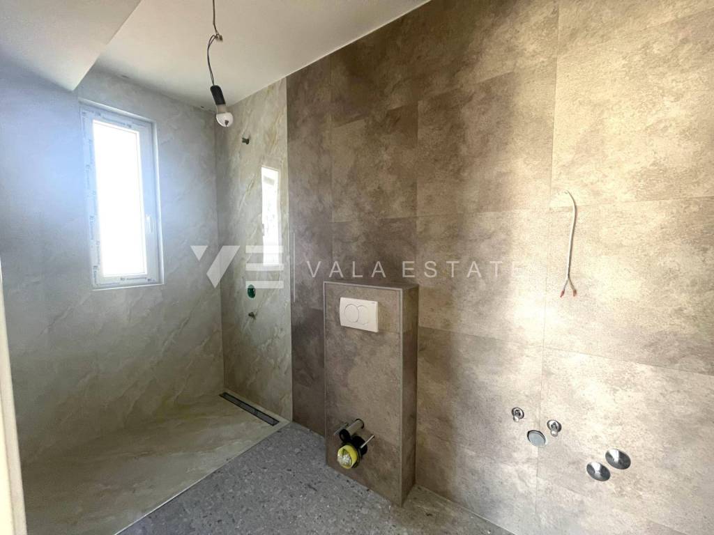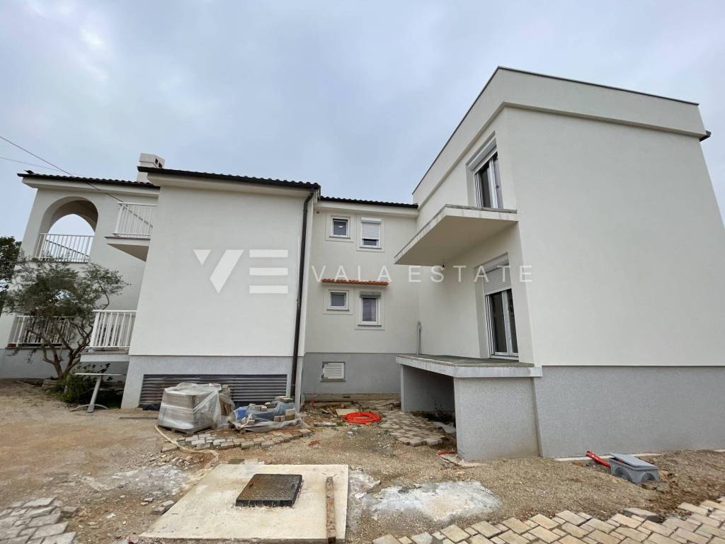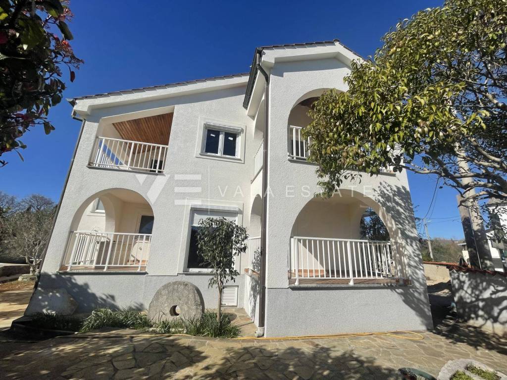 Real estate on the island of Krk, in the vicinity of the town of Krk - for sale is an apartment on the high ground floor with a total living area of 89 m2. It consists of an entrance area, two bedrooms, two bathrooms, toilet, kitchen, dining room, living room and two terraces. The apartment is located in a completely renovated multi-family house with a total of four residential units, and there is a swimming pool and barbecue on the shared plot. There is a possibility of negotiating a storage room located in the basement of the building. It also has two parking spaces in the shared courtyard of the building. It is located in a quiet location, and the distance to the sea and various tourist facilities is 1200 m. The planned completion of construction for moving in is scheduled for June 2025.