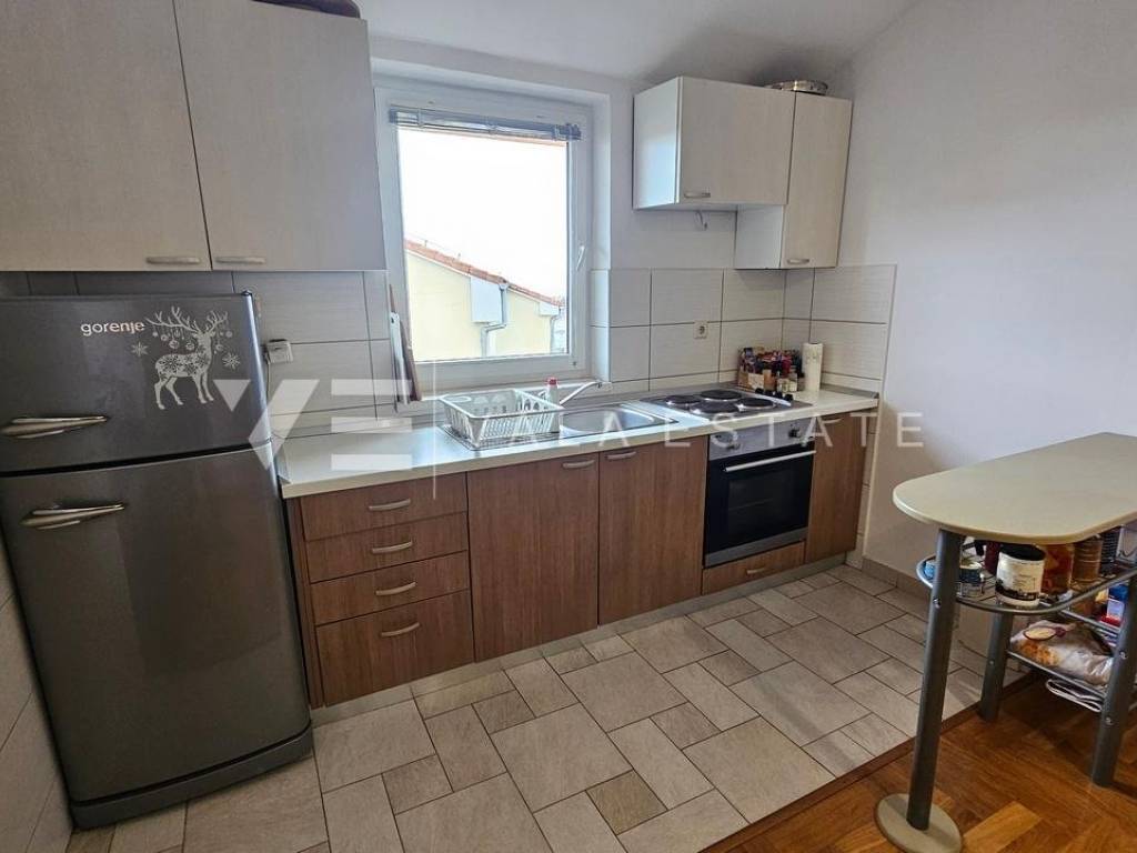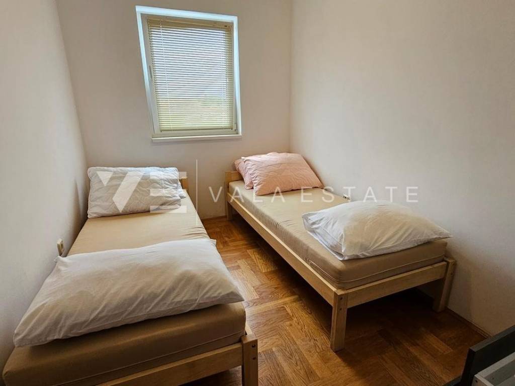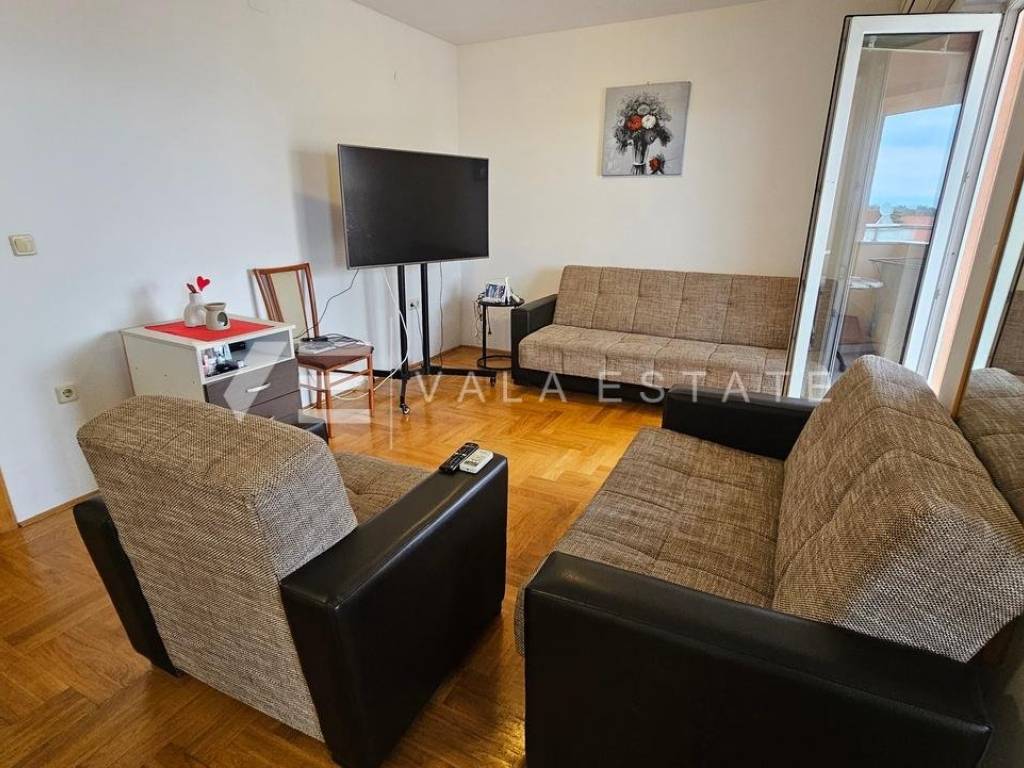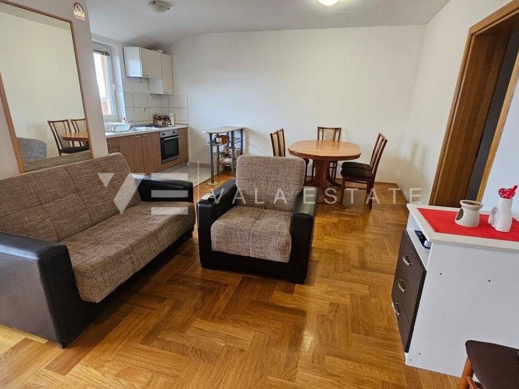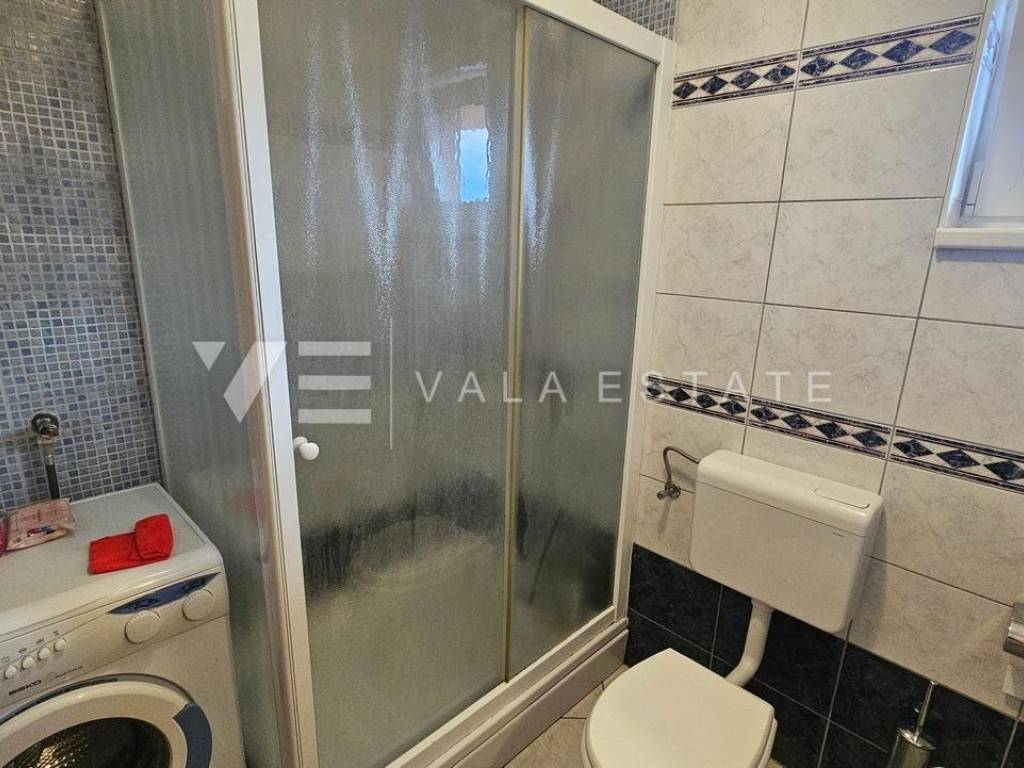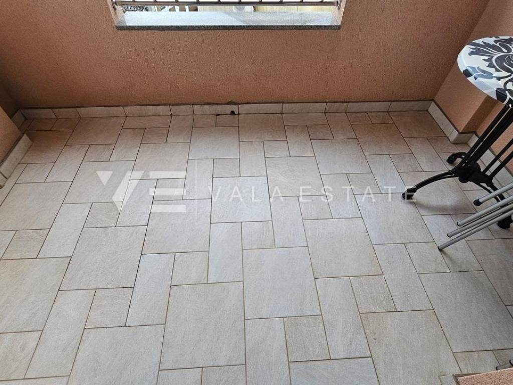 Real estate island of Krk, Malinska - for sale is a two-bedroom apartment with a total living area of 61 m2 located on the second floor of a family house. It consists of an entrance hall, bathroom, two bedrooms, kitchen, dining room and living room with access to a covered terrace with a sea view. The apartment is furnished and equipped, air-conditioned, has PVC joinery and is immediately ready to move in. It has one parking space in the shared courtyard of the house. It is located in a quiet location near the sea and the center with all amenities. It is an excellent opportunity for your own use or for tourist rental.