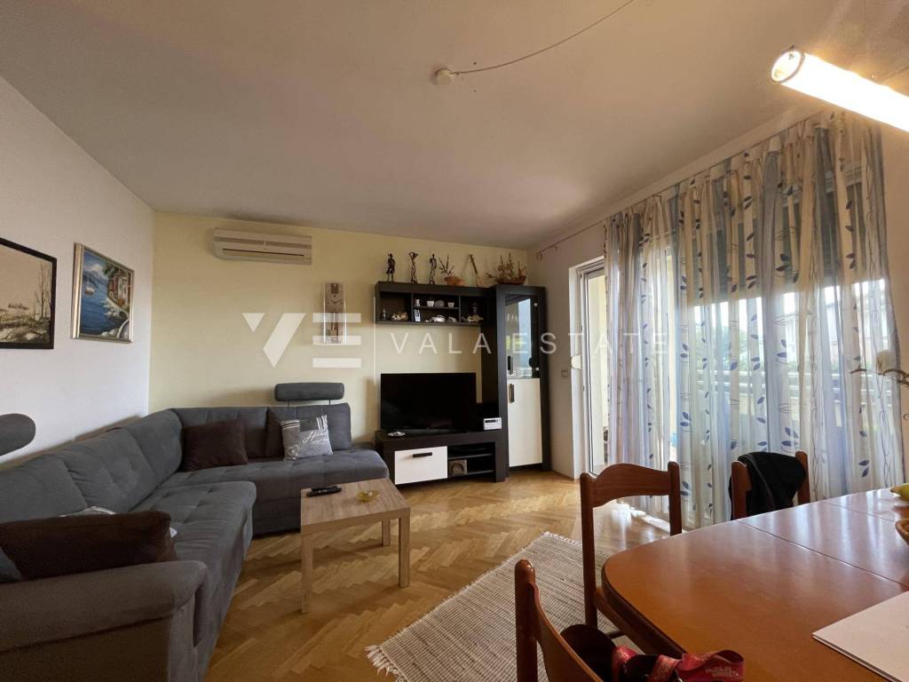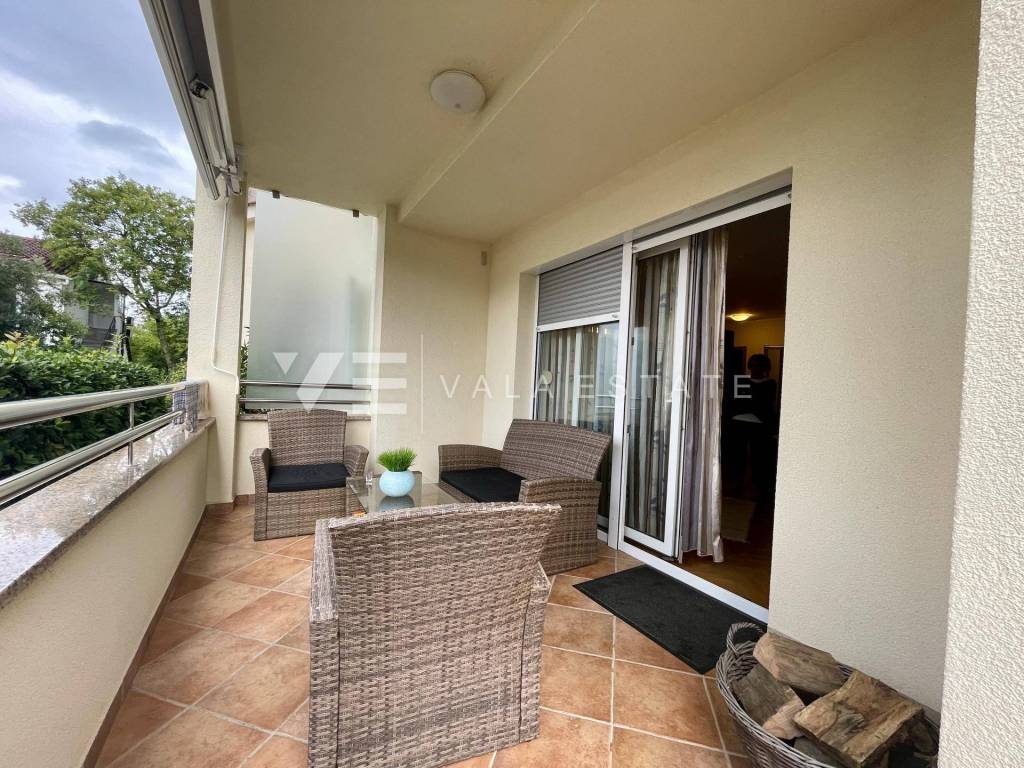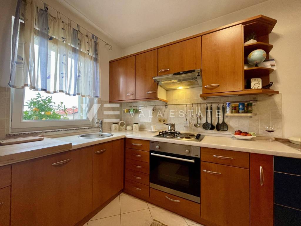 Real estate island Krk, Malinska - for sale is a furnished two-room apartment with its own garden located on the ground floor of a multi-family building in the immediate vicinity of the sea and beaches. The apartment with a total living area of 62.50 m2 consists of an entrance hall, two bedrooms, a bathroom, a pantry, a storage room, a kitchen with a dining room and a living room with access to a covered terrace and a beautifully landscaped garden of 130 m2 where there is a summer kitchen and brick barbecue. It has one parking space in the common courtyard of the building. The apartment is for sale fully furnished, air-conditioned, has PVC exterior joinery, proper documentation and ready to move into. It is located in an excellent location only 400 m from the sea and beautiful beaches and not far from the center of Malinska.