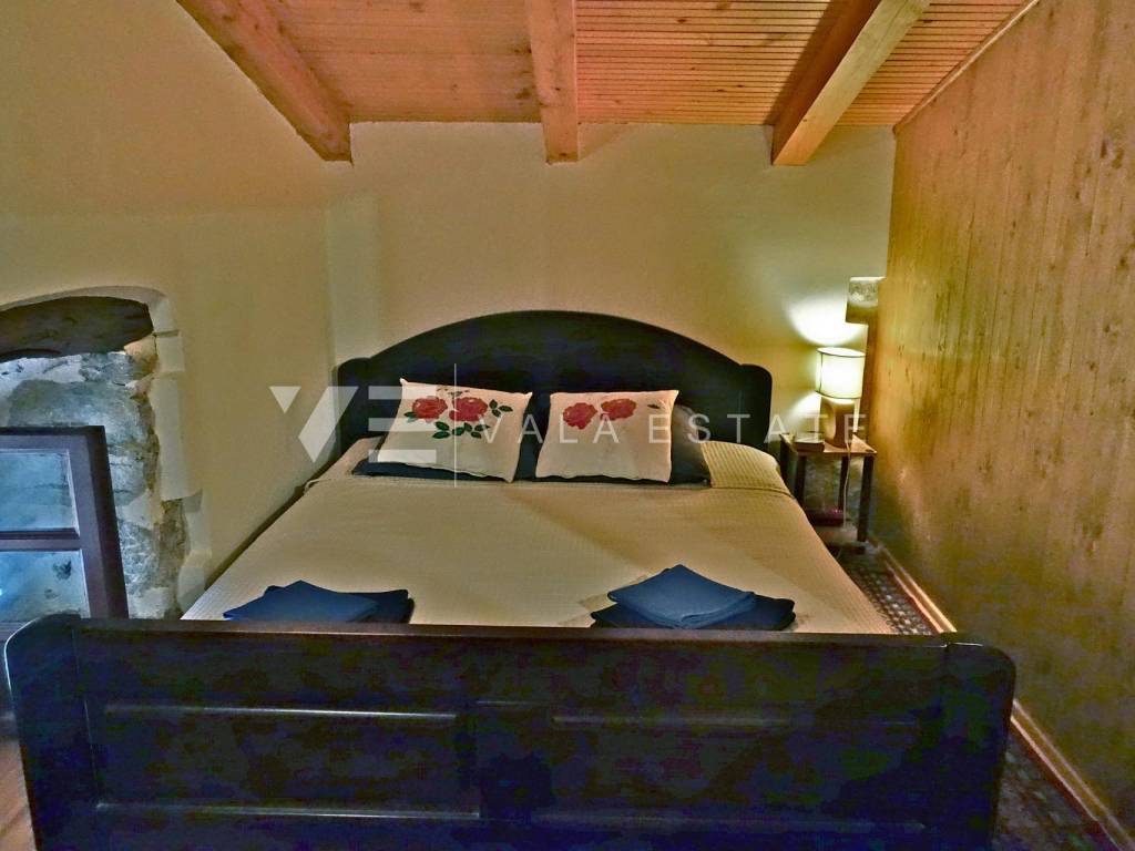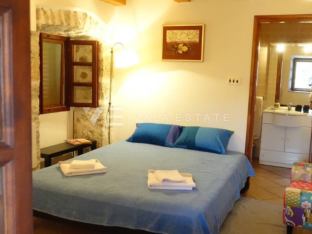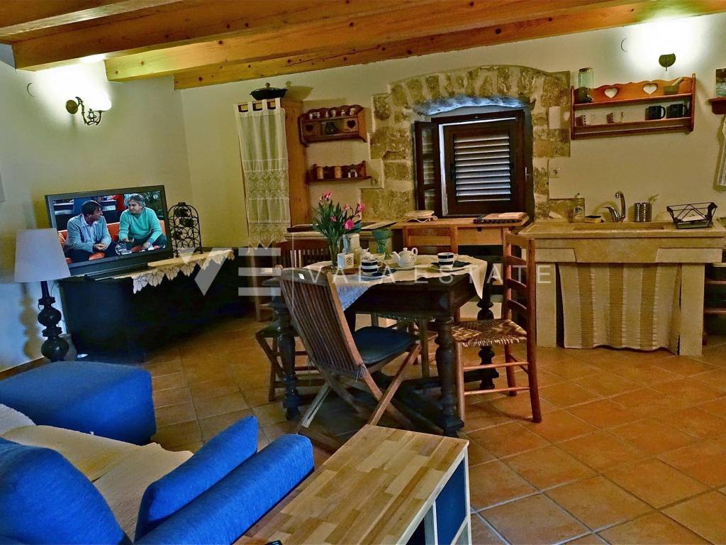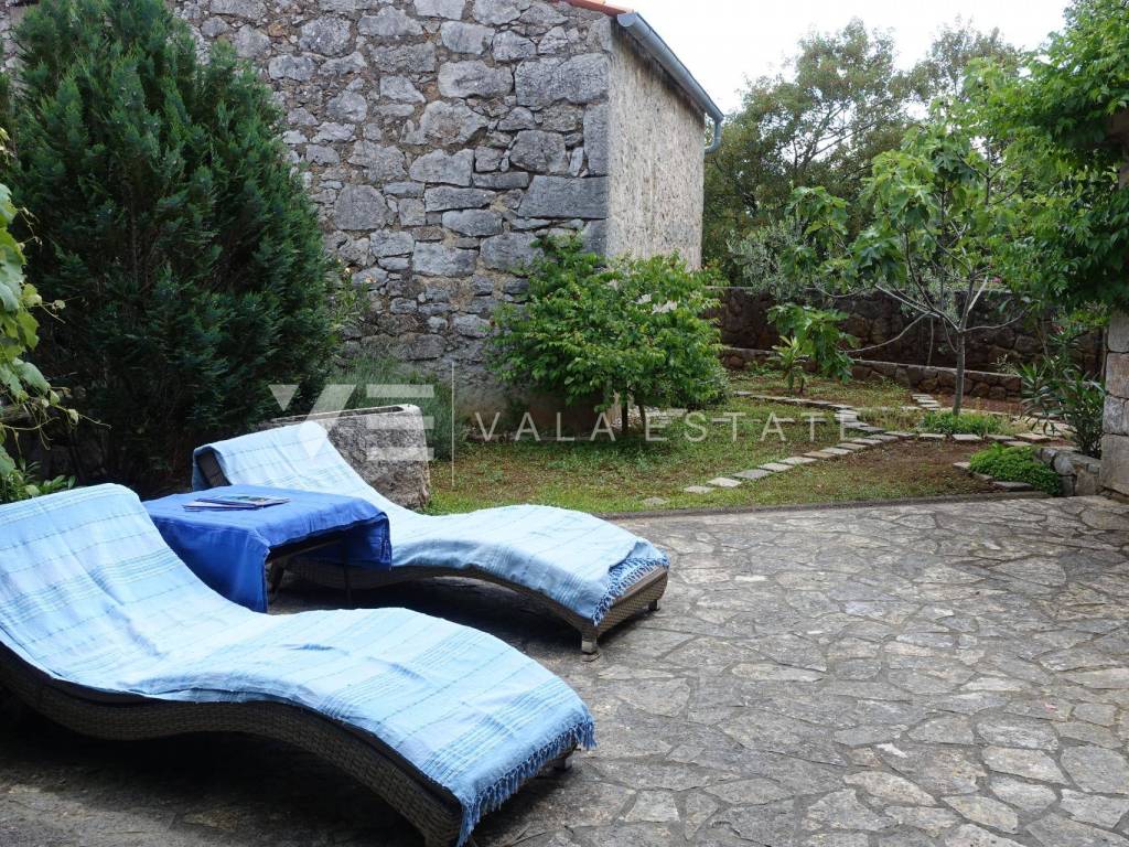 Real estate on the island of Krk, town of Krk and its surroundings - for sale is an adapted indigenous stone house in the Mediterranean style, with a total area of 138 m2 and a beautifully landscaped garden. On the ground floor of the house there is an open space consisting of a bathroom, a living room, a kitchen with a dining area and a large covered terrace. Internal stairs lead to the first floor where there is a bathroom, bedroom, kitchen with dining room and living room with access to the balcony. There are two more bedrooms and a bathroom in the high attic. There is a jacuzzi, a garage, a large covered terrace with a barbecue and a patio, and three parking spaces on the beautifully landscaped garden. The house is air-conditioned, has a functional wood-burning fireplace, preparation for central heating, wooden and PVC joinery. It is located in a quiet island town, 4500 m from the sea, beaches and the center with all the necessary amenities. This property is ideal for lovers of nature and coastal architecture or is a great investment in tourism.