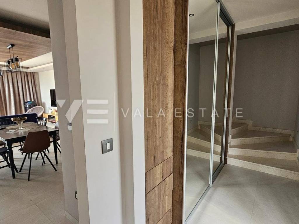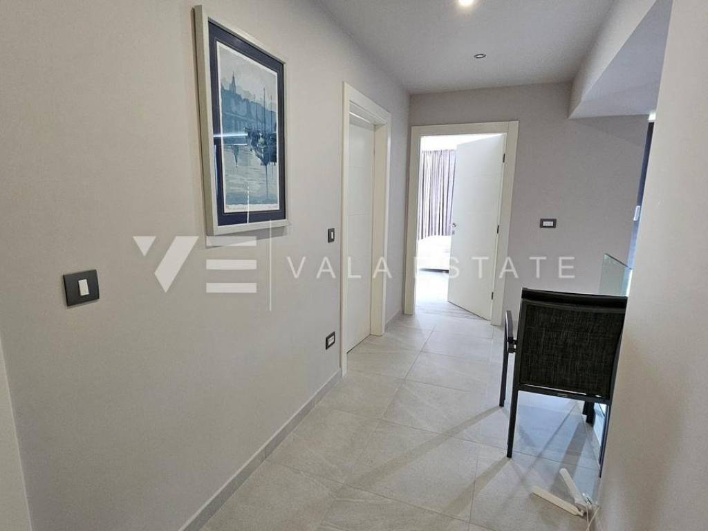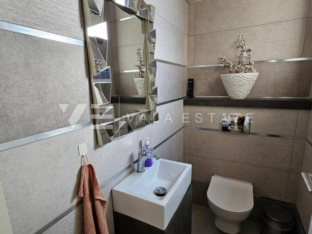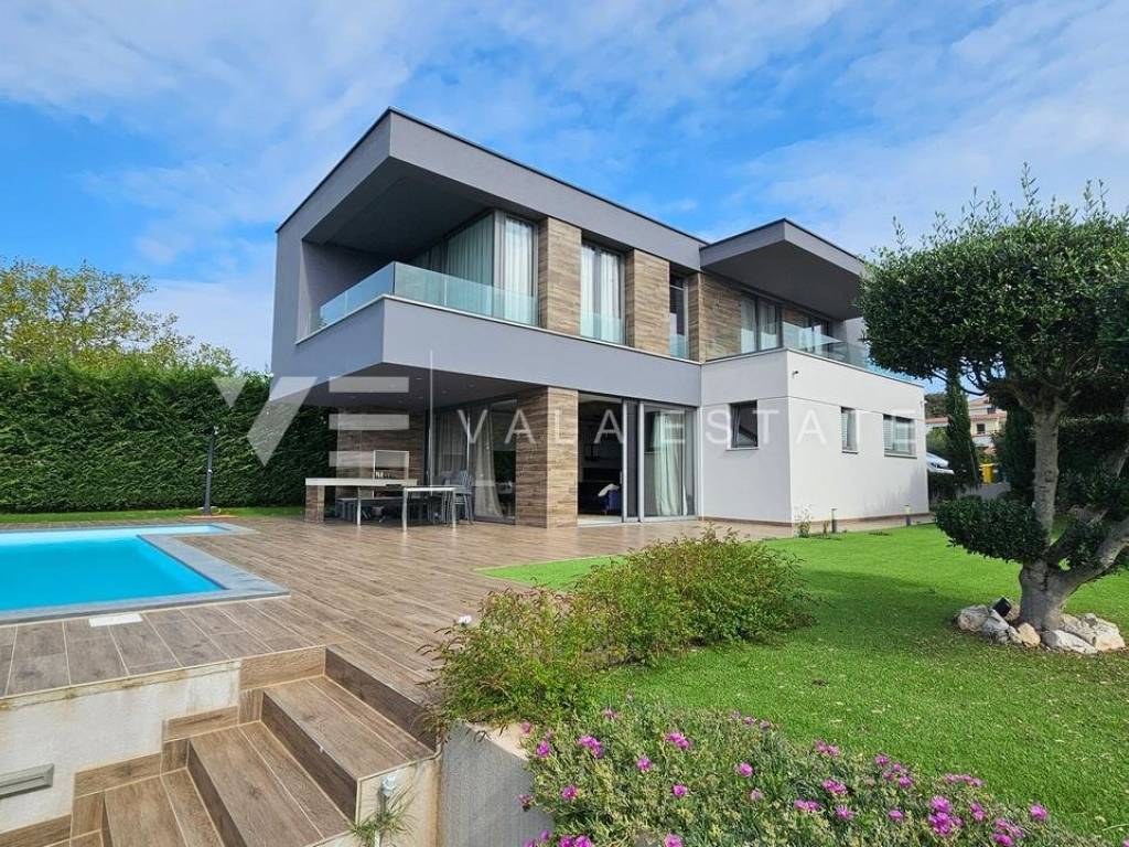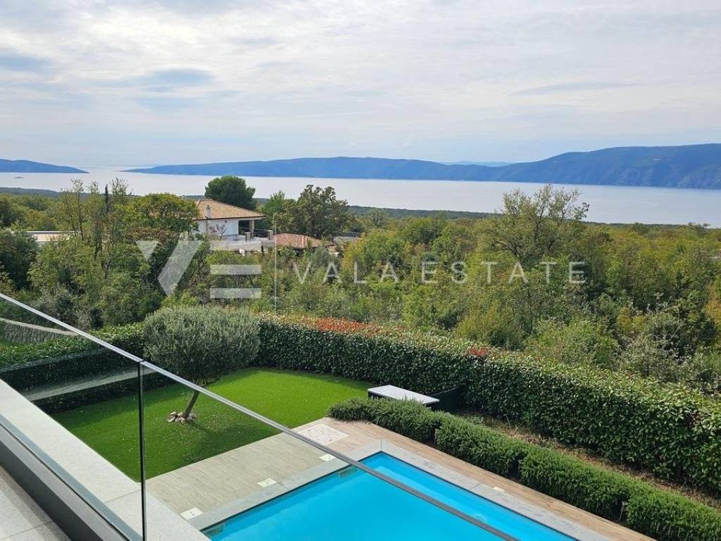 Real estate on the island of Krk, the city of Krk and surroundings - for sale is a modern luxury villa with a large garden, a swimming pool and a beautiful view of the sea. The villa occupies a living area of 169 m2 and consists of a ground floor with an entrance area, a toilet, a bedroom with a bathroom, a spacious living room, a kitchen and a dining room with access to a covered terrace. On the floor, which is connected by an internal staircase, there is a bathroom, three bedrooms, one of which has its own bathroom, and each room has access to a covered terrace with an open view of the sea. It is fully equipped with quality modern furniture and equipment and is being sold as such. The green garden decorated with Mediterranean plants has a swimming pool and sunbathing area, as well as parking for several vehicles. The villa is equipped with high-quality ceramics, is fully air-conditioned, has underfloor heating and built-in ALU carpentry with lifting and sliding walls, video surveillance, alarm system, outdoor grill and garden irrigation. An excellent real estate worthy of attention, surrounded by villas, only 2000 m from the sea and the beach.