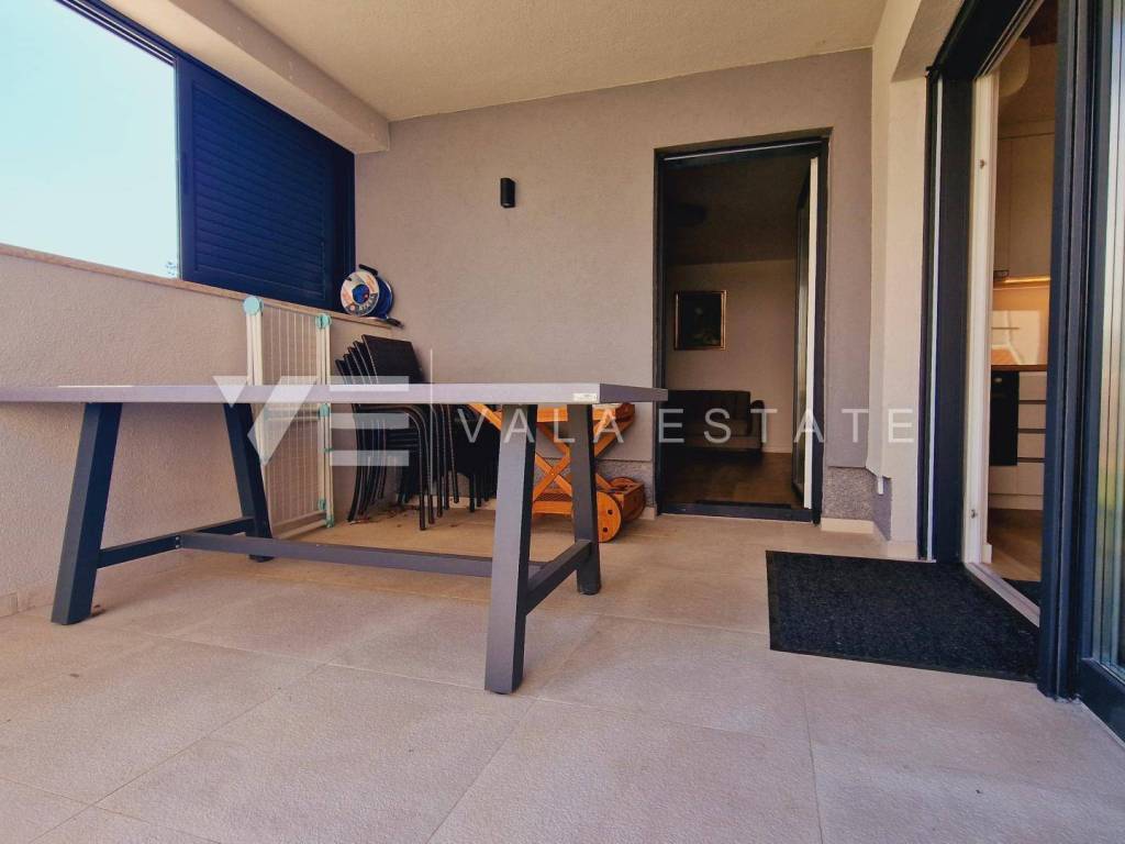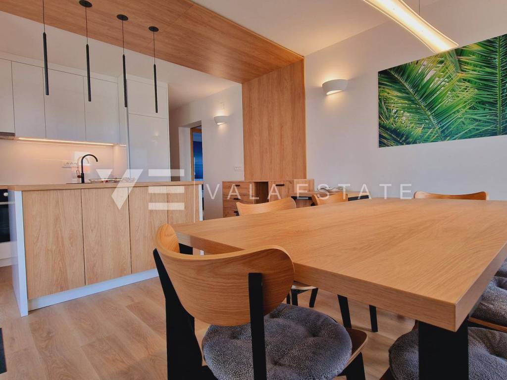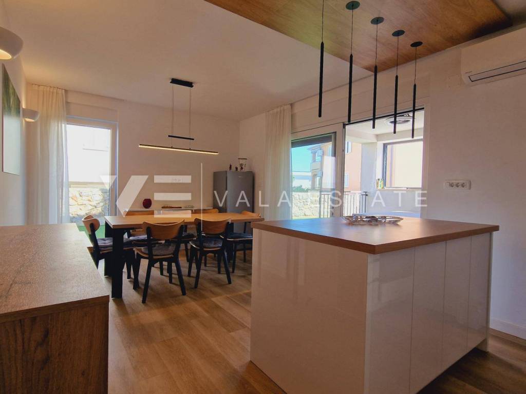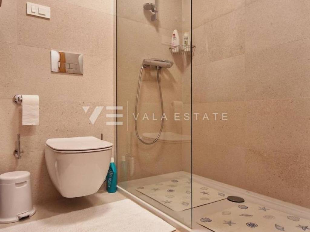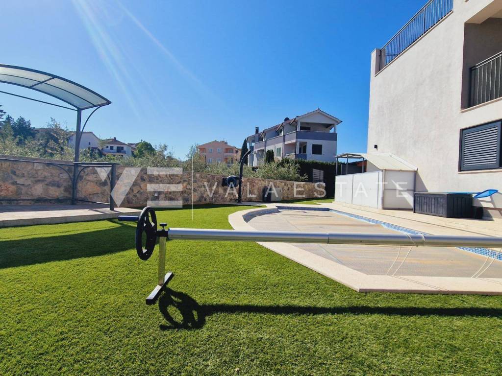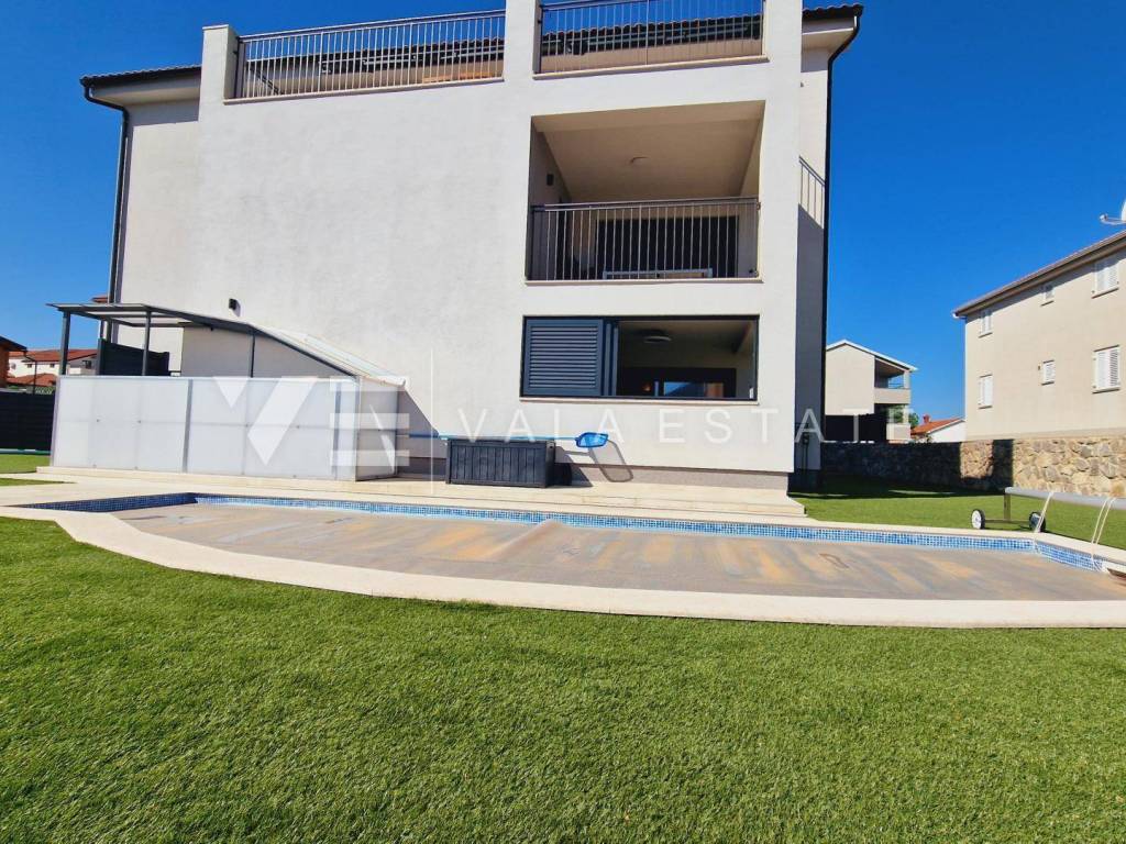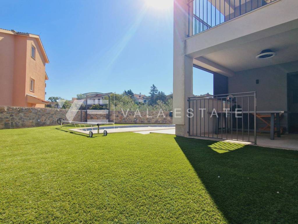 Real estate island Krk, Malinska - for sale are two spacious separate apartments with a total living area of 193 m2. The apartments are located on the ground floor and basement of a newer family building built in 2022. The apartment on the ground floor occupies a living area of 104.43 m2 and consists of an entrance hall, three bedrooms, three bathrooms, a kitchen with a dining room and a living room with access to a covered terrace and a beautifully landscaped garden of 217 m2 with a heated pool, sun deck and barbecue. . The apartment in the basement covers 98.42 m2 and consists of a storage room with a laundry room, a toilet, a bathroom, two bedrooms, a kitchen with a dining room and a living room with access to a covered terrace. Quality construction, equipment and sanitary facilities, air conditioning, PVC joinery and security doors are some of the features of these modern apartments. They are sold fully furnished with high-quality designer furniture and equipped with top-quality electrical appliances. They have two parking spaces in the common yard of the house. They are located in a beautiful and quiet location only 350 m from the sea and beaches.