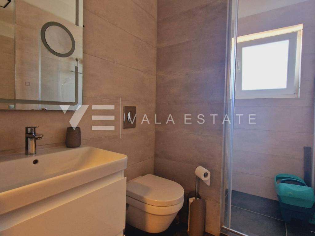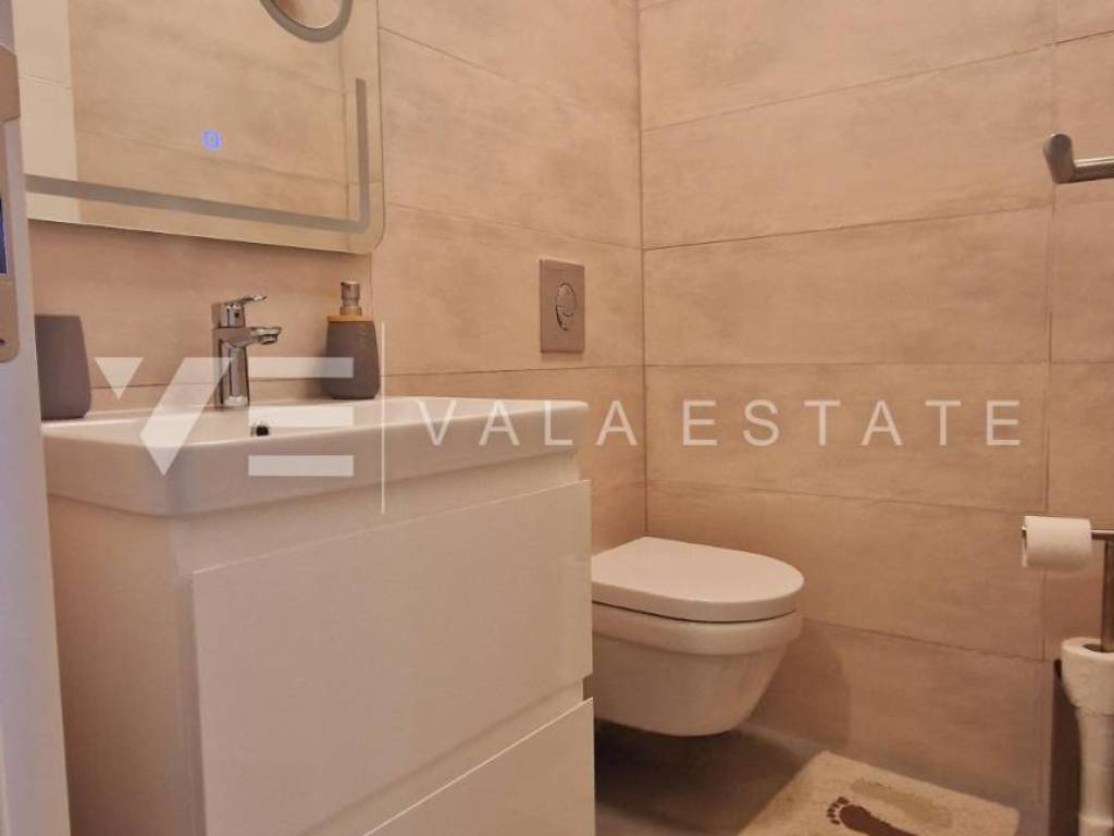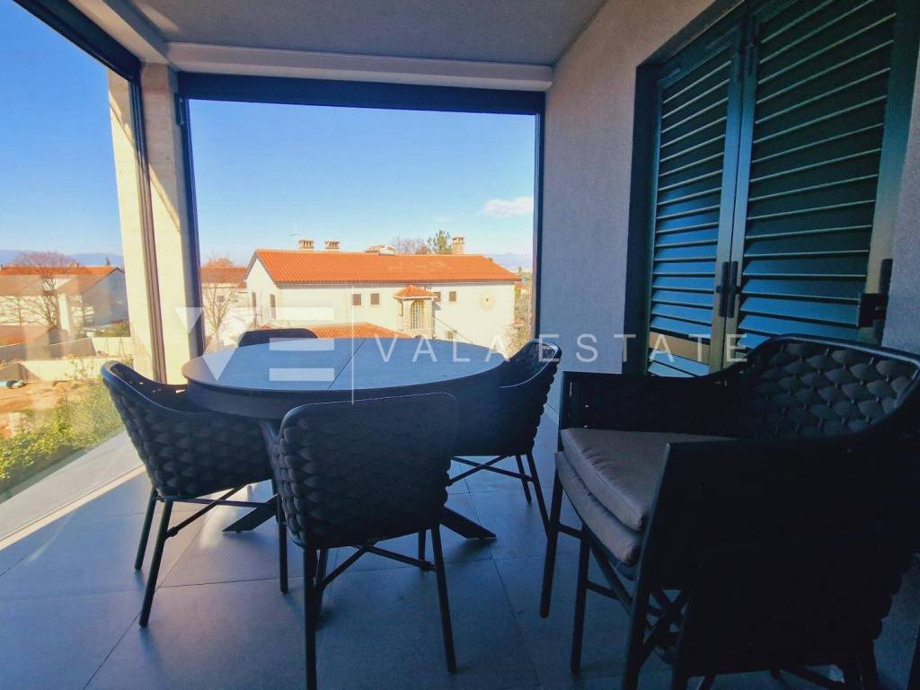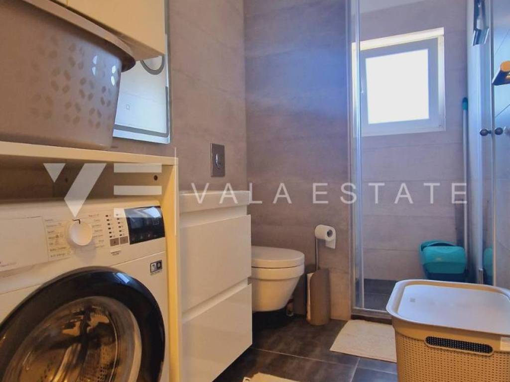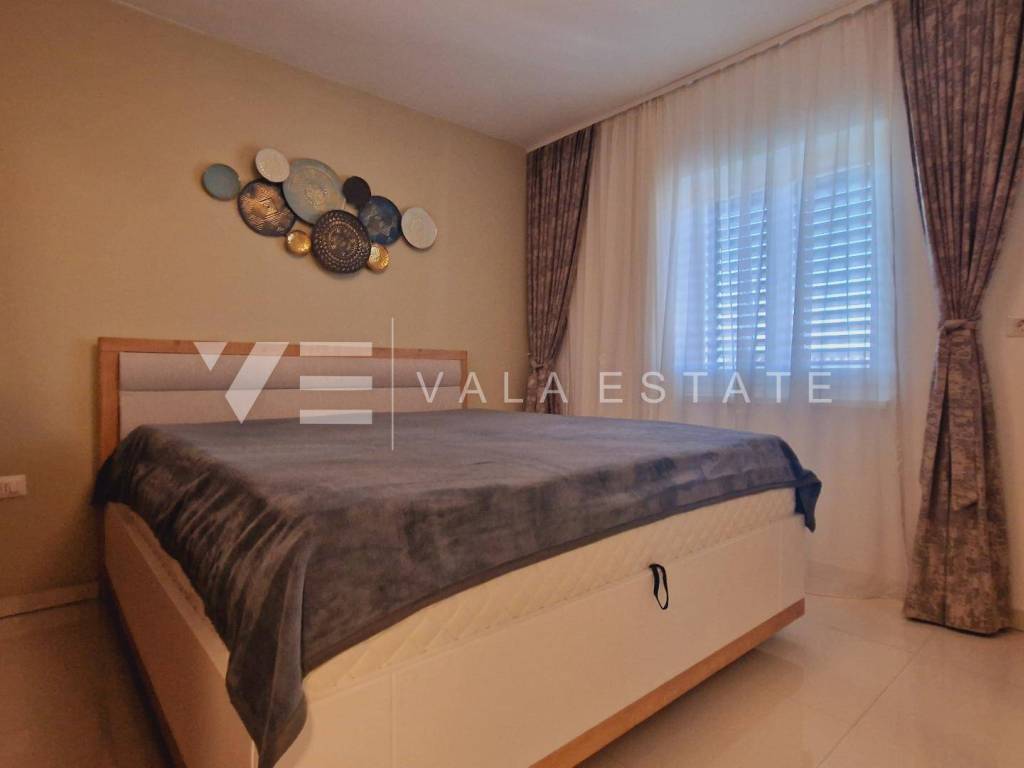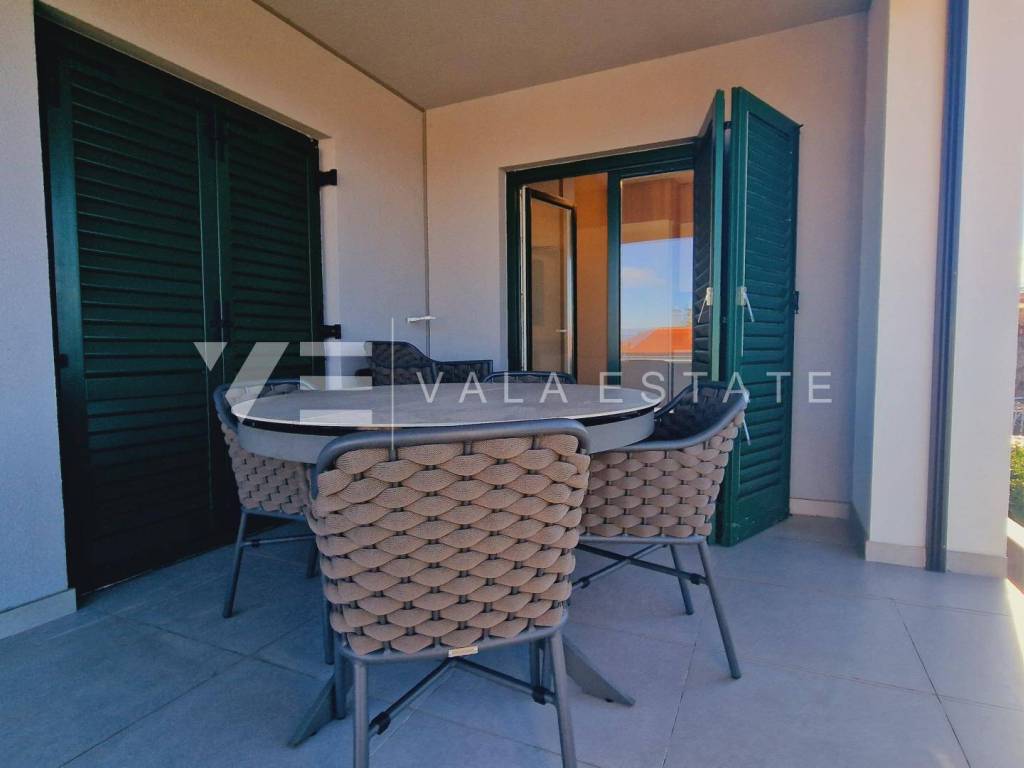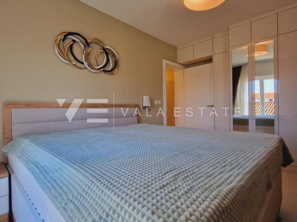 Real estate island Krk, Malinska - for sale is a furnished apartment in a multi-family house near the sea and beautiful beaches. The apartment with a total living area of 79 m2 consists of an entrance hall, two bedrooms, a bathroom, a toilet and a space that combines a living room with a kitchen and a dining room, from which there is access to a covered balcony with a beautiful view of the sea. Quality construction, equipment and sanitary facilities, air conditioning, underfloor heating and security doors are some of the features of this beautiful apartment. It is sold furnished with modern furniture and is ready for immediate occupancy. He has one parking space in the common yard of the house. It is located in an excellent location, only 450 m from the sea and beautiful beaches.