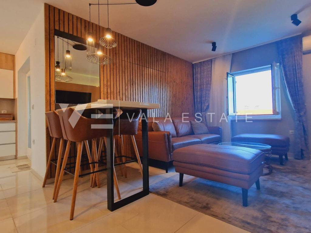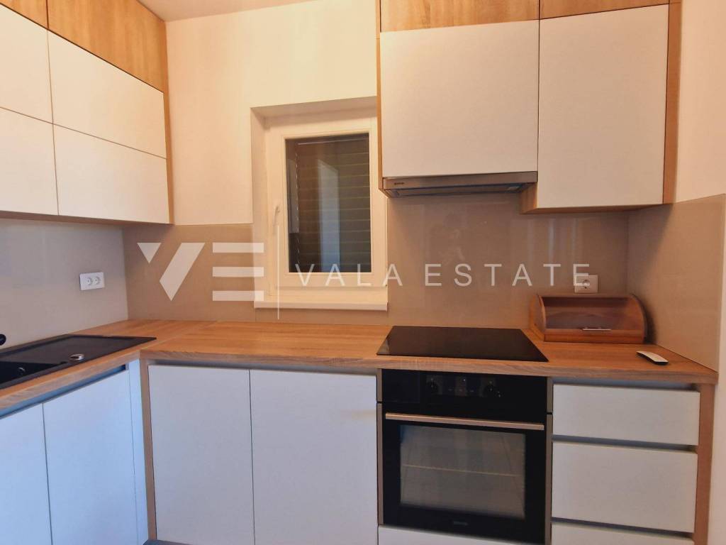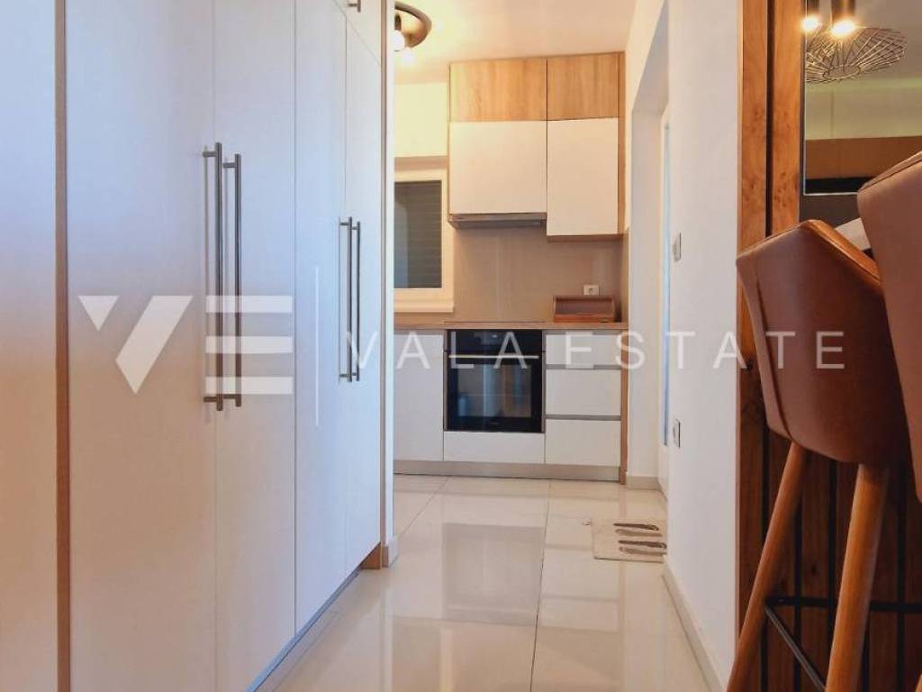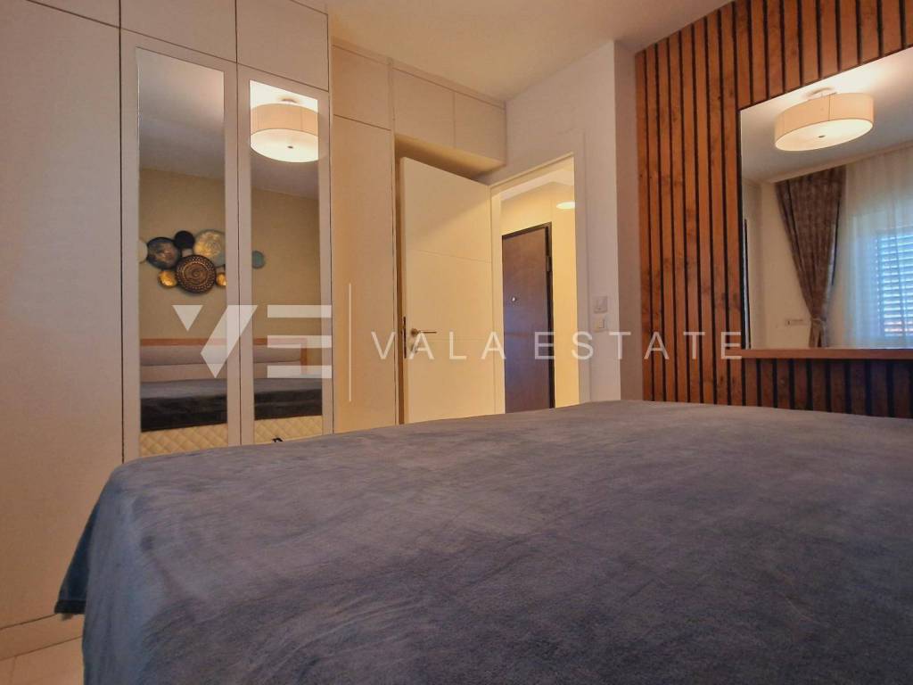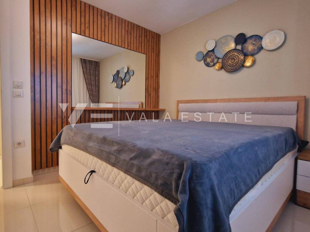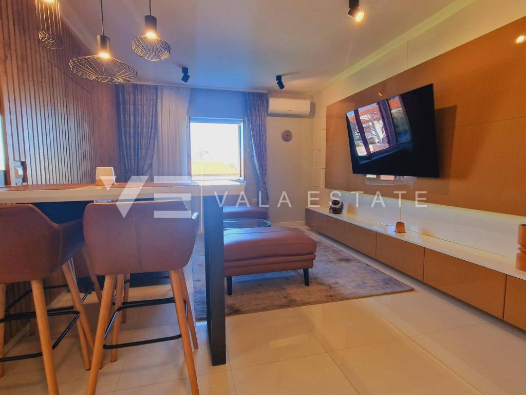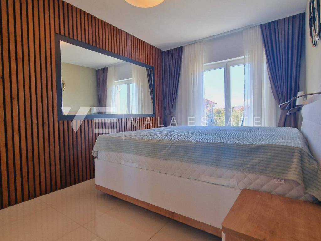 Real estate island Krk, Malinska - for sale is a furnished apartment in a multi-family house near the sea and beautiful beaches. The apartment with a total living area of 79 m2 consists of an entrance hall, two bedrooms, a bathroom, a toilet and a space that combines a living room with a kitchen and a dining room, from which there is access to a covered balcony with a beautiful view of the sea. Quality construction, equipment and sanitary facilities, air conditioning, underfloor heating and security doors are some of the features of this beautiful apartment. It is sold furnished with modern furniture and is ready for immediate occupancy. He has one parking space in the common yard of the house. It is located in an excellent location, only 450 m from the sea and beautiful beaches.