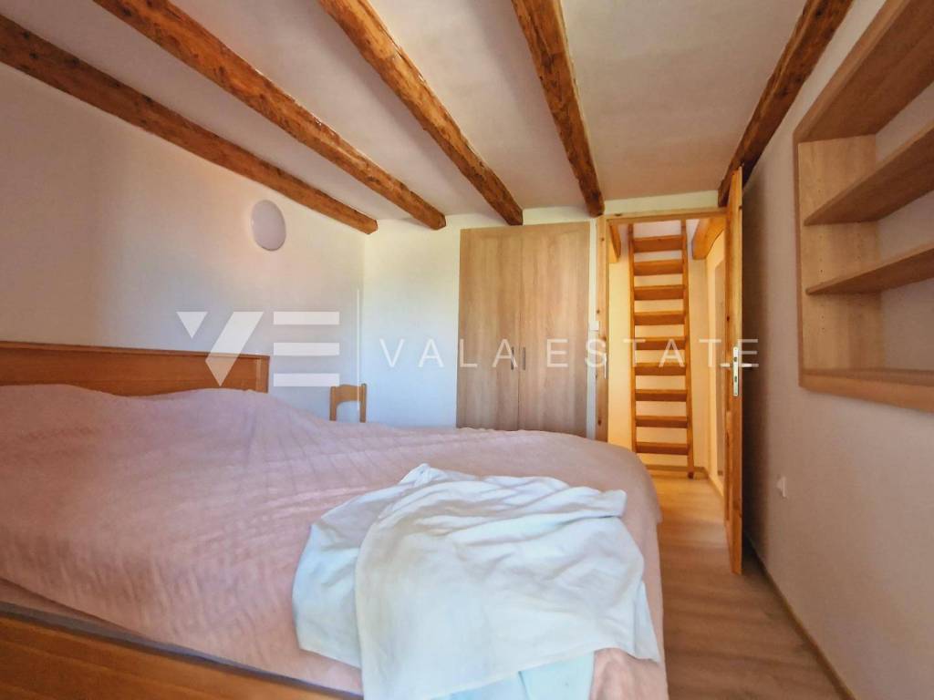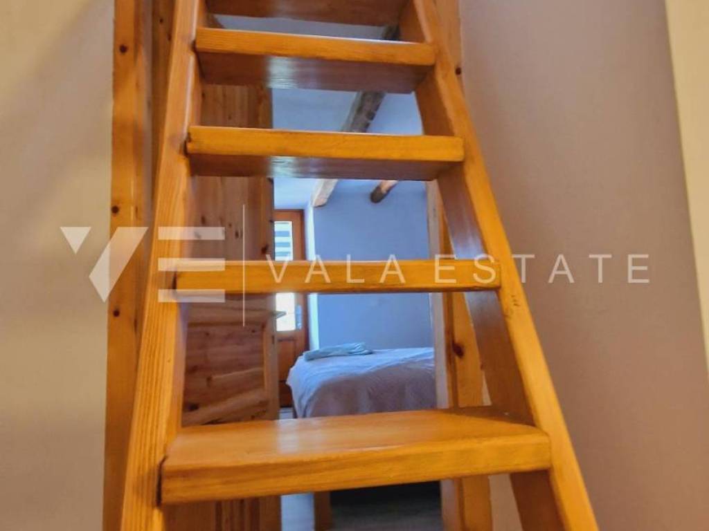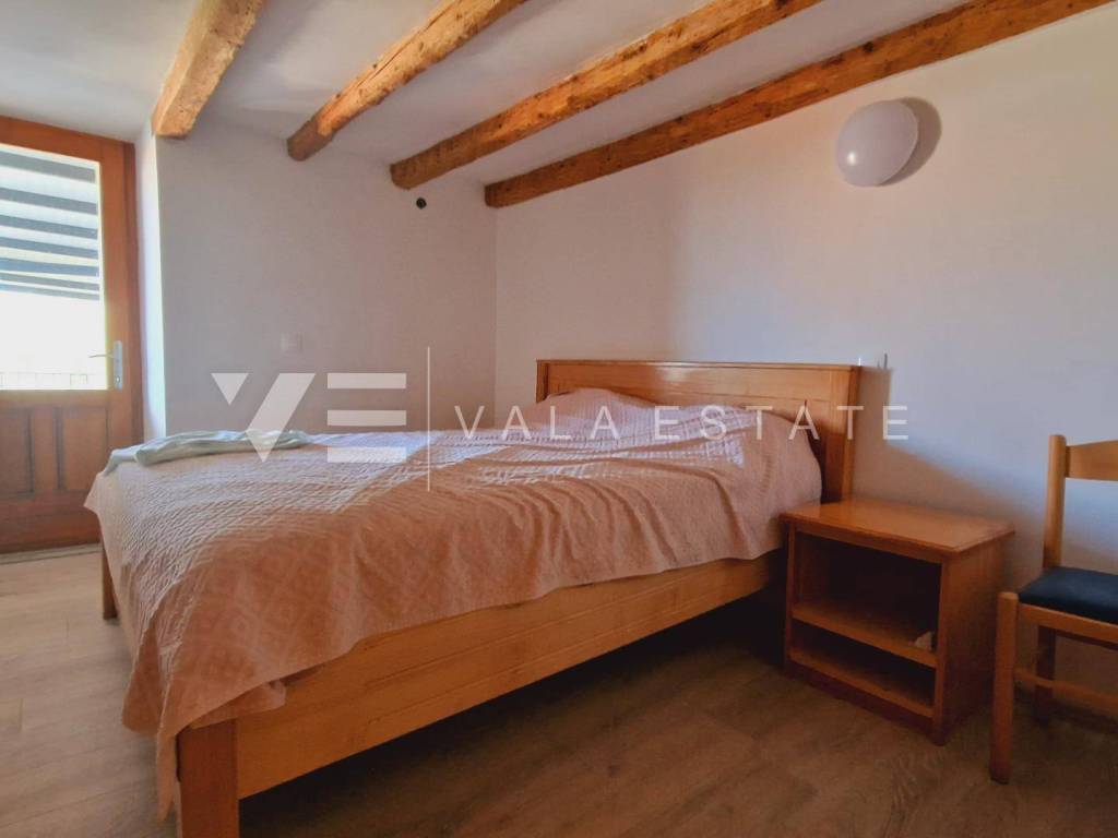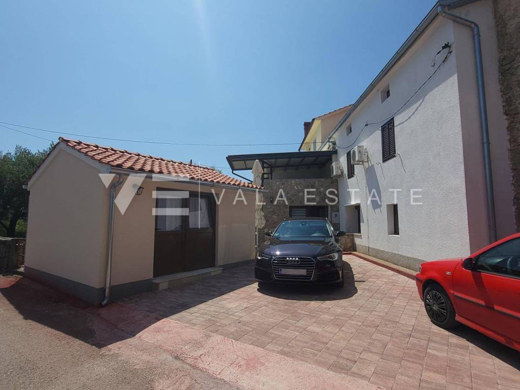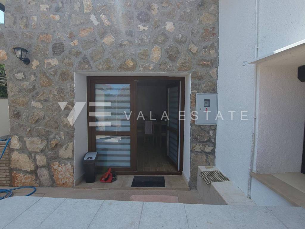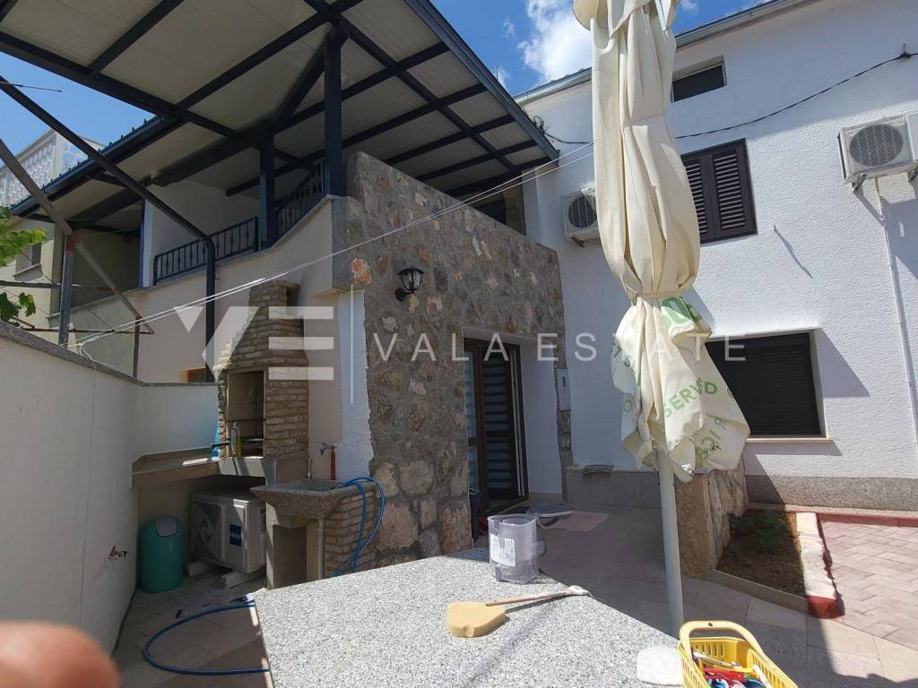 Real estate on the island of Krk, around Malinska - for sale is a renovated stone house with a living area of 80 m2, divided into a ground floor, a first floor and a high attic. On the ground floor there is a bathroom, kitchen, dining room and living room with access to the terrace and garden. An internal staircase leads to the first floor, where there is a spacious room with access to a large terrace, while there is another bedroom in the high attic. There is also a smaller auxiliary building of 15 m2 in the garden, which is decorated as a studio apartment. The house was renovated in 2023, it is fully furnished and equipped, there is underfloor heating on the ground floor and the auxiliary building, it is air-conditioned, it has proper documentation and is ready for immediate occupancy. There is an auxiliary building and three parking spaces on the landscaped garden with a terrace and summer kitchen. An excellent opportunity for investment for the purposes of tourist rental, but also for own housing. The location is beautiful and quiet, 1500 m from the sea and all facilities.
