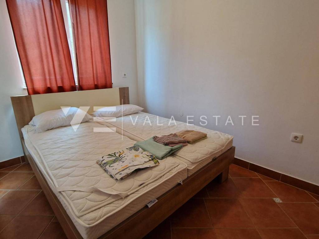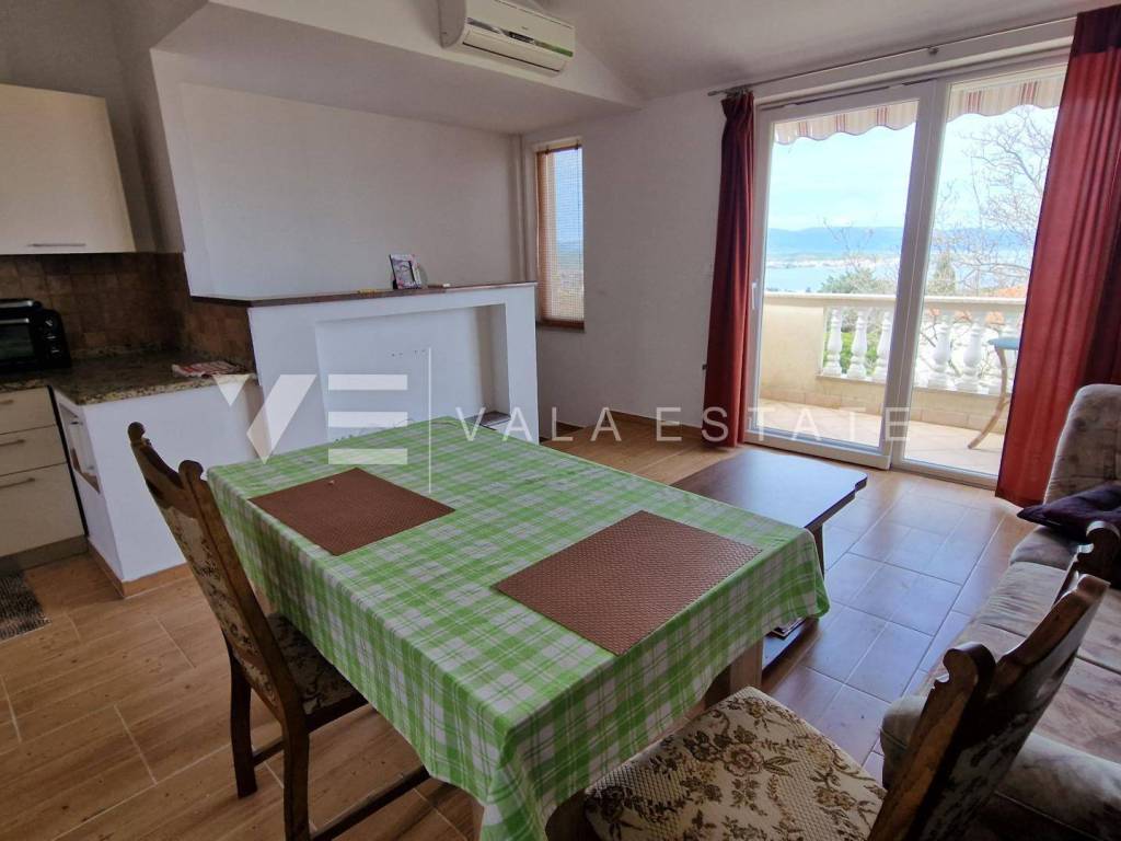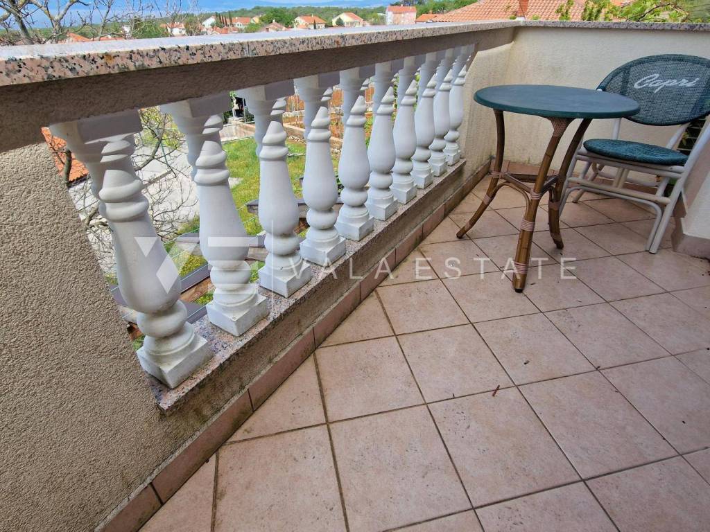 Real estate island of Krk, Malinska area - a terraced house for sale with a total living area of 79.86 m2 with a landscaped garden of 109 m2, which includes two parking spaces and a landscaped garden. The house consists of two separate apartments on the ground floor and on the first floor with separate entrances connected by an internal staircase. Each of the apartments includes a bathroom, a bedroom, a kitchen with a dining room, a living room and a terrace with a view of the sea. It is located in a beautiful and quiet location 1500 m from the sea and close to all amenities. The house has proper documentation and is ready for immediate occupancy.