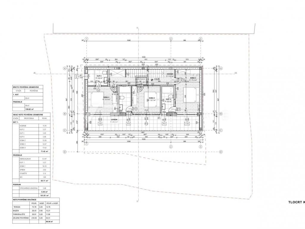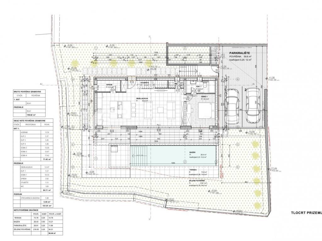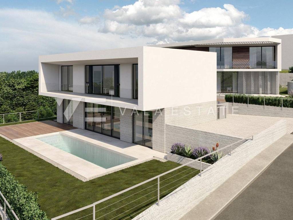 Real estate island Krk, the surrounding area of the town of Krk - in a quiet environment of family houses and nature, a new detached villa with a beautiful open sea view for sale. Villa located on a plot of 557 m2 is distributed on three floors that include a total of 161 m2 of living space. On the ground floor there is a storage, toilet, one bedroom with its own bathroom, kitchen and dining area and living room with an exit on the terrace and a decorated garden with a swimming pool and a sunbathing area. On the first floor there are three bedrooms, each with their own bathroom and outputs on a covered terrace with panoramic sea views. In the basement of Villa is a pool engine room. The planned completion of construction is until the summer of 2025, and the construction materials will be used by top quality materials, flooring in the combination of parquet and ceramics, PVC/aluminum joinery and wall rocks with three -layer glass, underfloor heating through the entire object of the heat pump and other high quality features. With the external landscaping and Mediterranean vegetation, the villa will receive complete privacy, and there are two parking spaces on the fenced garden. The location is calm, about 1800 m away from beautiful beaches.
