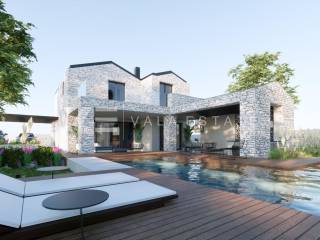 Real estate island of Krk, city of Krk - for sale is this beautiful modern stone villa located on the western side of the island of Krk in an excellent location with an open panoramic view of the sea. In addition to exuding elegance and style, the construction is first-class and only top-quality equipment and devices are used. The rooms in the house are divided into two floors covering 226.92 m2. On the ground floor there is an entrance hall, a storage room, a bathroom, one bedroom, a spacious living room, a large kitchen, a dining room with access to two terraces, one of which has a summer kitchen so that you can spend as much time as possible outside in the summer. On the first floor there is a hallway, three bedrooms, each with its own bathroom, two of which have access to the roof terrace with a beautiful open panoramic view of the sea and the old town. The yard of approx. 830 m2 is tastefully greened with Mediterranean plants, and of course there is also a swimming pool with a sunbathing area and two covered terraces, several parking spaces and an e-car connection. The villa is equipped with large aluminum double-glazed windows, electric shutters, modern aluminum doors with a fingerprint or chip system, an efficient heat pump with temperature control and underfloor heating in the rooms, multisplit air conditioning, a wood-burning fireplace, photo voltage system, quality floor coverings and sanitary facilities, a large number of switches and sockets, LED built-in lighting and an alarm system. It is approx. 800 m from the beaches and the city center, it is located in a quiet location on the edge of the green zone, but still close to all necessary amenities.