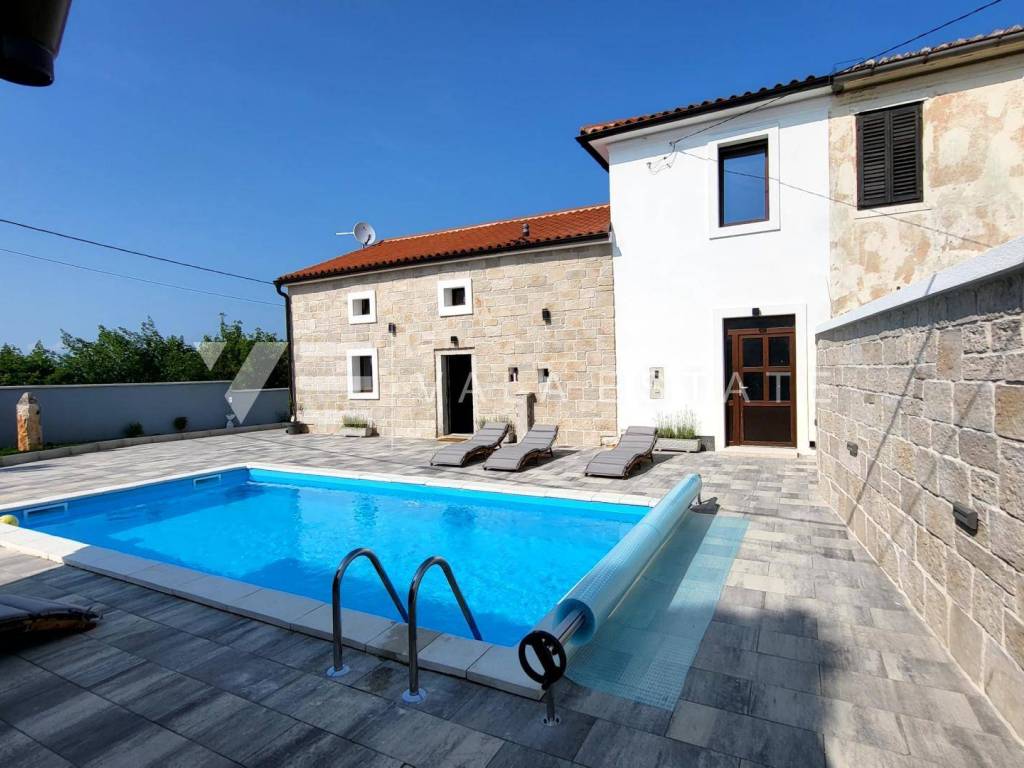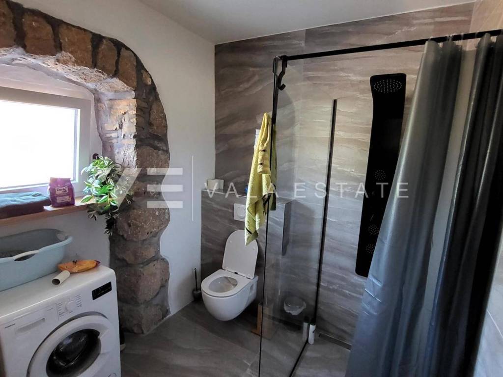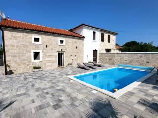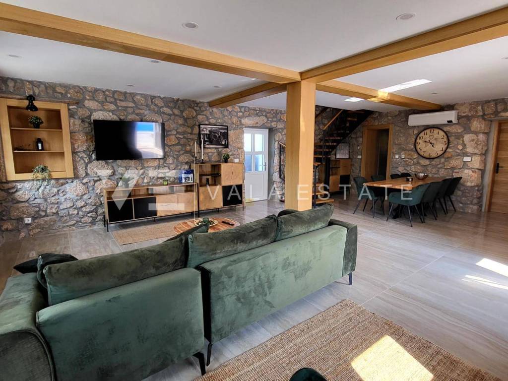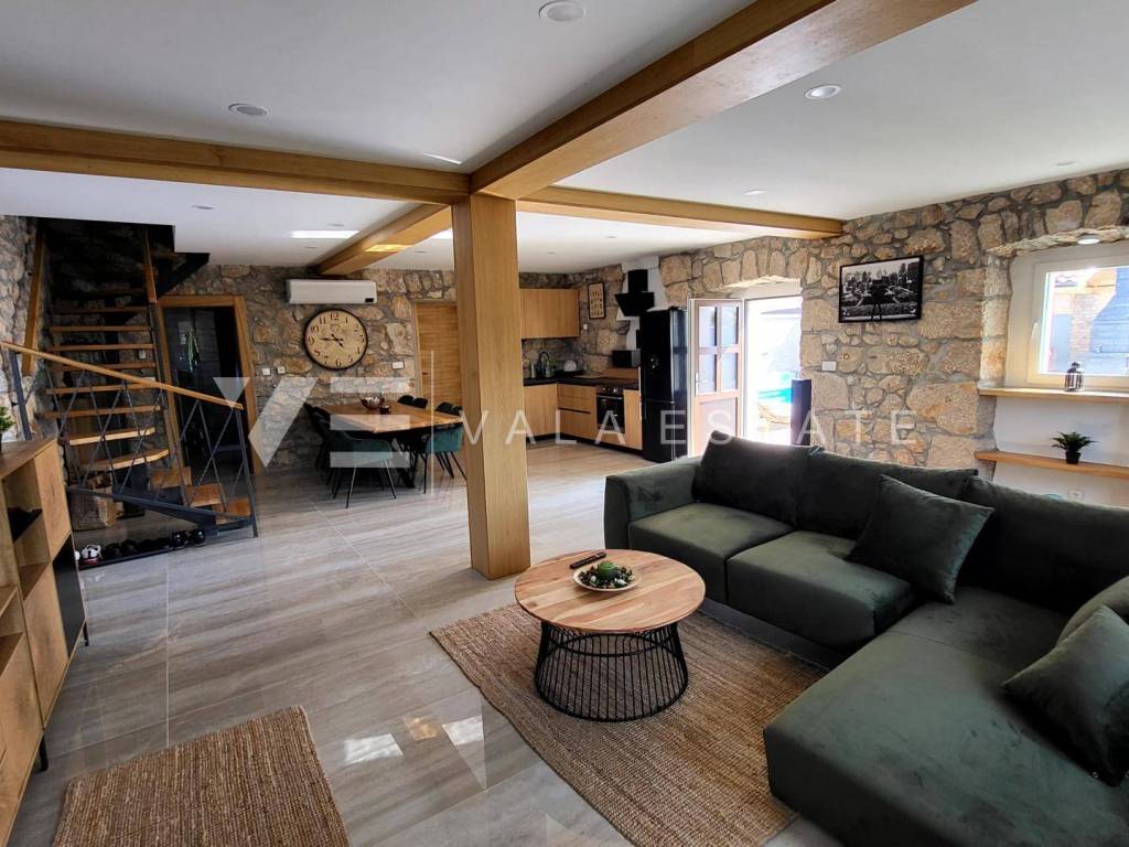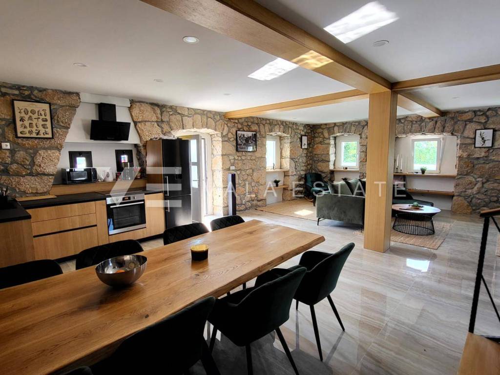 Real estate island Krk, Malinska region - renovated stone house with swimming pool for sale. The house has a living area of 134 m2 and consists of a ground floor and a first floor. On the ground floor there is an open space that combines the kitchen with the living room and dining room, bathroom and tavern that can be used for different purposes. Internal stairs lead to the first floor where there are three bedrooms and three bathrooms. There is a swimming pool, a pergola with a barbecue, as well as two parking spaces in the beautifully landscaped garden. The house has underfloor heating, every room is air-conditioned, and it is possible to buy it with furniture. It is located in a rural location surrounded by family houses. The distance from the sea and the beach is 4000 meters.