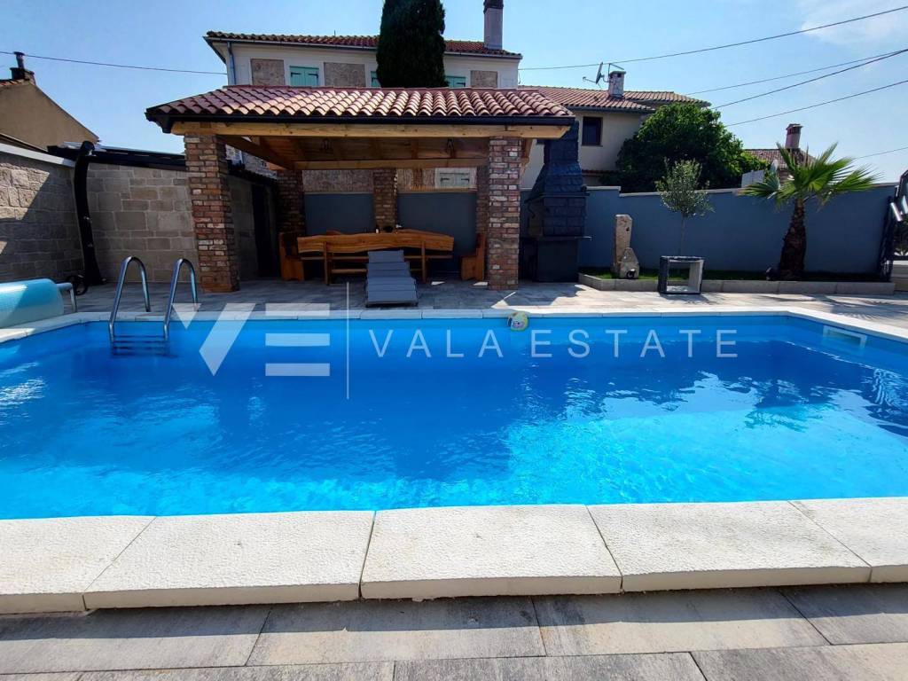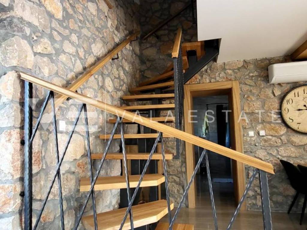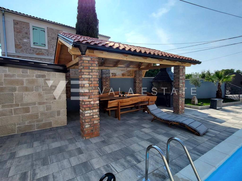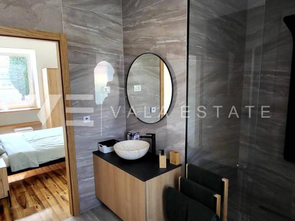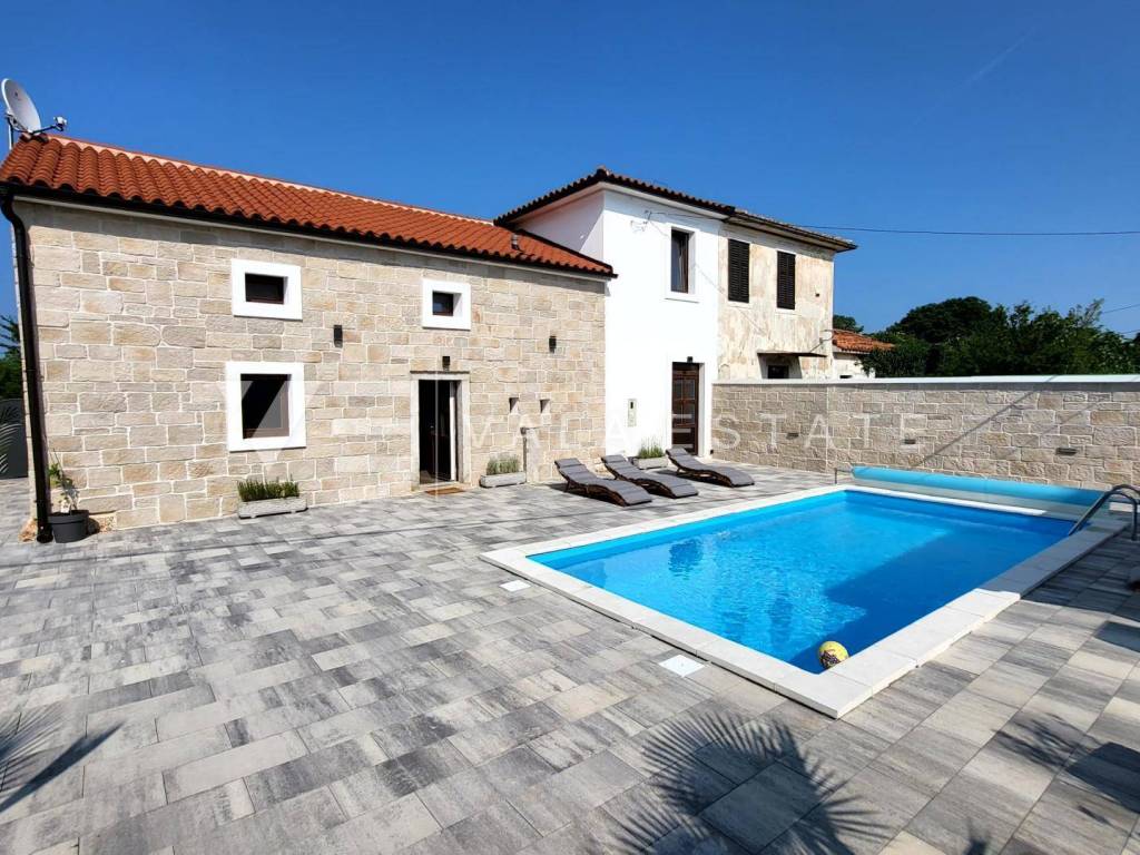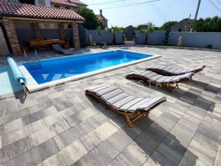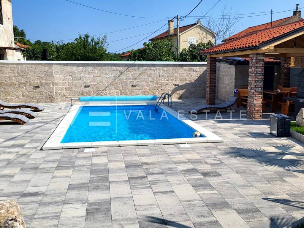 Real estate island Krk, Malinska region - renovated stone house with swimming pool for sale. The house has a living area of 134 m2 and consists of a ground floor and a first floor. On the ground floor there is an open space that combines the kitchen with the living room and dining room, bathroom and tavern that can be used for different purposes. Internal stairs lead to the first floor where there are three bedrooms and three bathrooms. There is a swimming pool, a pergola with a barbecue, as well as two parking spaces in the beautifully landscaped garden. The house has underfloor heating, every room is air-conditioned, and it is possible to buy it with furniture. It is located in a rural location surrounded by family houses. The distance from the sea and the beach is 4000 meters.