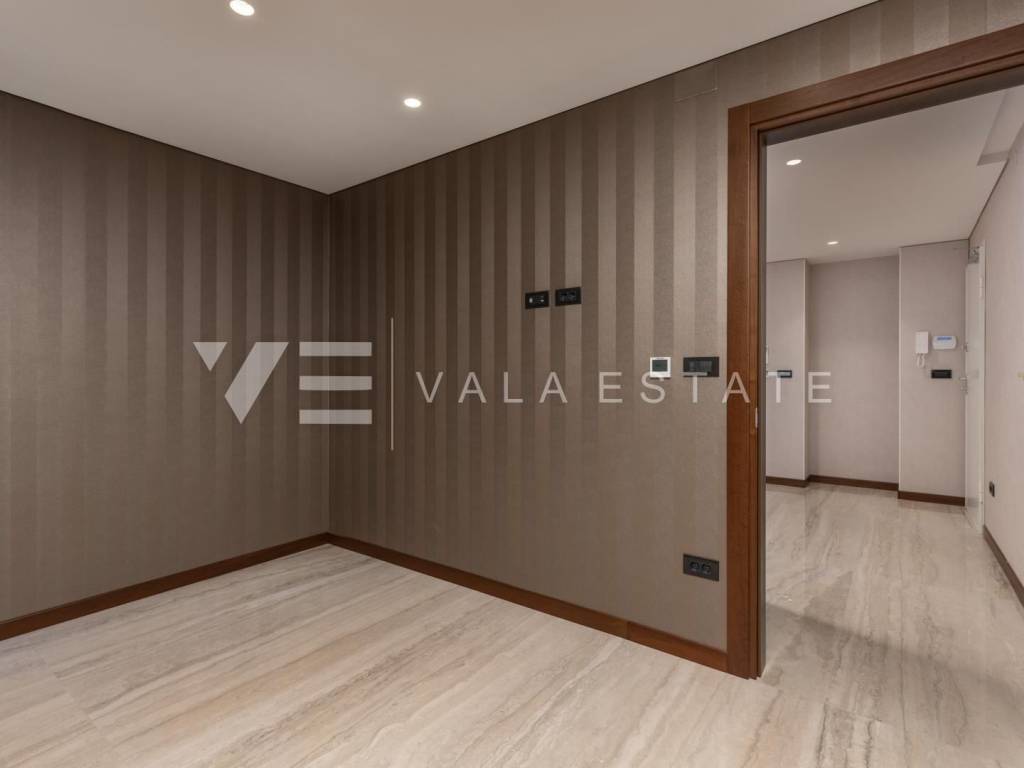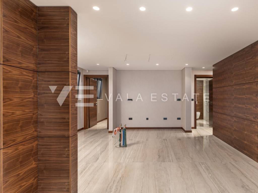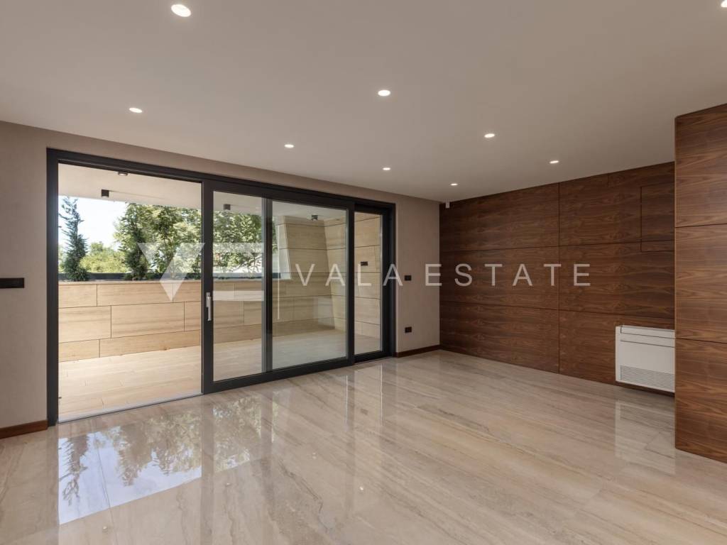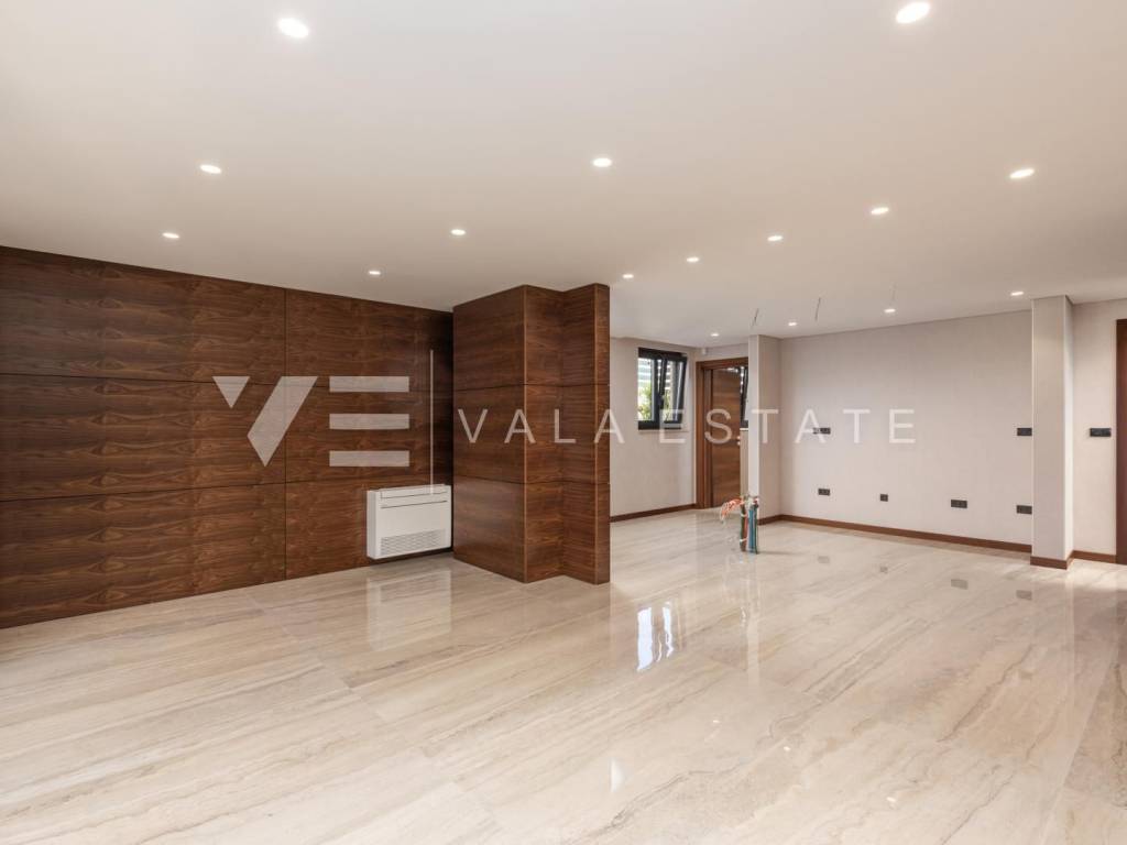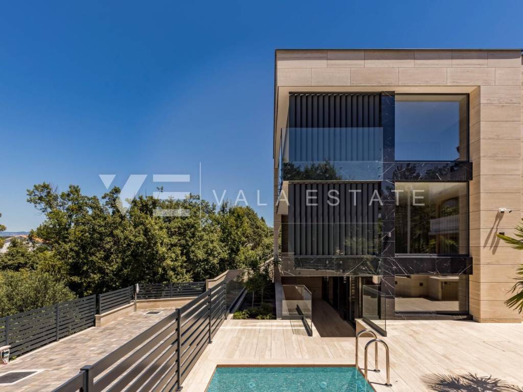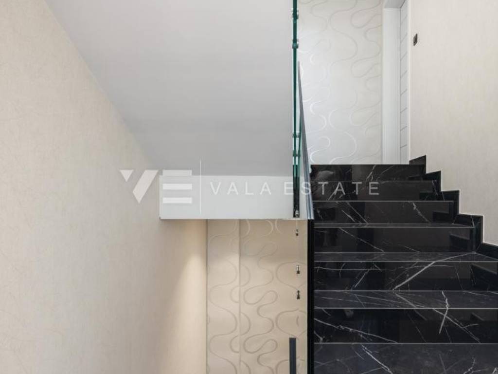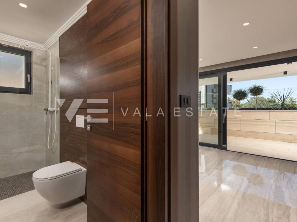 Real estate island Krk - Malinska, for sale is a new luxury apartment on the ground floor of an apartment villa with a total of three apartments only 150 meters from the sea and the beach. The apartment with size of 113.72 m2 consists of an entrance hall, living room, kitchen and dining room, three bedrooms, two bathrooms and a toilet, and a large covered terrace. The apartment has a beautifully landscaped and landscaped garden with a swimming pool and sun deck. Panoramic aluminum joinery, ventilated facade from stone Traventin, glass railings in combination with natural stone, gres polished ceramics 1 class in combination with glass stair railings, luxury exotic parquet in combination with attractive wallpaper and carefully selected lighting fixtures and superior bathroom furniture These are just some of the quality features of the construction and equipment of this luxury property.