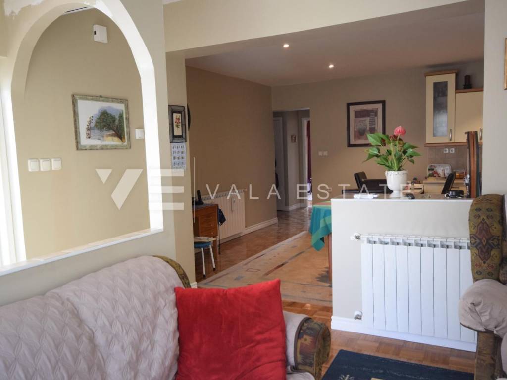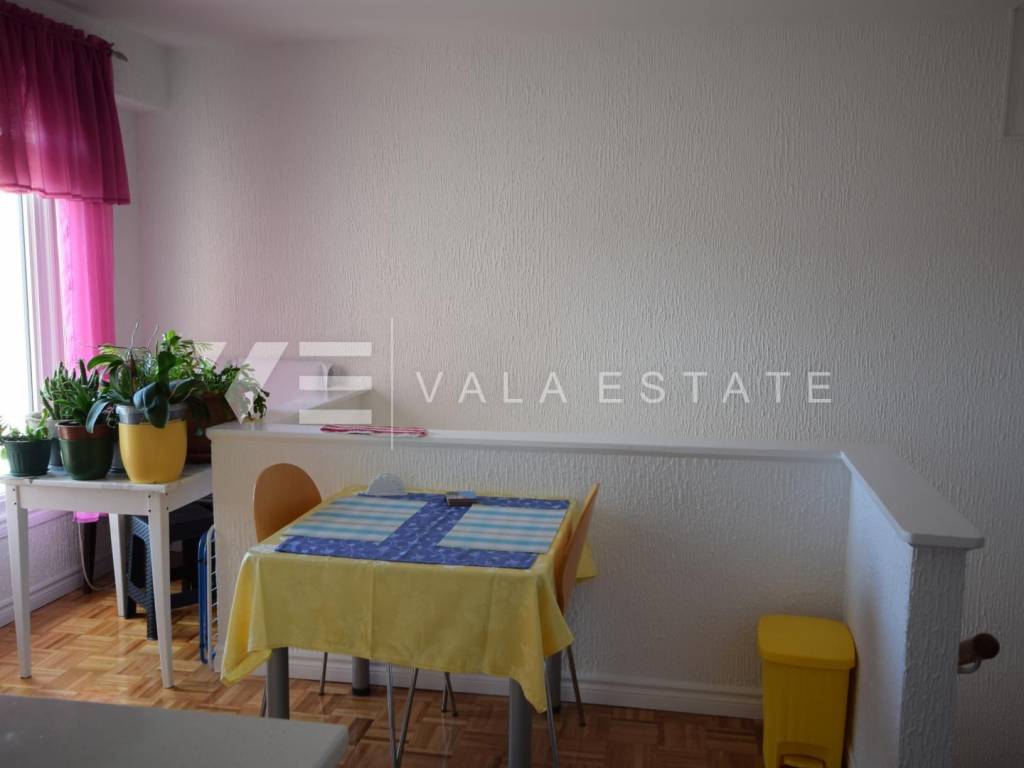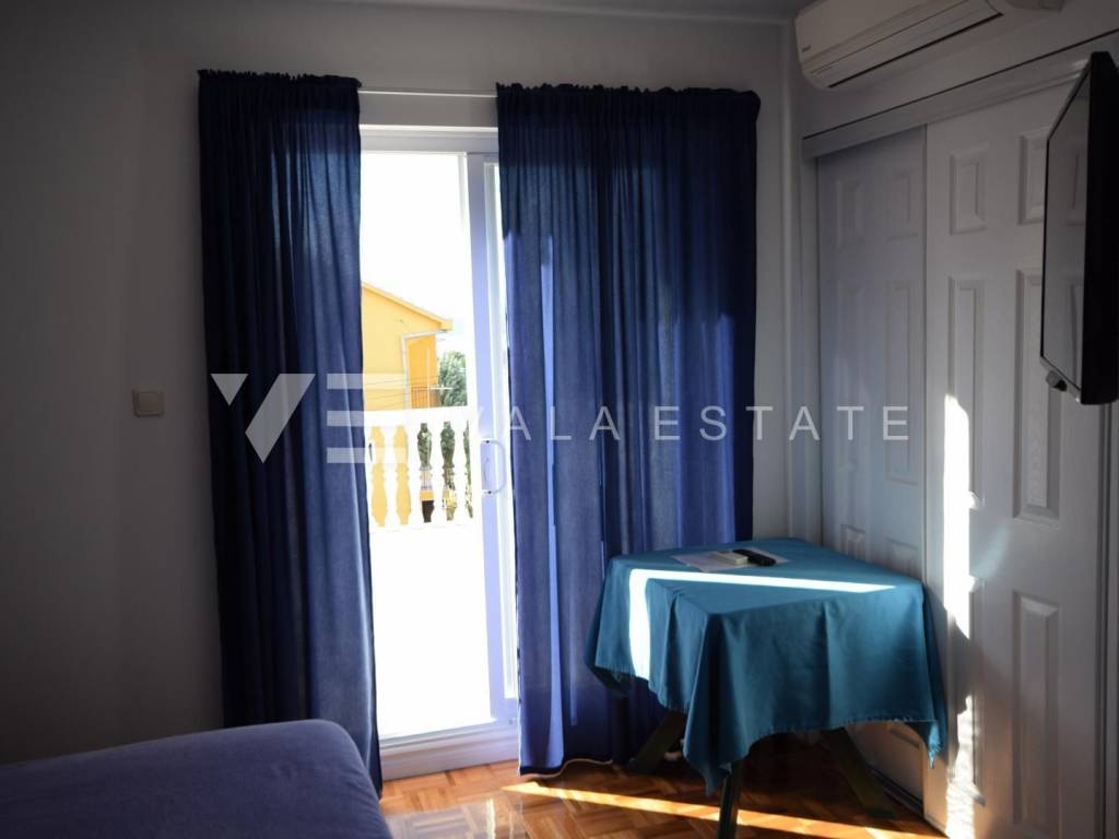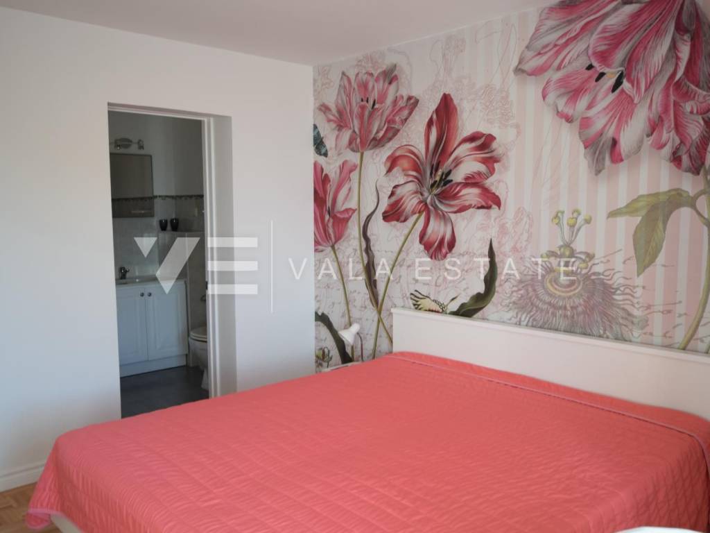 Real estate Krk island, Malinska - for sale is a very nice semi-detached house near the sea and the center of Malinska, with a total living area of 376 m2, and consists of three floors. In the basement is a small studio apartment consisting of a kitchen, bathroom and bedroom, garage and storage. On the ground floor there is a larger two-bedroom apartment consisting of a hallway, kitchen with dining area and living room with access to a covered terrace, two bedrooms, one of which has its own bathroom and another a separate bathroom. On the first floor, connected by an internal staircase, there is a kitchenette and four bedrooms each with its own bathroom and access to a spacious terrace overlooking the sea. The house is surrounded by a beautifully landscaped garden of 480 m2 with the possibility of building a smaller pool. Parking spaces are also on the plot. The house is very well built, has central gas heating, fireplace, air conditioning, PVC windows and is fully furnished and maintained and ready to move in immediately. It is located in an excellent location, only 300 m away from the center, beautiful beaches, and all amenities. Ideal for investment for the purpose of tourist rental!