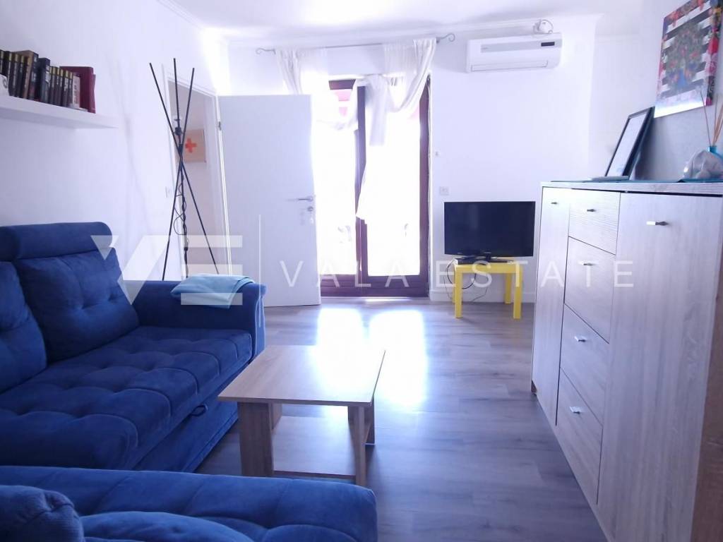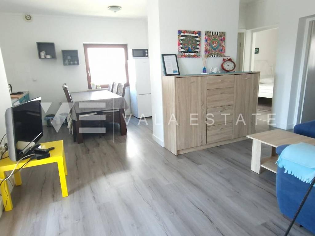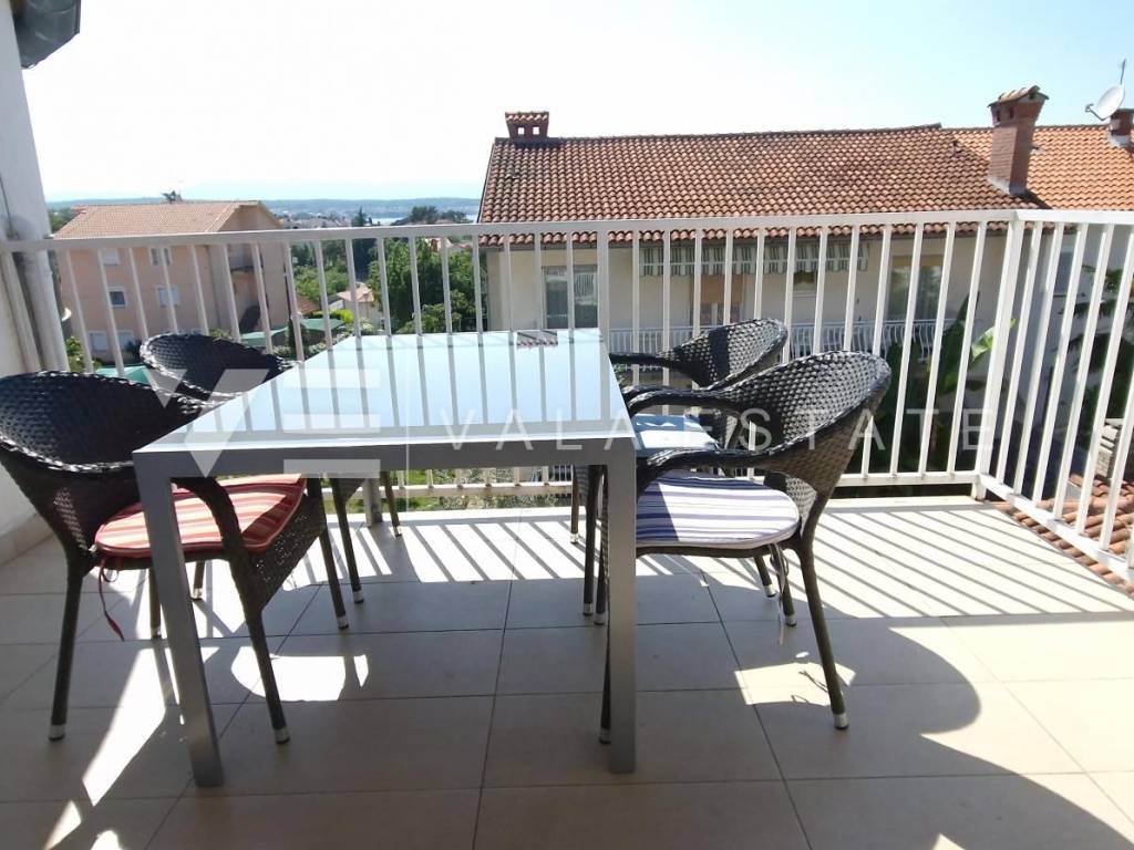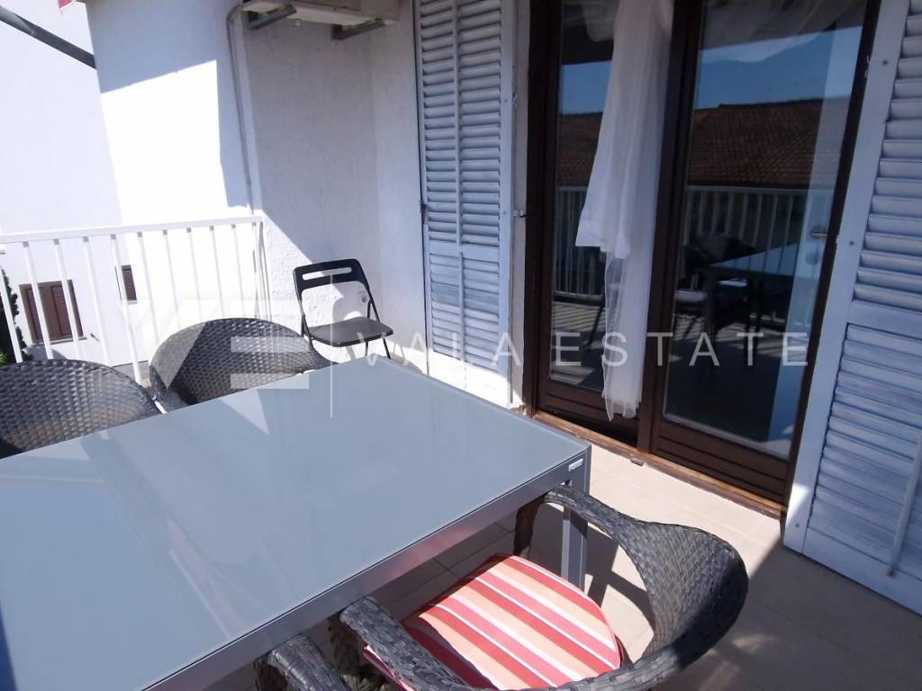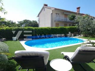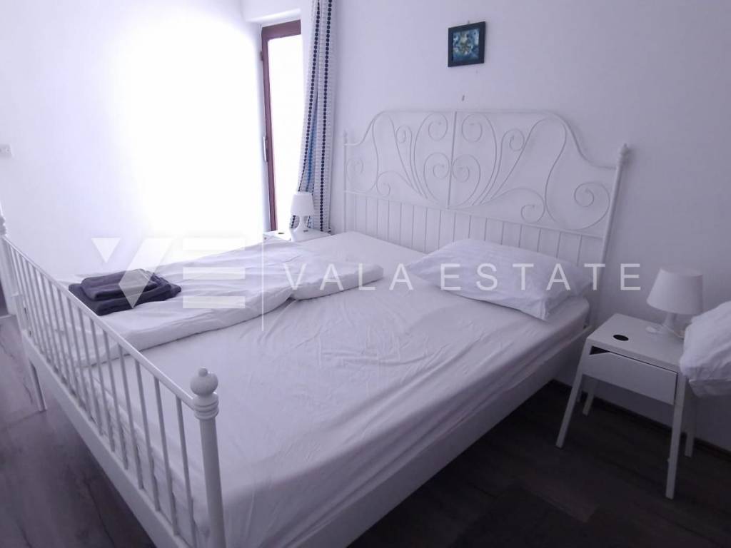 Real estate Krk island - in the center of Malinska for sale is an attractive detached house on three floors with six beautifully decorated apartments, distributed within 400 m2, intended for tourist rent. The house was built in 2001 and renovated in 2019. The ground floor has a comfortable two-bedroom apartment, one studio apartment, storage and a space that serves as a laundry room. On the first floor there are two more two-bedroom apartments with balconies of about 60 m2, and on the second floor, or high attic there are two more one-bedroom apartments. Each apartment is fully furnished and air-conditioned and has a kitchen with a dining area, living room, bathroom, comfortable bedrooms and balconies overlooking the sea. The landscaped garden of 704 m2 has a common pool measuring 7 x 3.5 m2 with a sunbathing area, summer kitchen with barbecue and terrace.