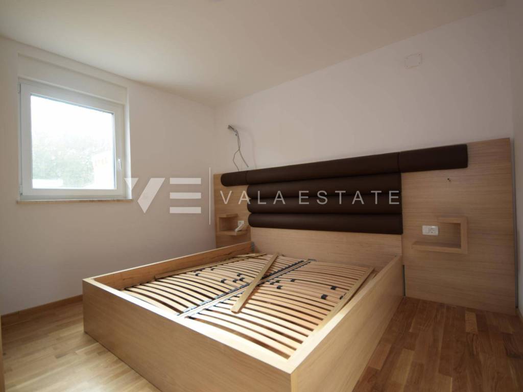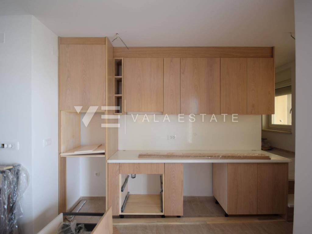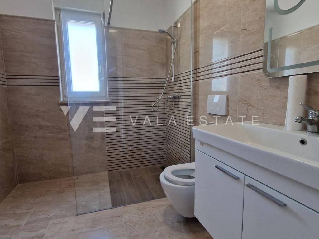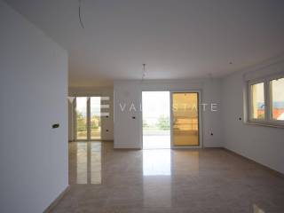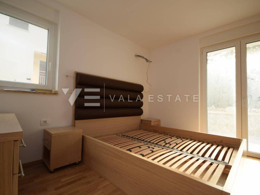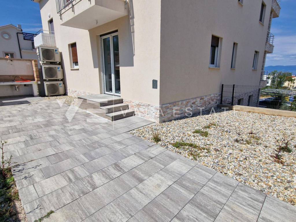 Real estate Krk island, Njivice - for sale is a modern two bedroom apartment in a new residential building in a beautiful location in Njivice. The apartment is located on the ground floor and occupies a living area of 73.33 m2, and consists of an entrance hall, bathroom, living room with kitchen, pantry and dining area, terrace with beautiful sea views, and two bedrooms, one of which has access to the rear terrace and views of the greenery. The property is currently under construction, and the planned completion is the winter of 2020. Quality construction and equipment, underfloor heating and air conditioning, PVC joinery with built-in mosquito nets, new kitchen and equipped bedrooms are just some of the features of this property. In the back of the building, the apartment has a garden of approximately 57 m2 with barbecue and summer kitchen, and in front of the building there is one parking space. Excellent location on the edge of the green zone, surrounded by silence, about 500 m away from the center and beautiful beaches.