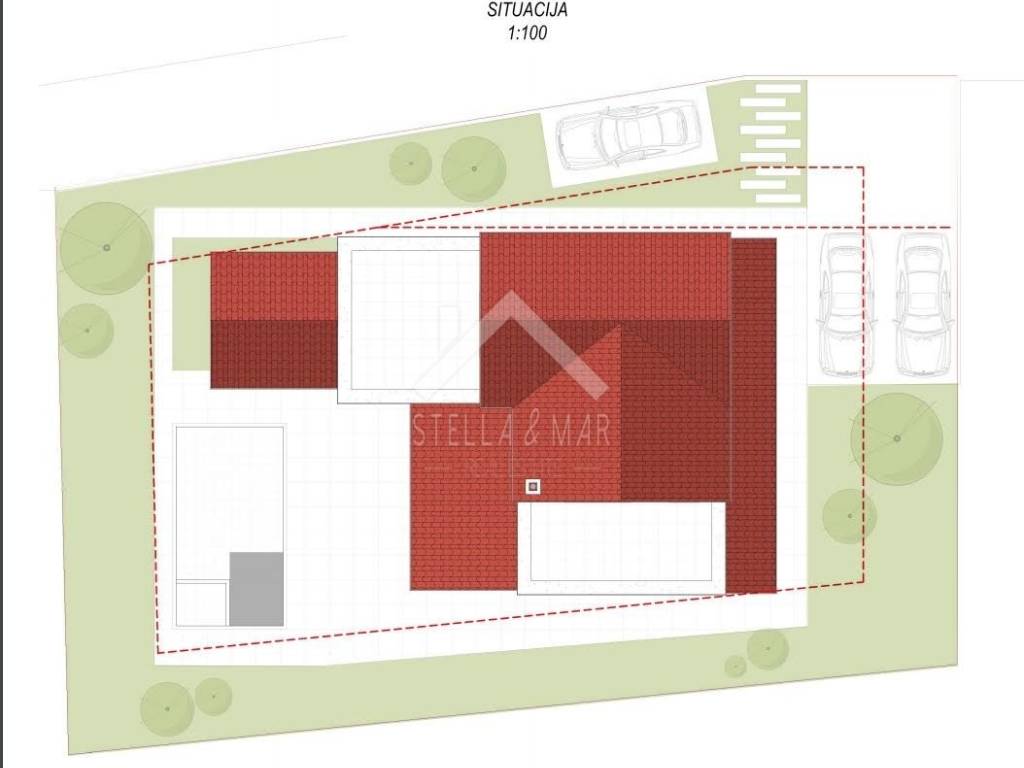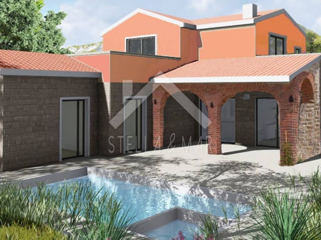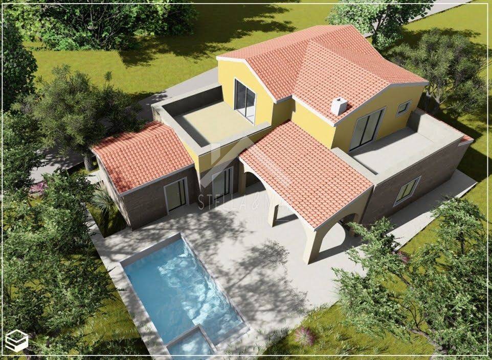 Za zemljište je izdana građevinska dozvola za gradnju kuće sa bazenom, fotografije objekta te tlocrte pogledajte u galeriji. Struja i voda pored terena.