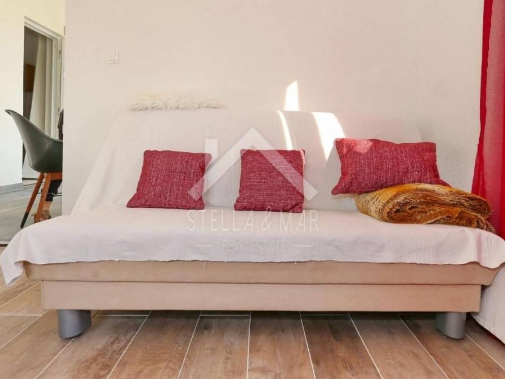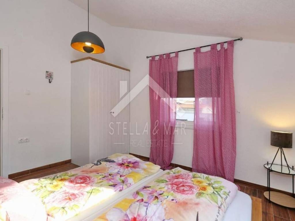 A fully furnished, renovated two-story house on the island of Vir is for sale. It is located in a quiet part of the island, near beautiful beaches. During the summer months, at the nearest beach approx. 300m away there is a restaurant, a shop and a bakery. All other amenities such as a pharmacy, clinic, larger stores and those open all year round, post office, bus station, etc. are approx. 1km away.