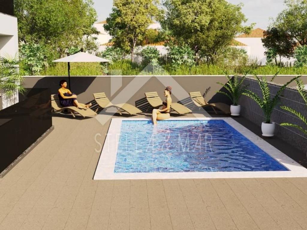 On the ground floor there is a hallway, a spacious living room with a kitchen and a dining area of 34.42 m2. The living room leads to a spacious terrace where there is a 19m2 swimming pool.