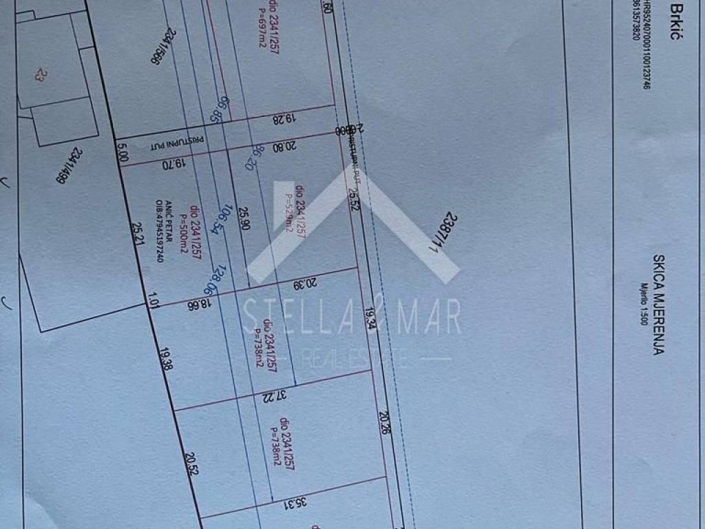 Prodaje se građevinsko zemljište površine 738m2 treći red do mora u Kruševu. Radi se o većoj katastarskoj čestici koja je podijeljena na manje terene čiji plan i položaj se može vidjeti na galeriji slika oglasa.