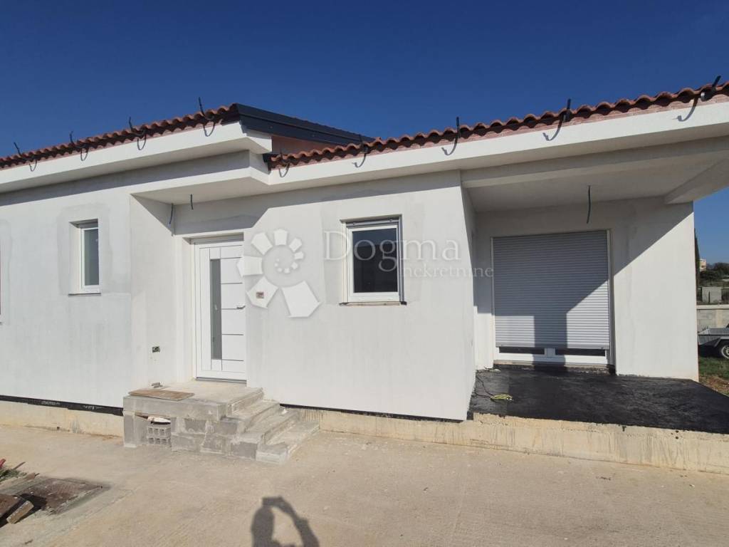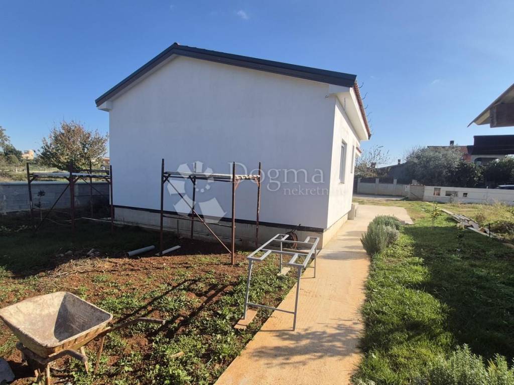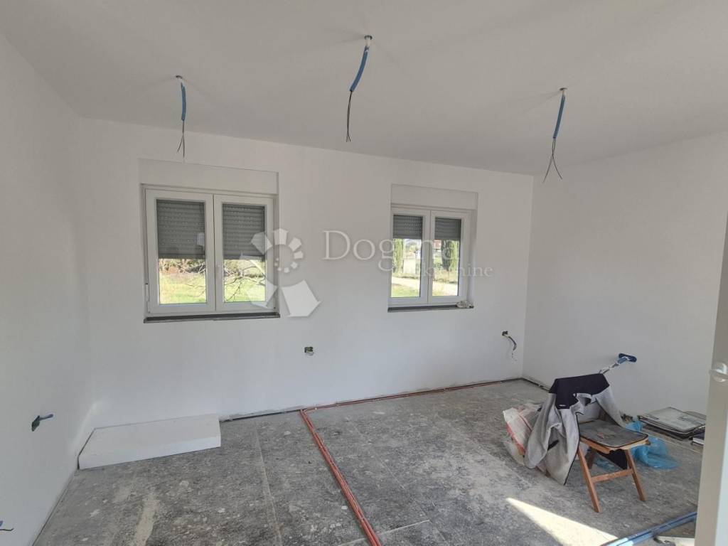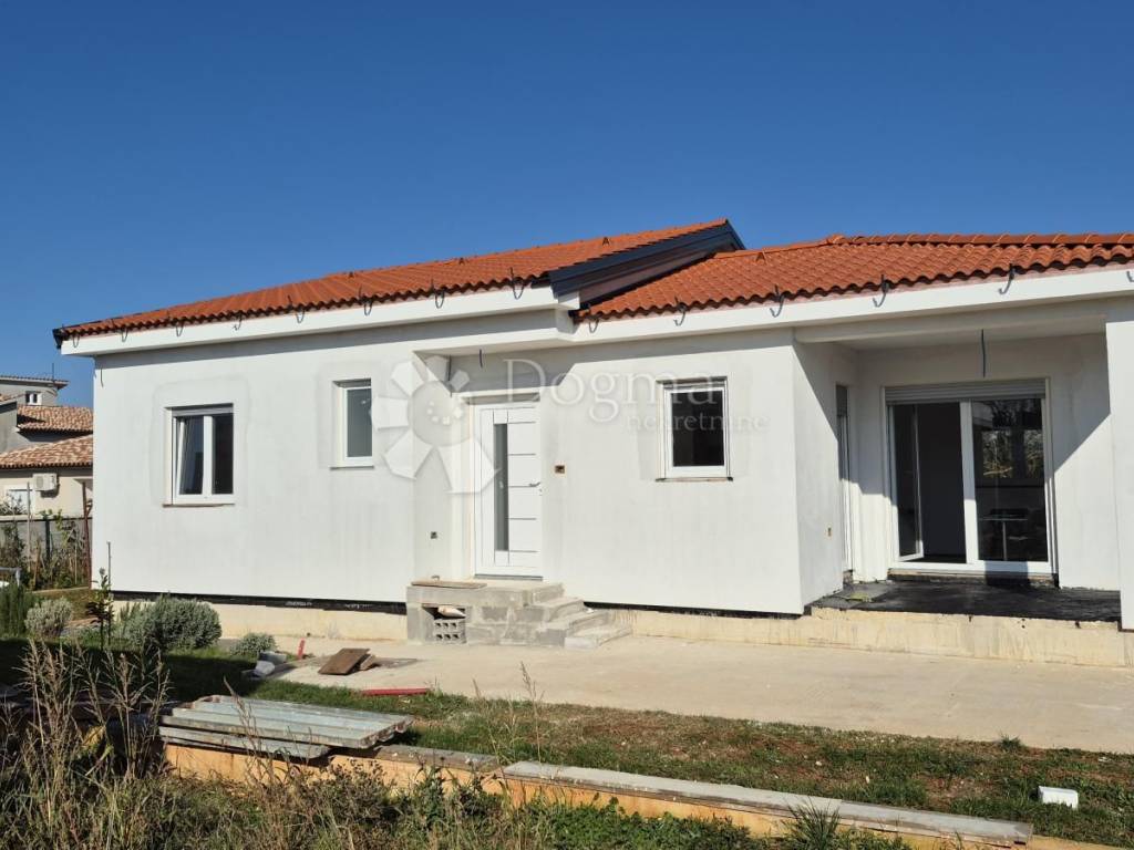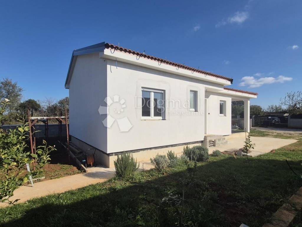 For sale - Prefabricated single-storey house in high unfinished condition, 90 m + garden 439 m. For sale - Prefabricated single-storey house in high unfinished condition, 90 m + garden 439 m. A modern prefabricated single-storey house with a gross area of 90 m is for sale, located in a quiet location, on a plot of 439 m. The house is in a high unfinished state and offers a functional layout: Open space: kitchen, dining room and living room with access to the loggia (balcony) 2 bedrooms Bathroom + additional toilet Storage room Loggia with access from the kitchen and living room Ceiling height: 270 cm Floor coverings: 15 cm Thickness of the outer shell: 30 cm (including 10 cm of polystyrene - thermal insulation) Heating option: installation of a heat pump Courtyard and outdoor space: Courtyard divided into a garden and vegetable garden section The garden has a fireplace, a tin outbuilding (ideal space for tools and garden equipment) Small terrace of 6 m - perfect for relaxing Planted vegetables and a lemon tree in front of the entrance Access road: macadam, on the east side The property is fenced: part with a 120 cm high wall, and the other part will be fenced with a wire fence and hedge. It is a quiet neighborhood, full of potential for a peaceful family life. It offers a feeling of peaceful village life, yet is located close to the city and the Istrian Y bypass. For any additional questions or to arrange a viewing of the house, please contact: Lea Išić Brokerage Assistant +385 98 665 639 e-mail: lea.isic@dogma-nekretnine.com