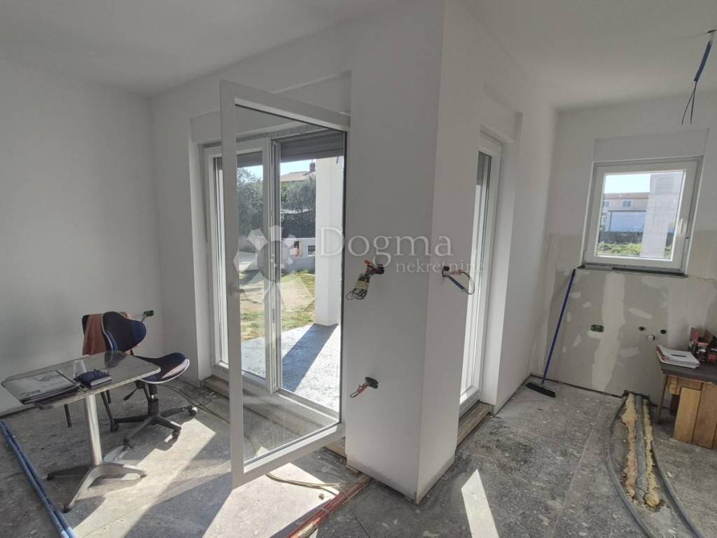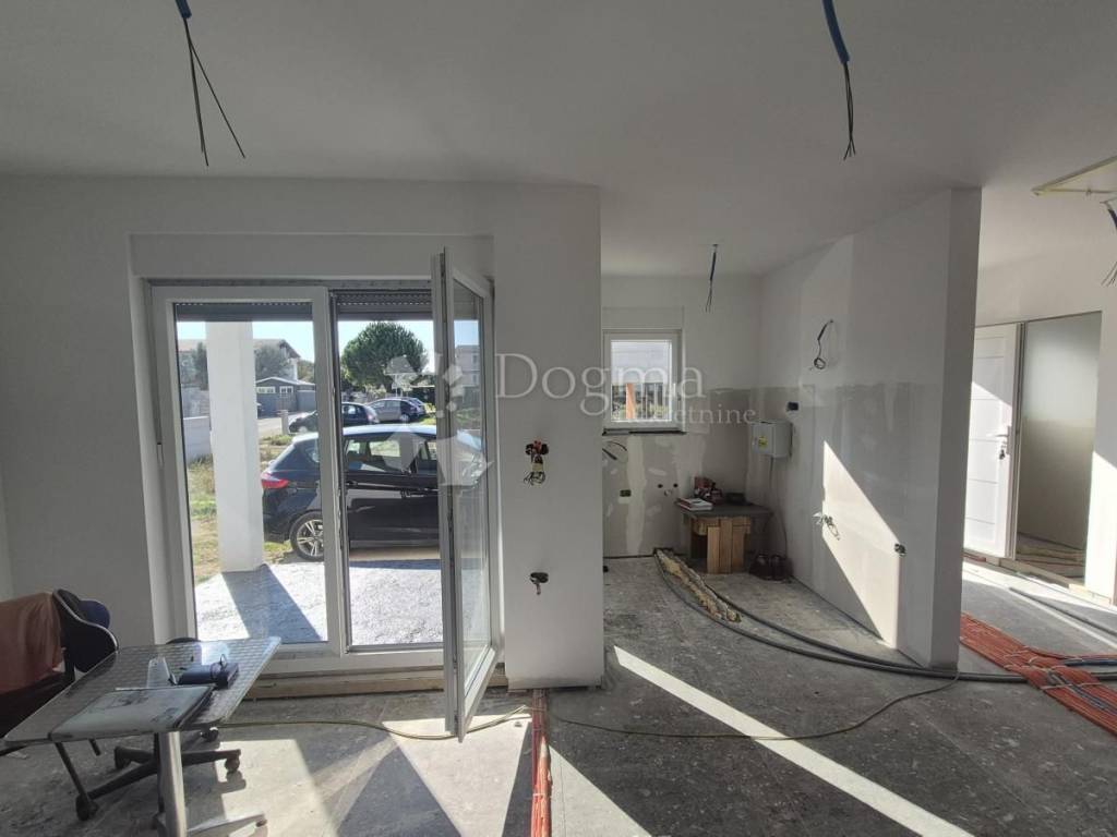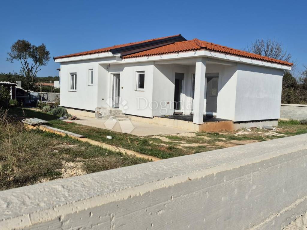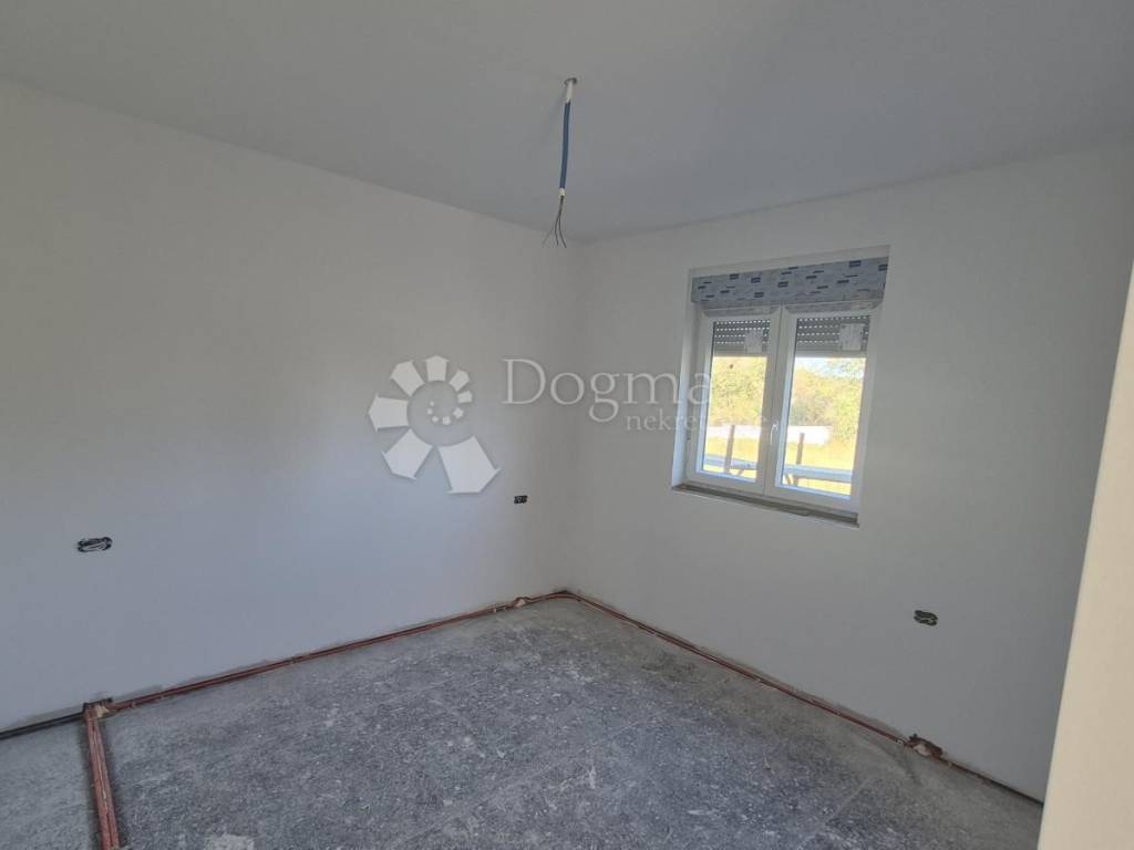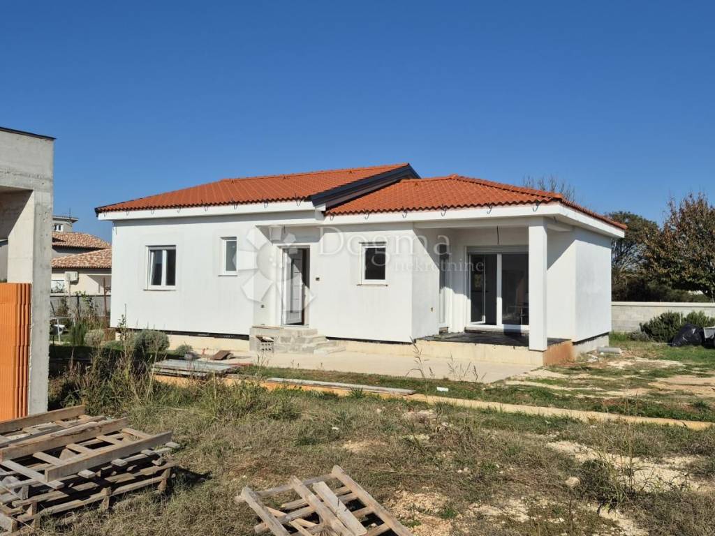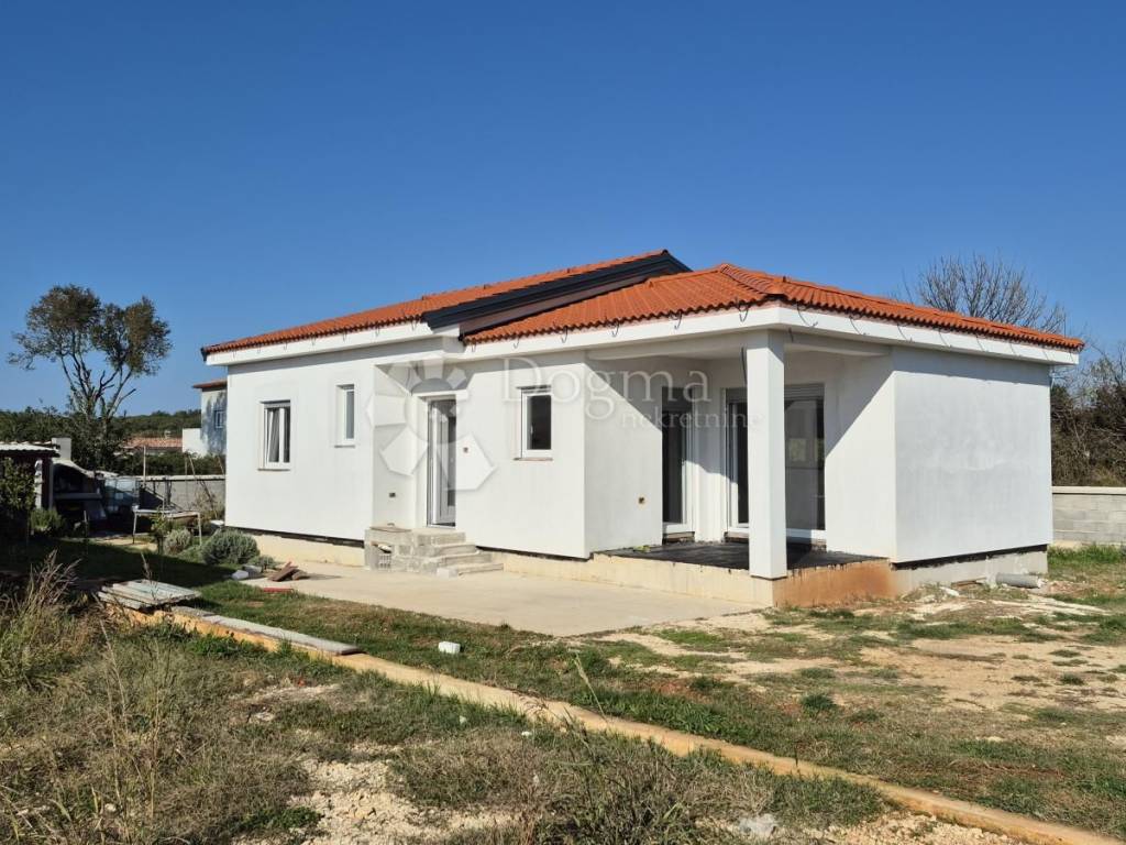 For sale - Prefabricated single-storey house in high unfinished condition, 90 m + garden 439 m. For sale - Prefabricated single-storey house in high unfinished condition, 90 m + garden 439 m. A modern prefabricated single-storey house with a gross area of 90 m is for sale, located in a quiet location, on a plot of 439 m. The house is in a high unfinished state and offers a functional layout: Open space: kitchen, dining room and living room with access to the loggia (balcony) 2 bedrooms Bathroom + additional toilet Storage room Loggia with access from the kitchen and living room Ceiling height: 270 cm Floor coverings: 15 cm Thickness of the outer shell: 30 cm (including 10 cm of polystyrene - thermal insulation) Heating option: installation of a heat pump Courtyard and outdoor space: Courtyard divided into a garden and vegetable garden section The garden has a fireplace, a tin outbuilding (ideal space for tools and garden equipment) Small terrace of 6 m - perfect for relaxing Planted vegetables and a lemon tree in front of the entrance Access road: macadam, on the east side The property is fenced: part with a 120 cm high wall, and the other part will be fenced with a wire fence and hedge. It is a quiet neighborhood, full of potential for a peaceful family life. It offers a feeling of peaceful village life, yet is located close to the city and the Istrian Y bypass. For any additional questions or to arrange a viewing of the house, please contact: Lea Išić Brokerage Assistant +385 98 665 639 e-mail: lea.isic@dogma-nekretnine.com