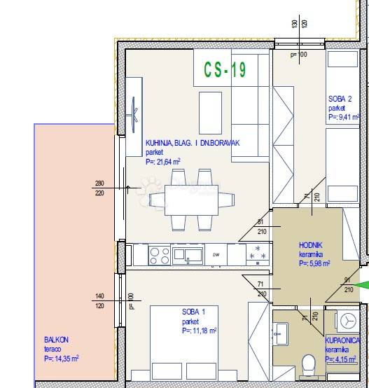 NEW BUILD (CS-4) TWO-BEDROOM APARTMENT IN SEGET DONJI (ground floor)