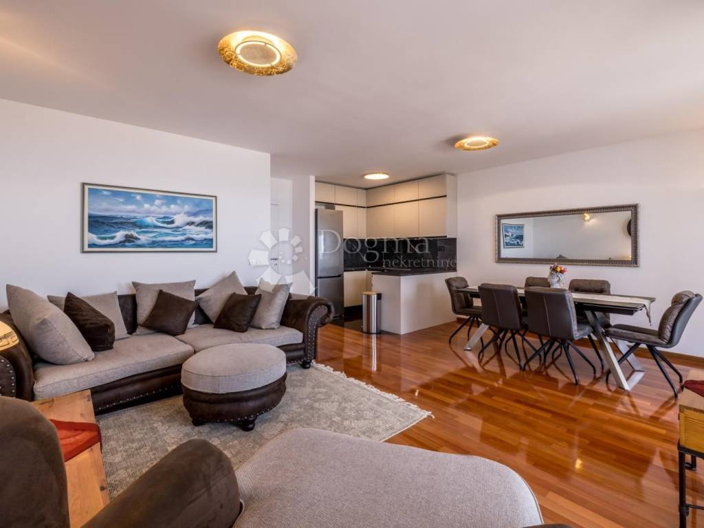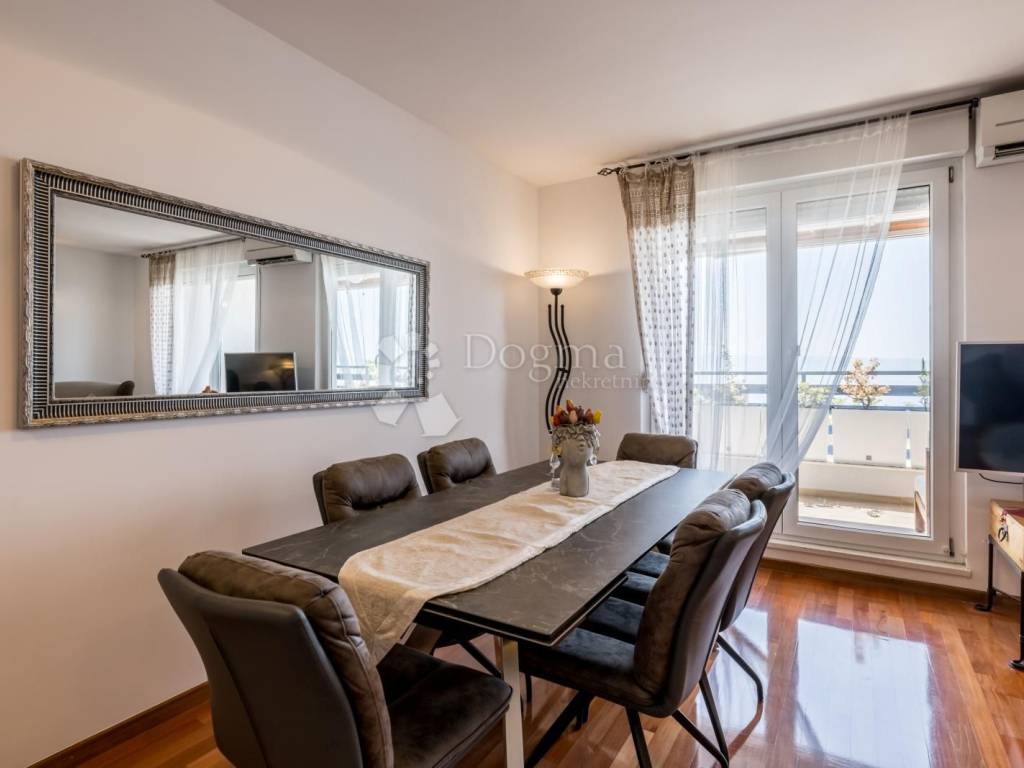 A beautifully designed and modern three-bedroom apartment of 92 m is available for long-term rent, located on the first floor (fourth level) of a residential building in the first row to the sea in Žnjan.
